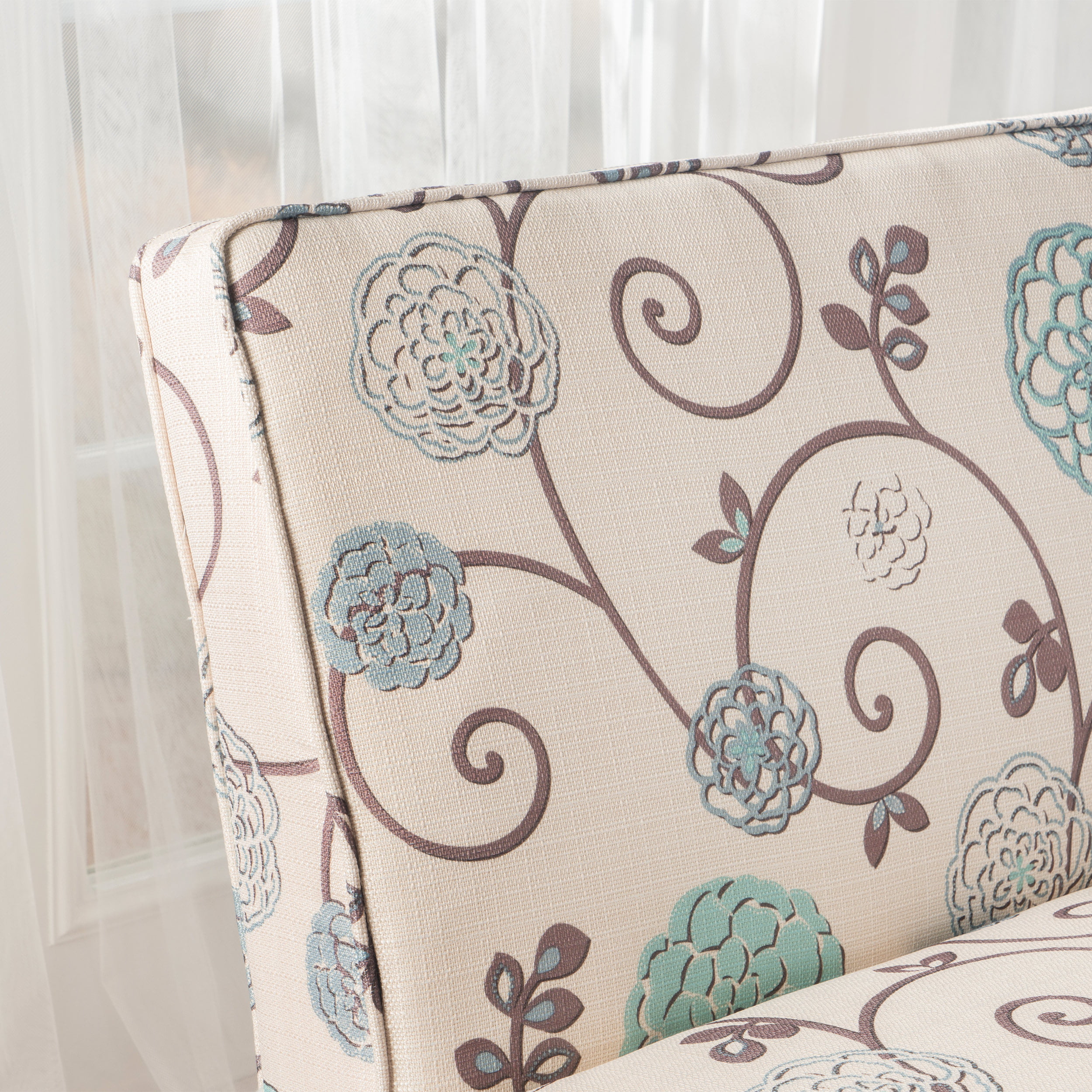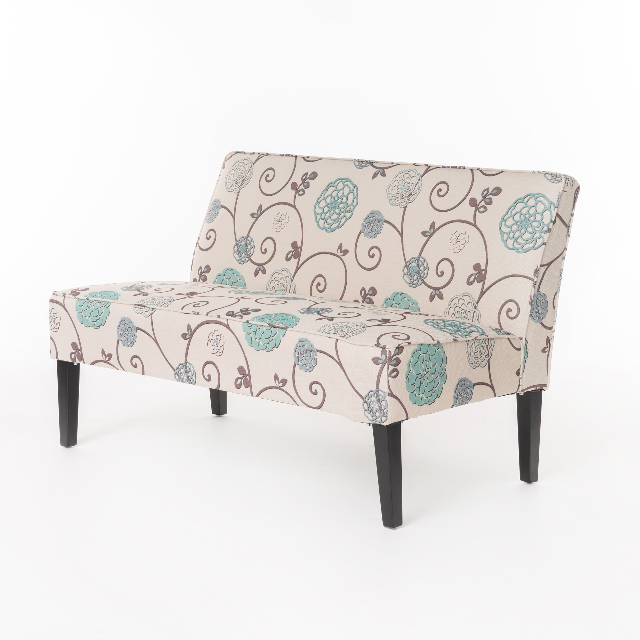 Noble House Darnell White and Blue Floral Fabric Armless Love Seat
