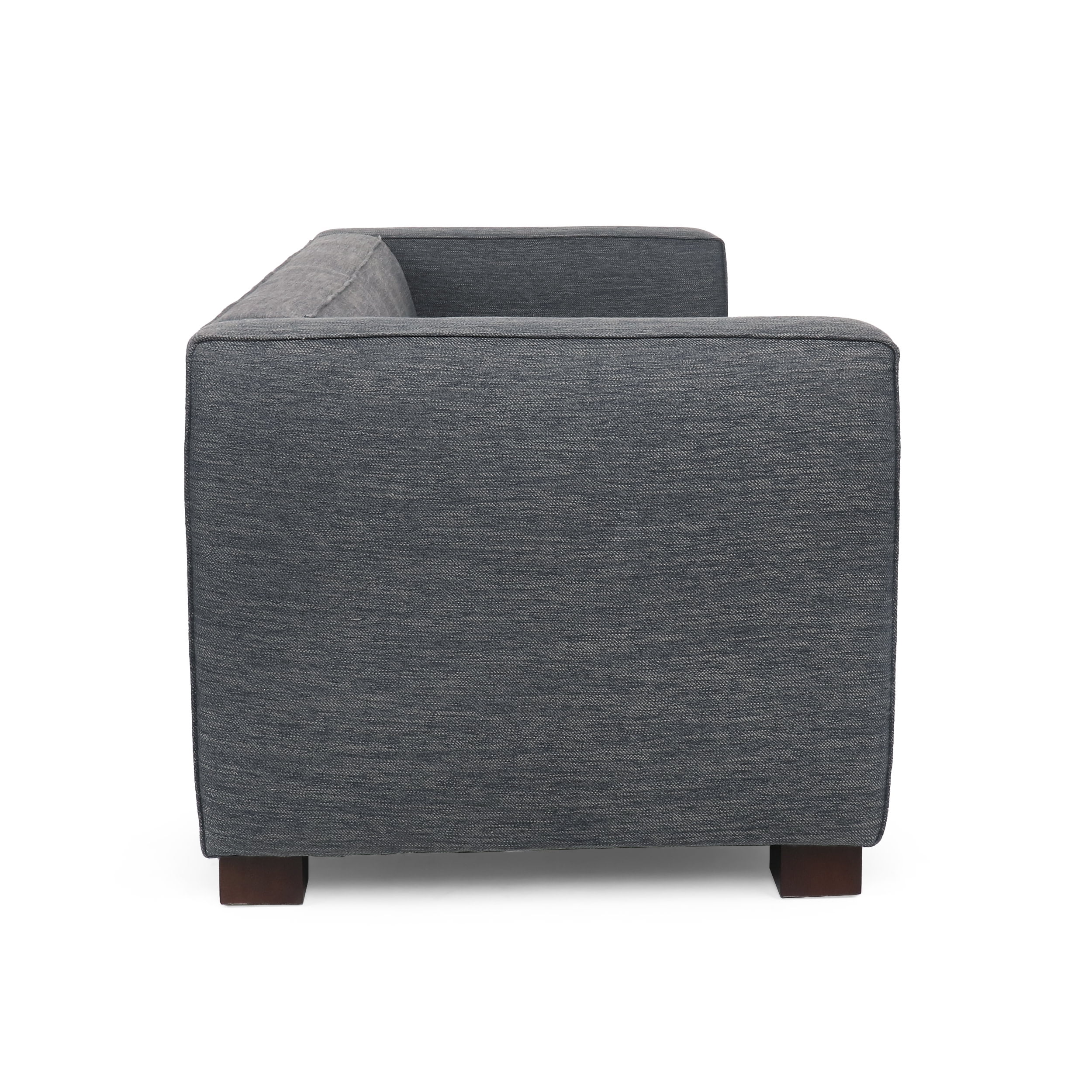 Noble House Bartram Indoor Fabric Upholstered Loveseat. Navy Blue and Dark Walnut