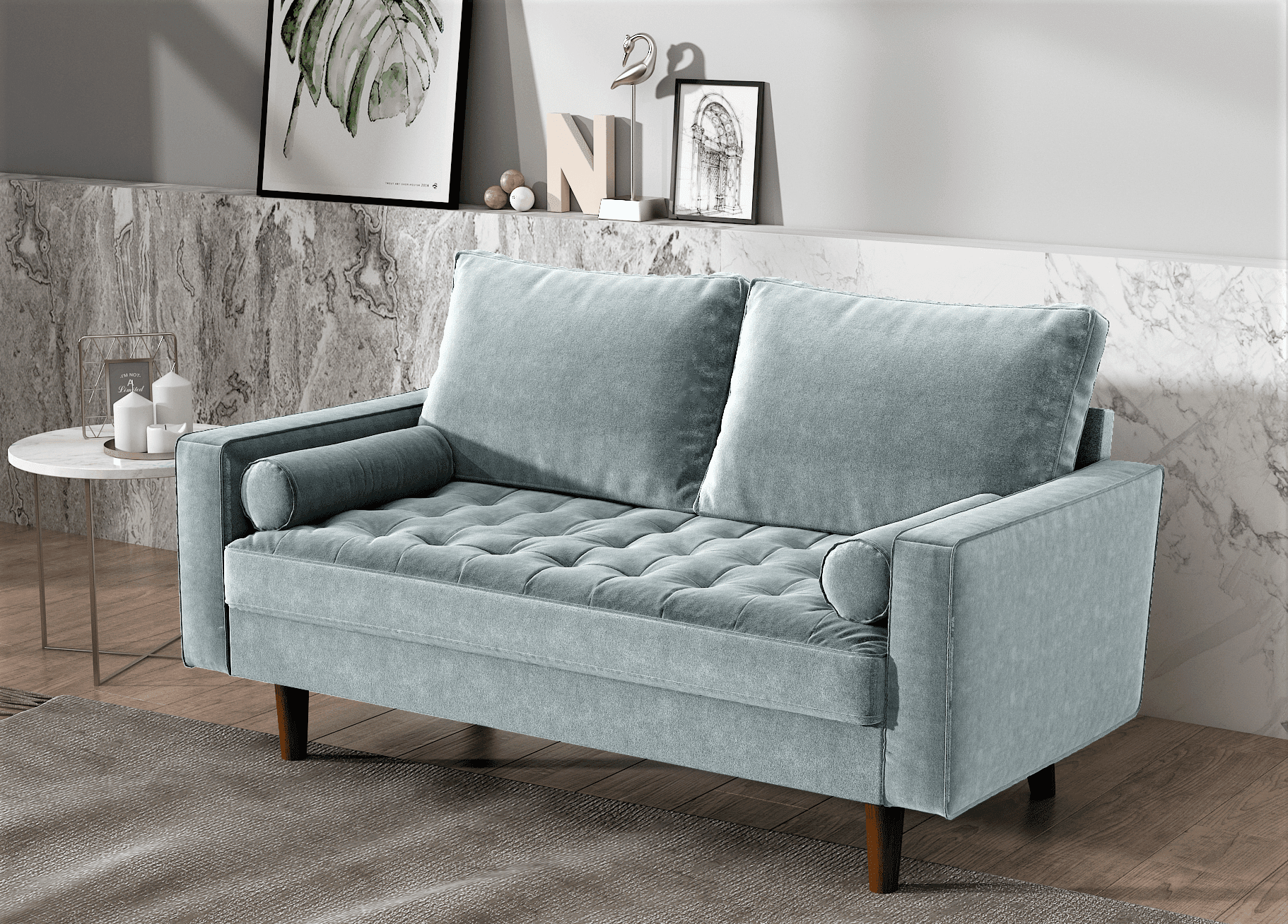US Pride Furniture Mac Velvet 2 Seater Living Room Loveseat. Tiffany Blue