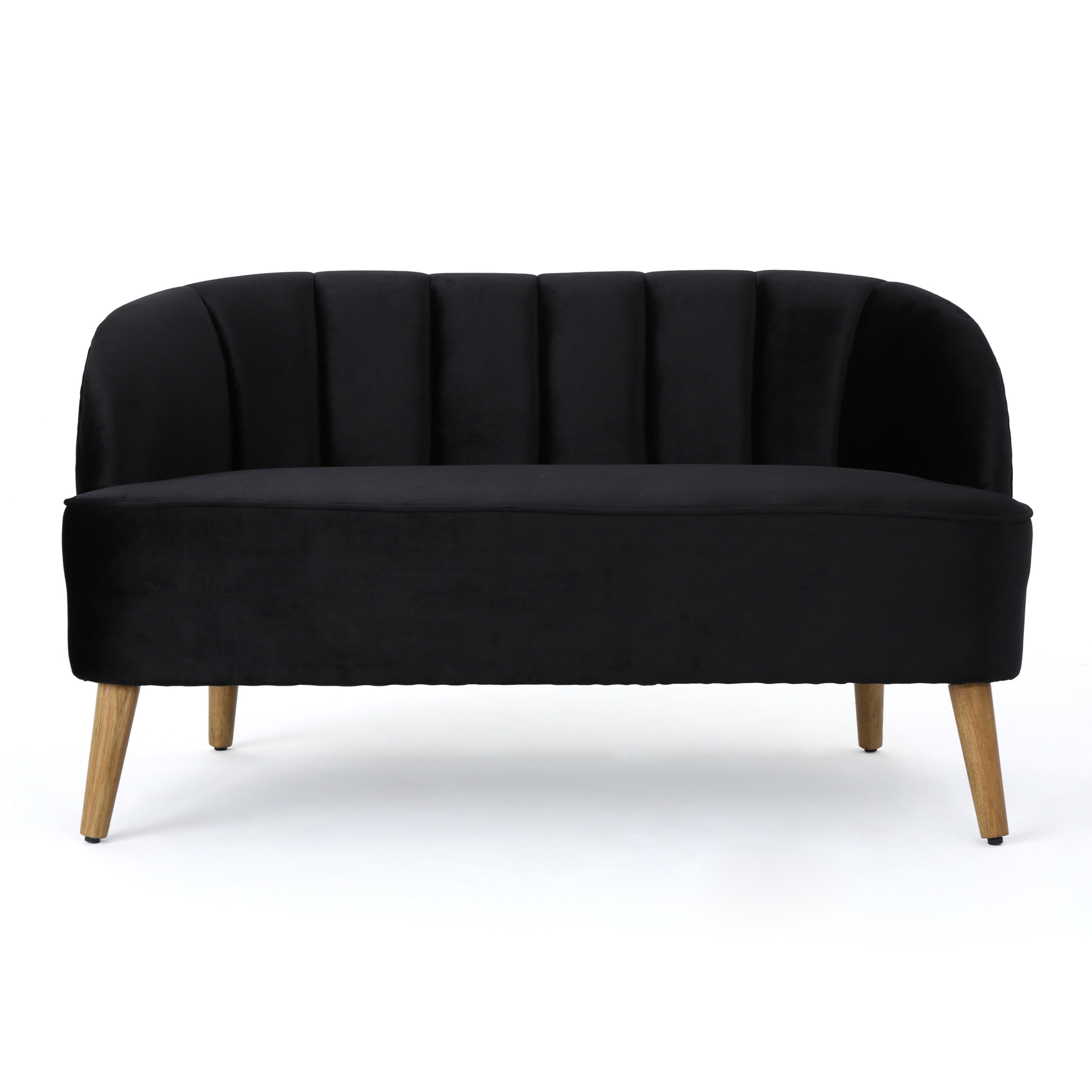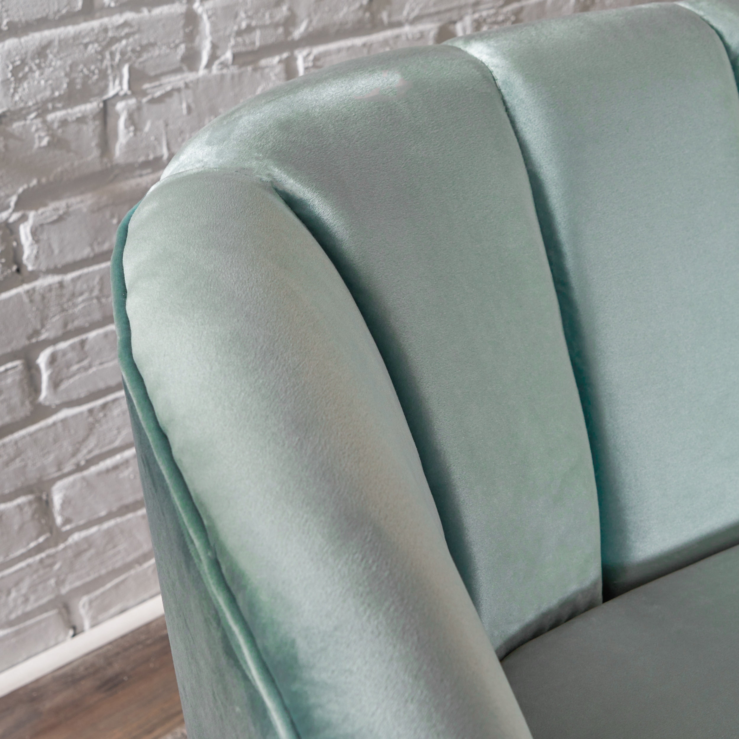 Noble House Albert Indoor Modern Velvet Scalloped Loveseat. Seafoam Blue