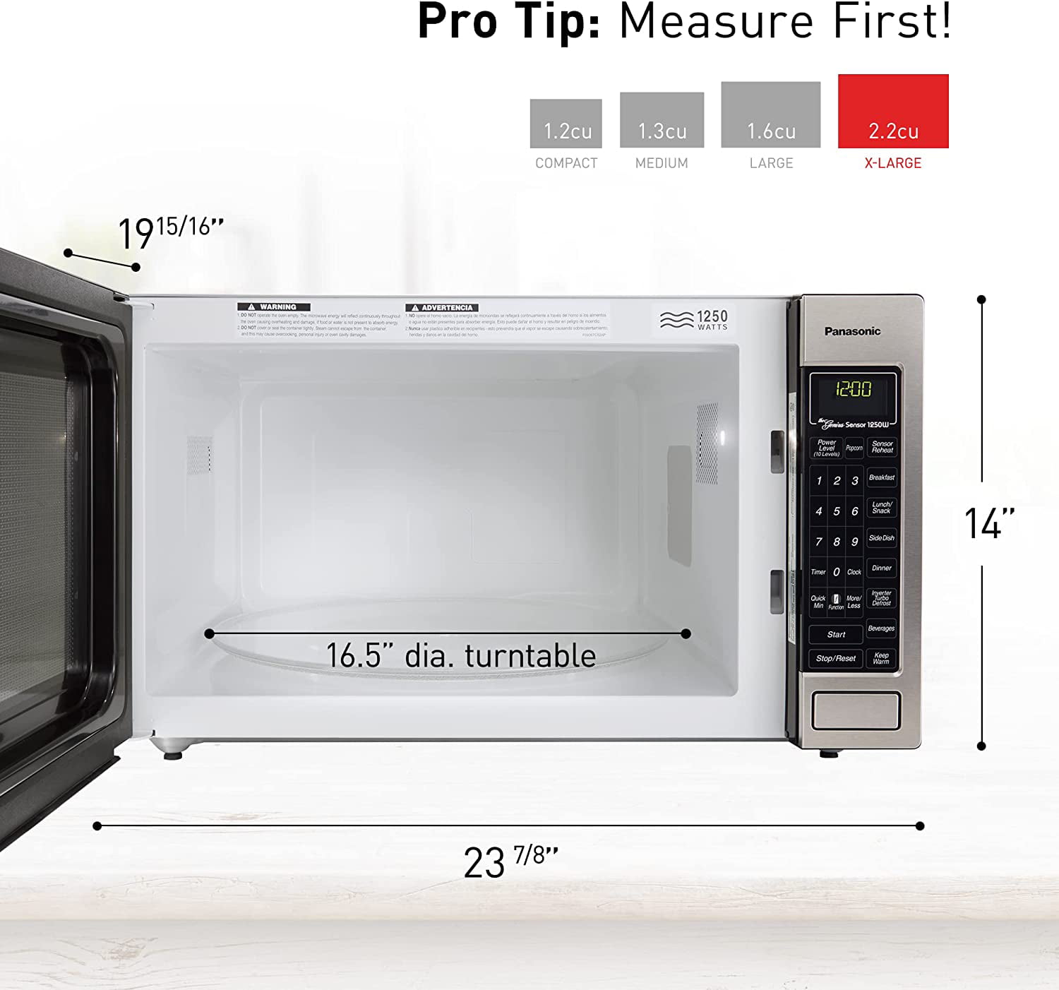 Panasonic NN-T945SF 2.2 cu.ft Inverter Countertop Microwave Oven 1250Watt Power with Genius Sensor Cooking. Stainless Steel