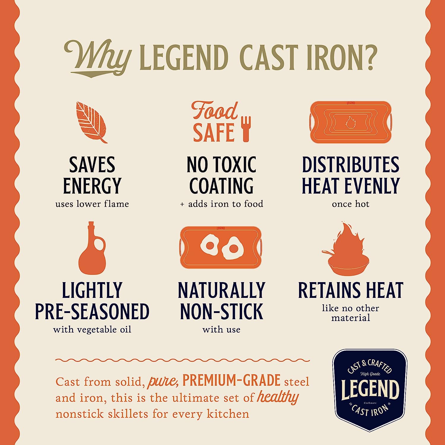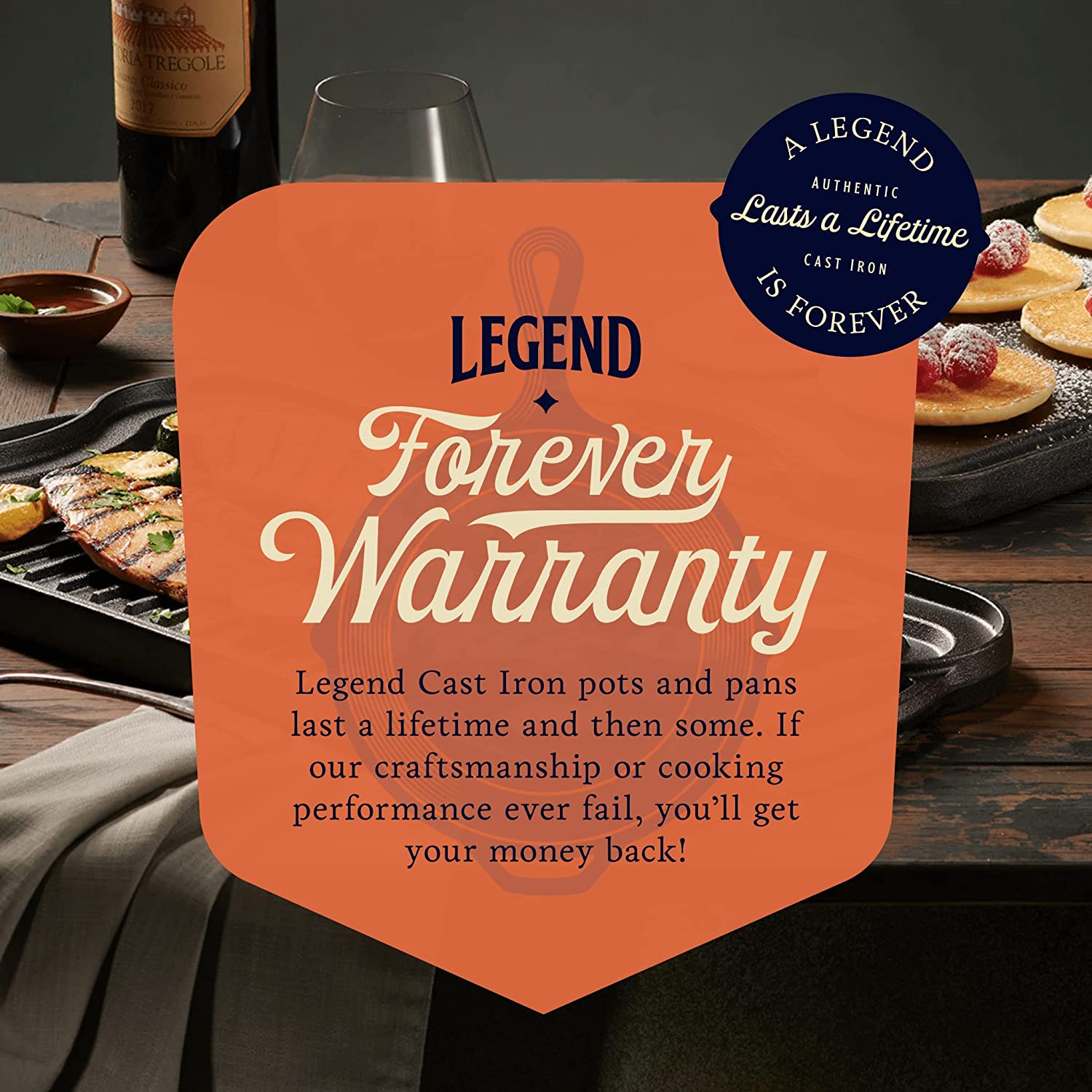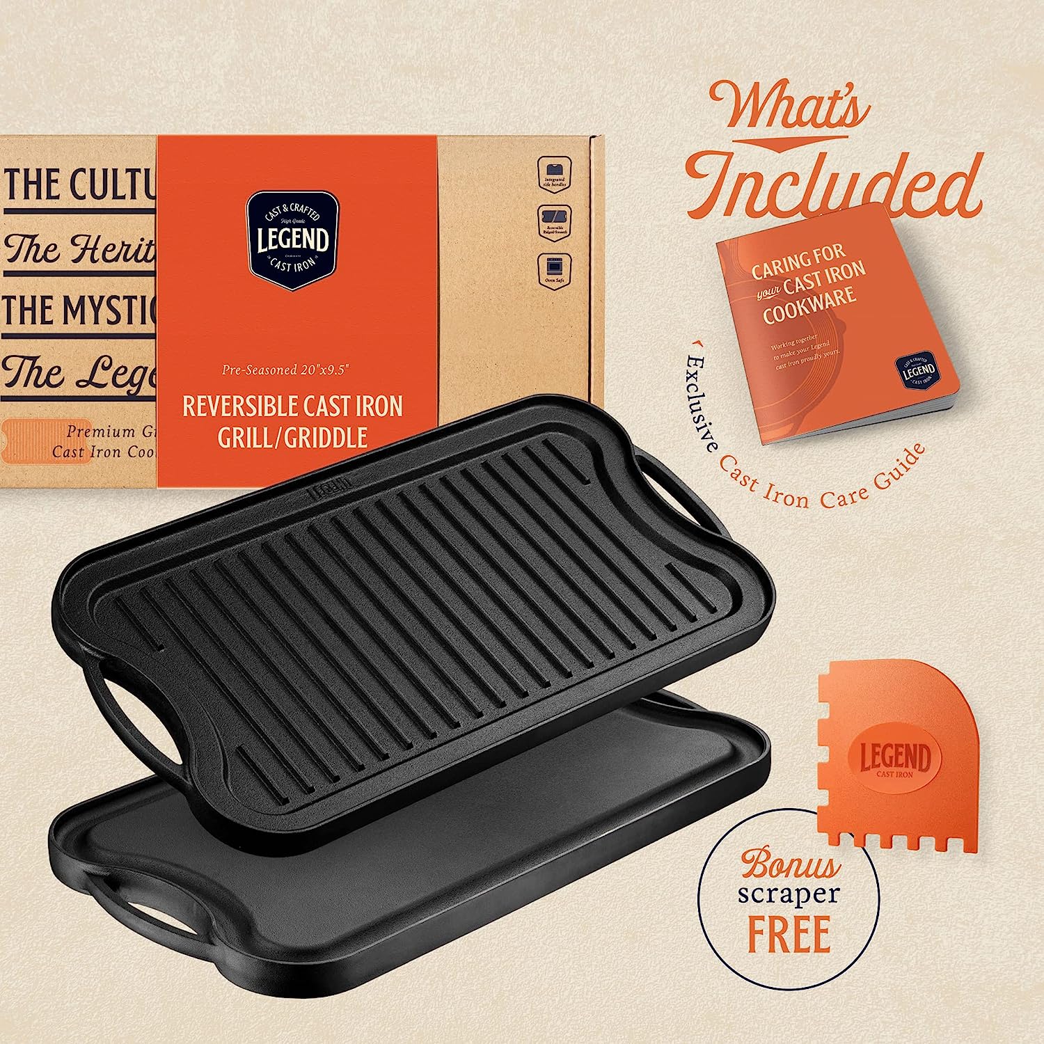 Legend Cast Iron Griddle for Gas Stovetop | 2-in-1 Reversible 20 Cast Iron Grill Pan for Stovetop with Easy Grip Handles | Use On Open Fire & in Oven | Lightly Pre-Seasoned Gets Better with Each Use