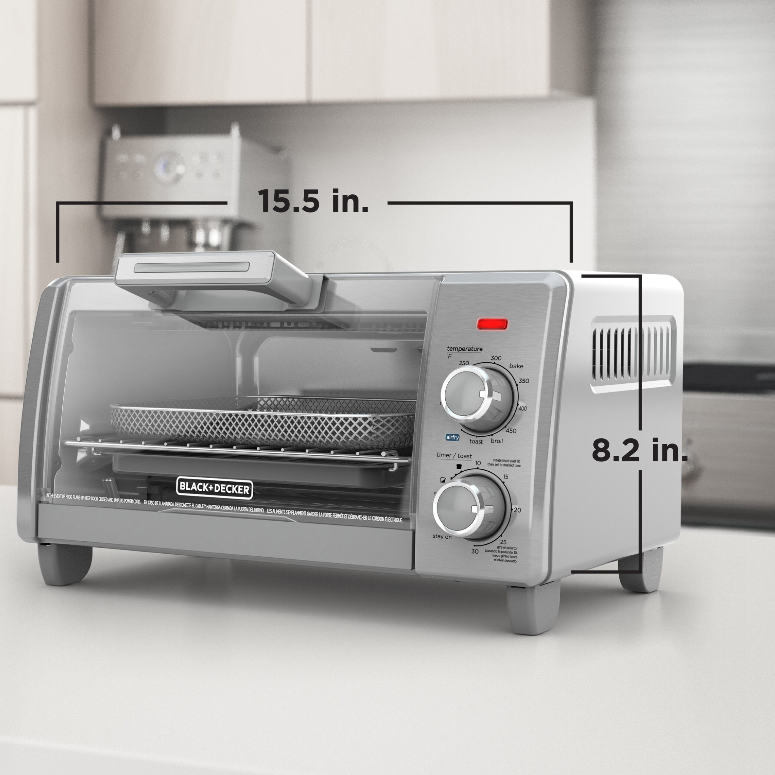 BLACK+DECKER Crisp 'N Bake Air Fry 4-Slice Toaster Oven. Silver & Black. TO1787SS