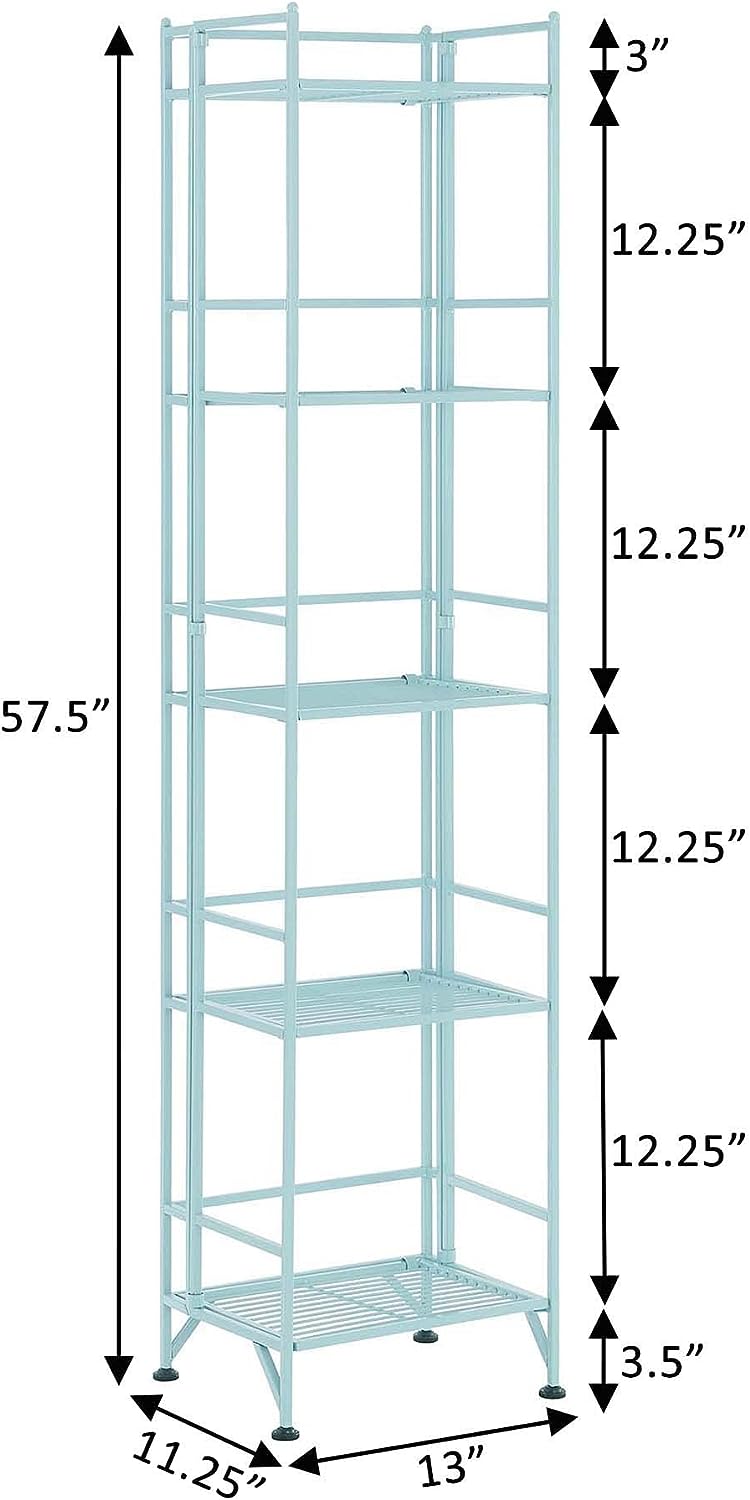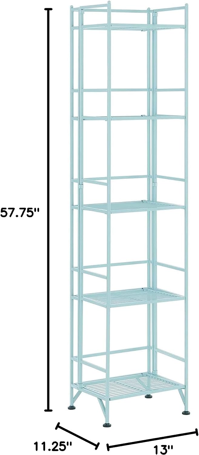 Convenience Concepts Xtra Storage Shelves - 5-Tier Folding Metal Shelving. Modern Shelves for Storage and Display in Living Room. Bathroom. Office. Kitchen. Garage. Sea Foam