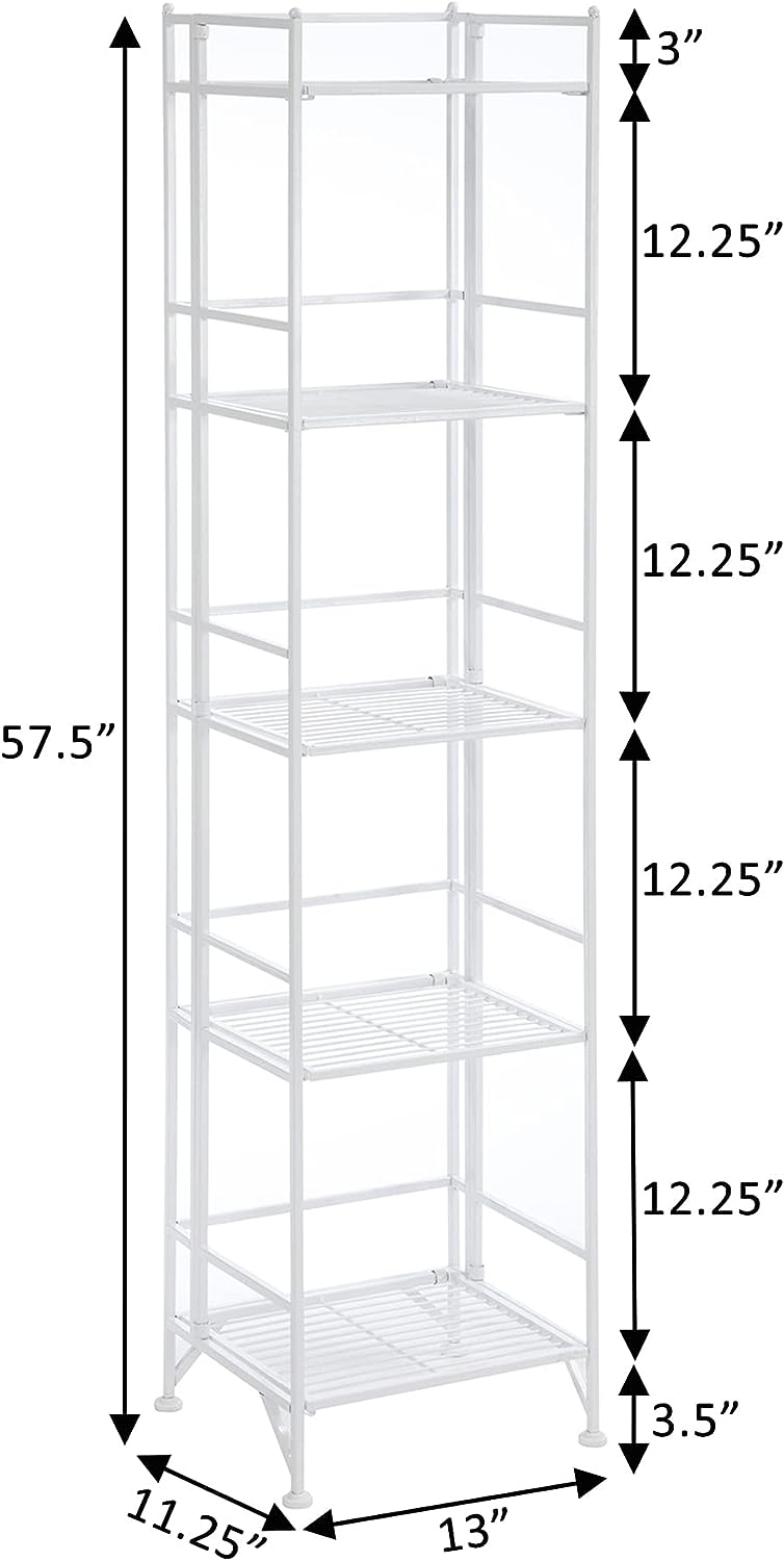 Convenience Concepts Xtra Storage Shelves - 5-Tier Folding Metal Shelving. Modern Shelves for Storage and Display in Living Room. Bathroom. Office. Kitchen. Garage. White