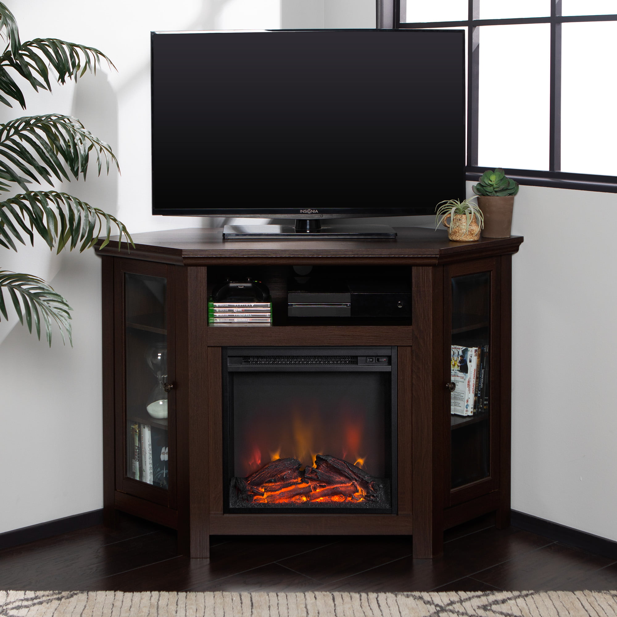 Walker Edison Espresso Corner Fireplace TV Stand for TVs up to 50″
