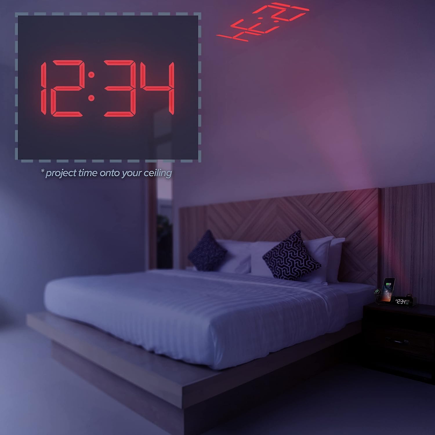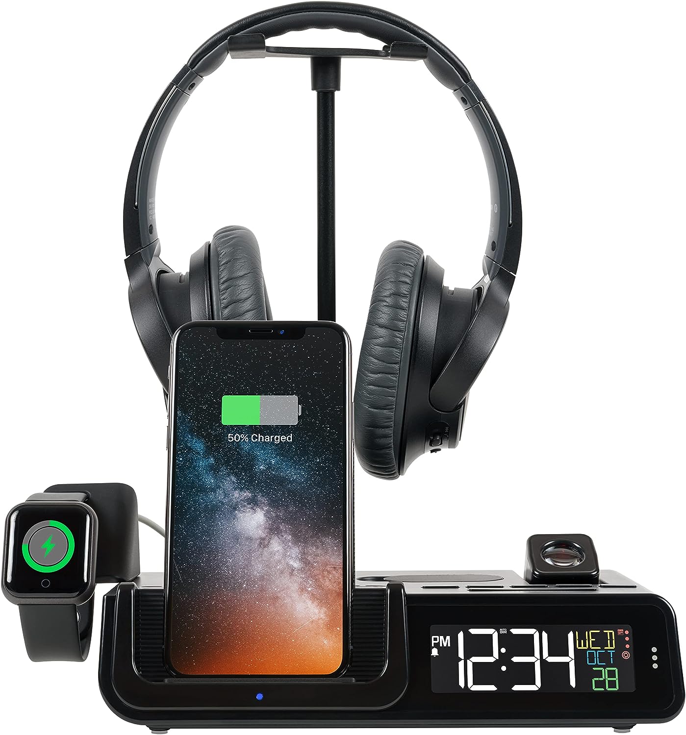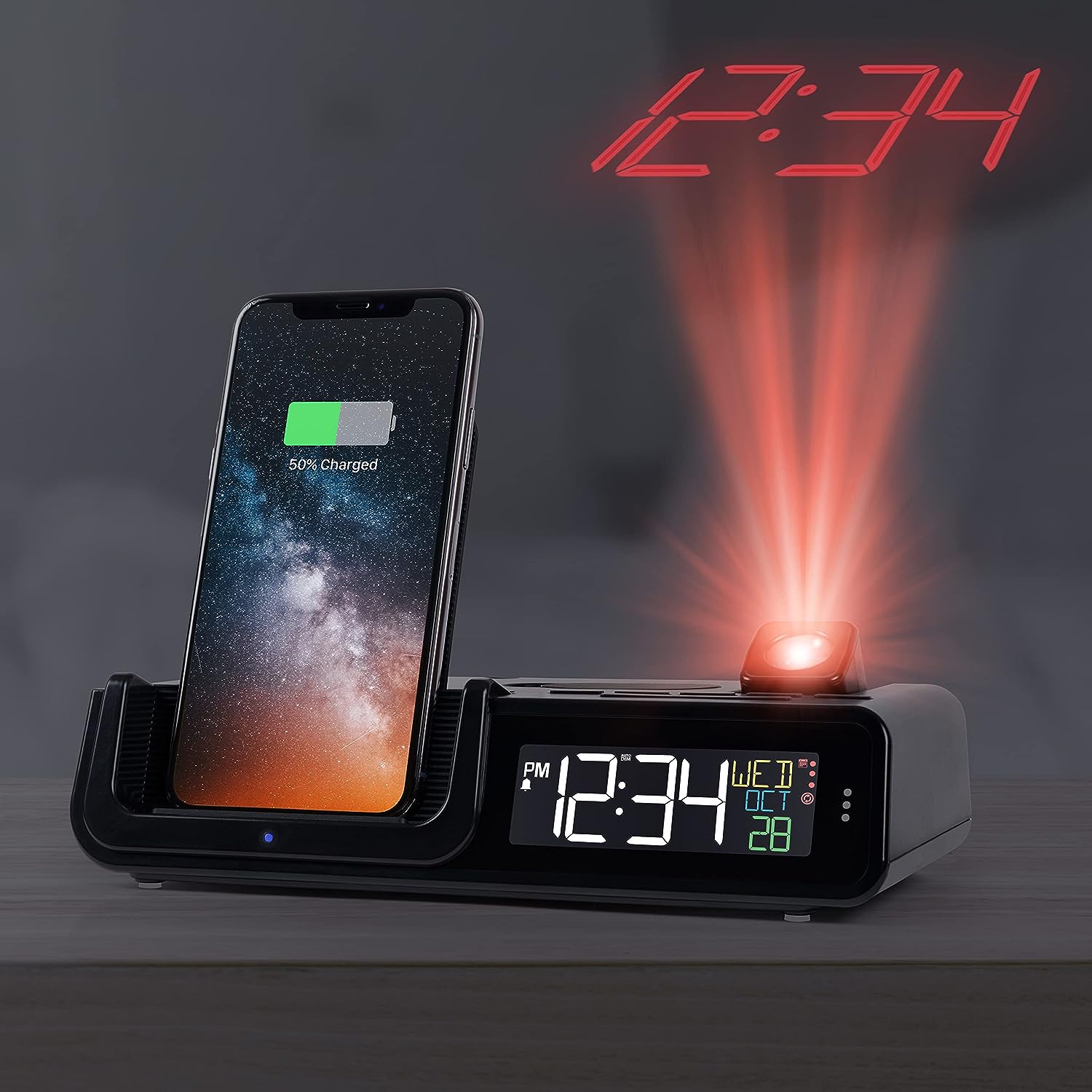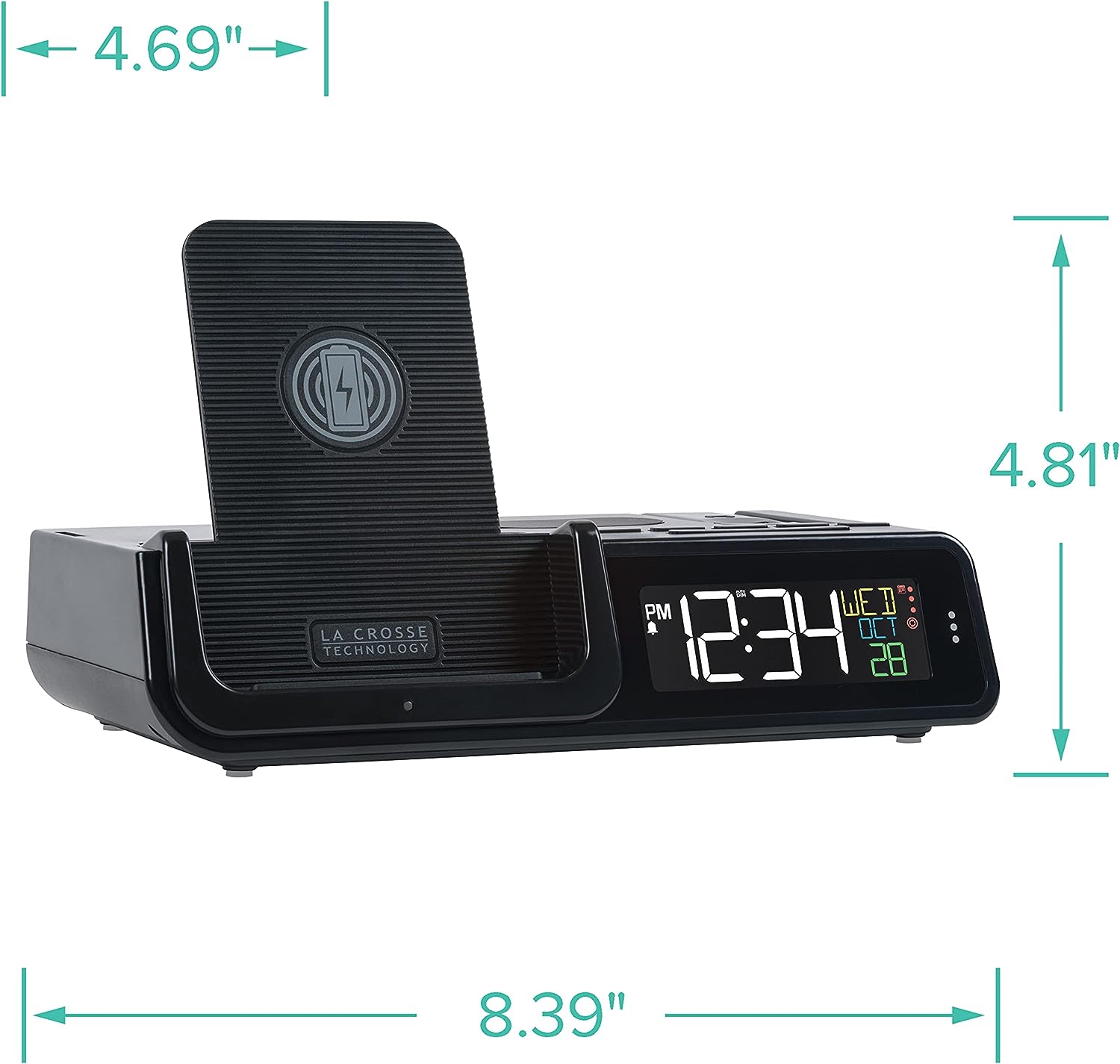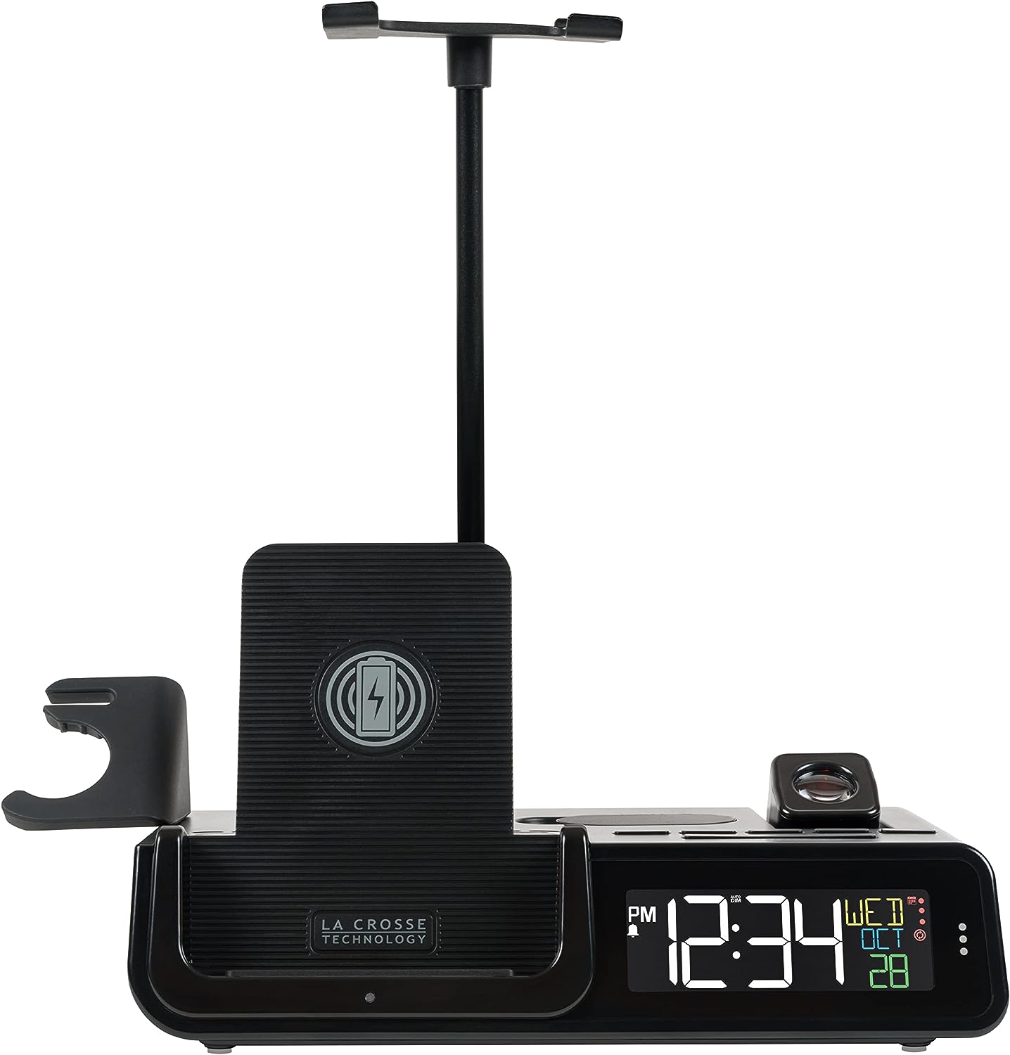 La Crosse Technology 616A-30357-INT Wattz 2.0 Wireless Charging Projection Alarm Clock with Headphone Stand