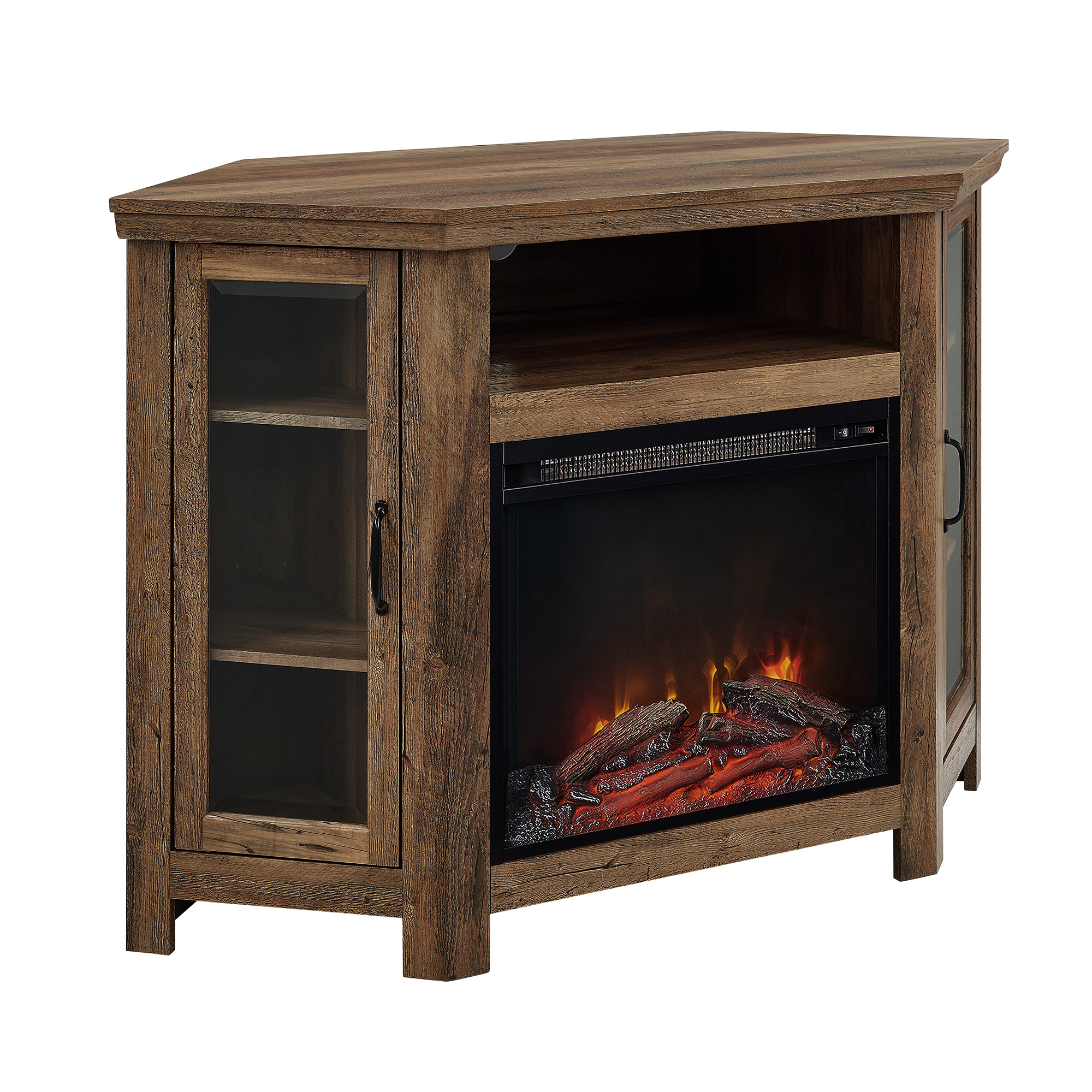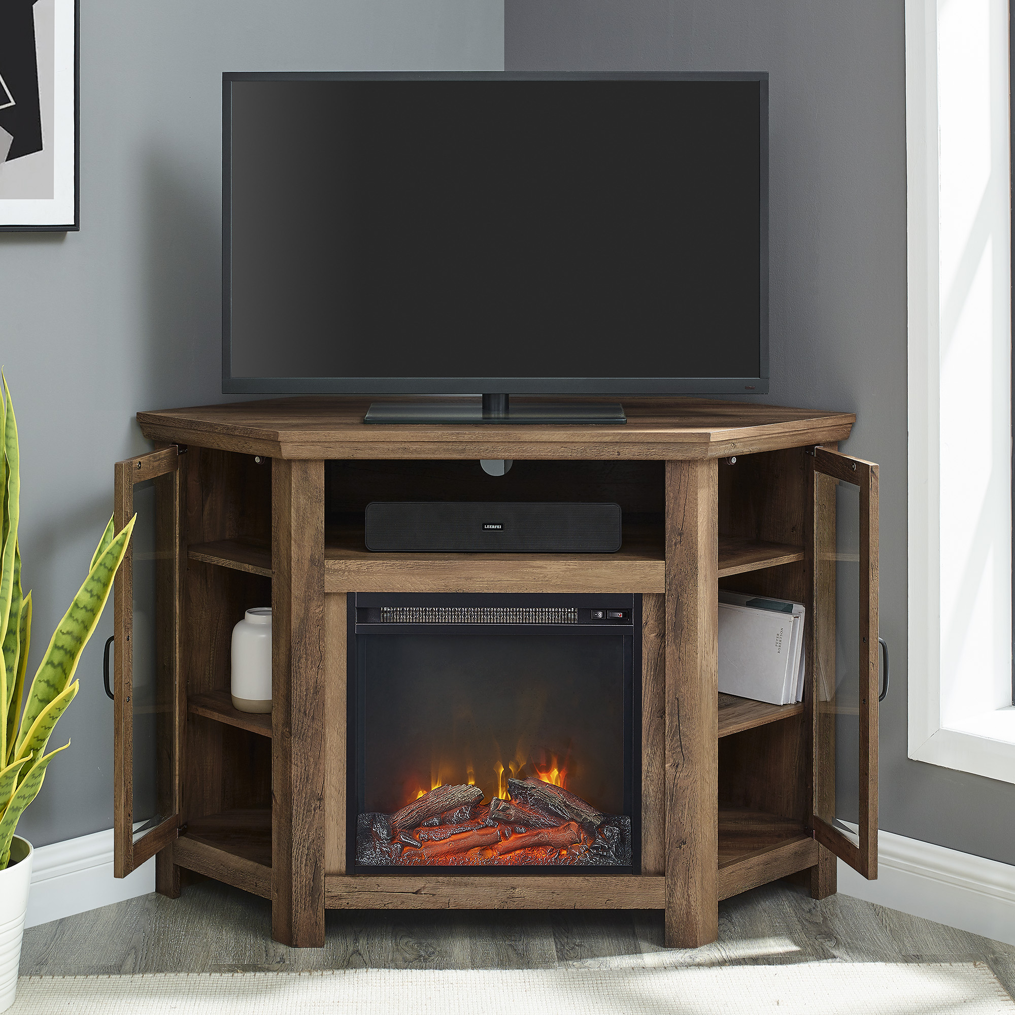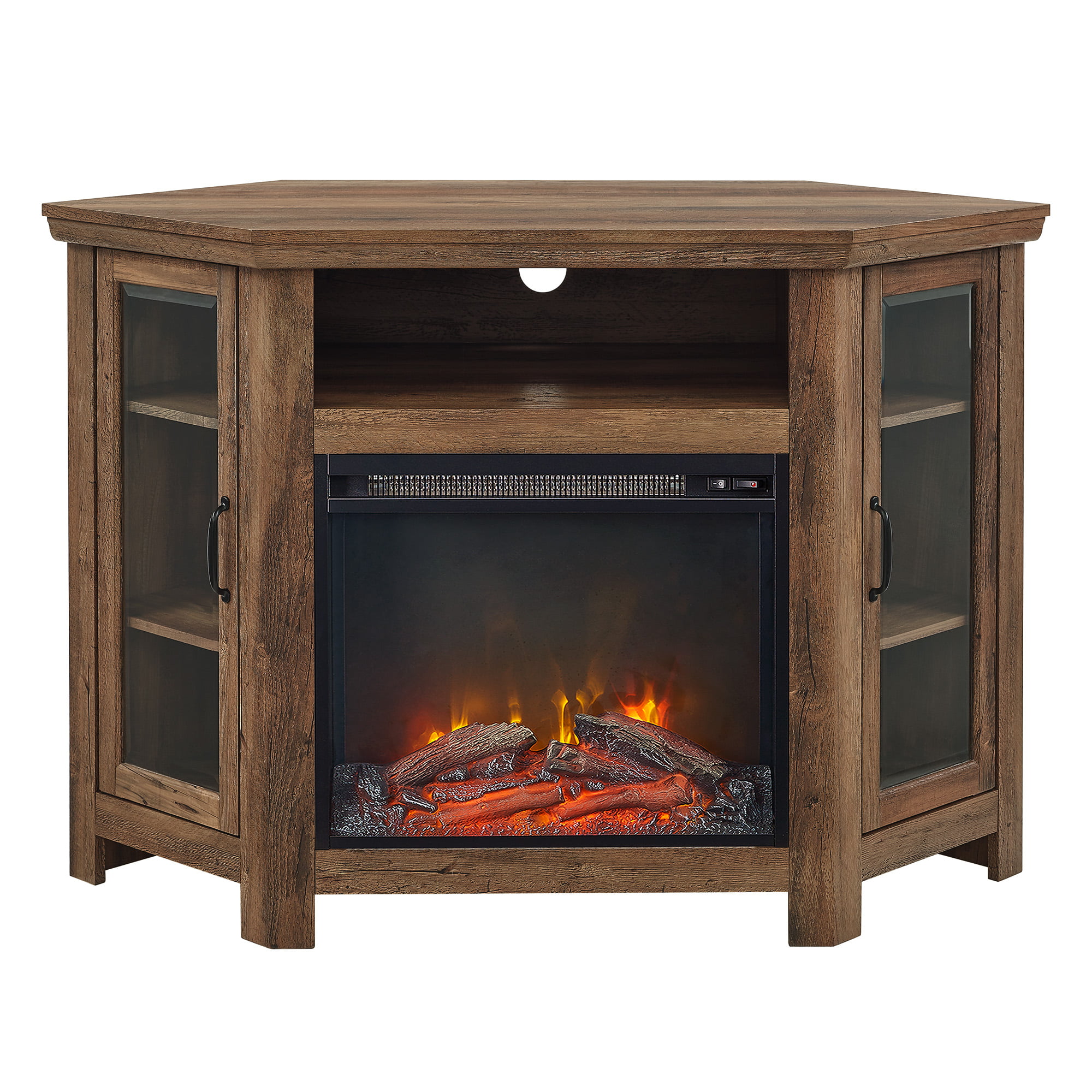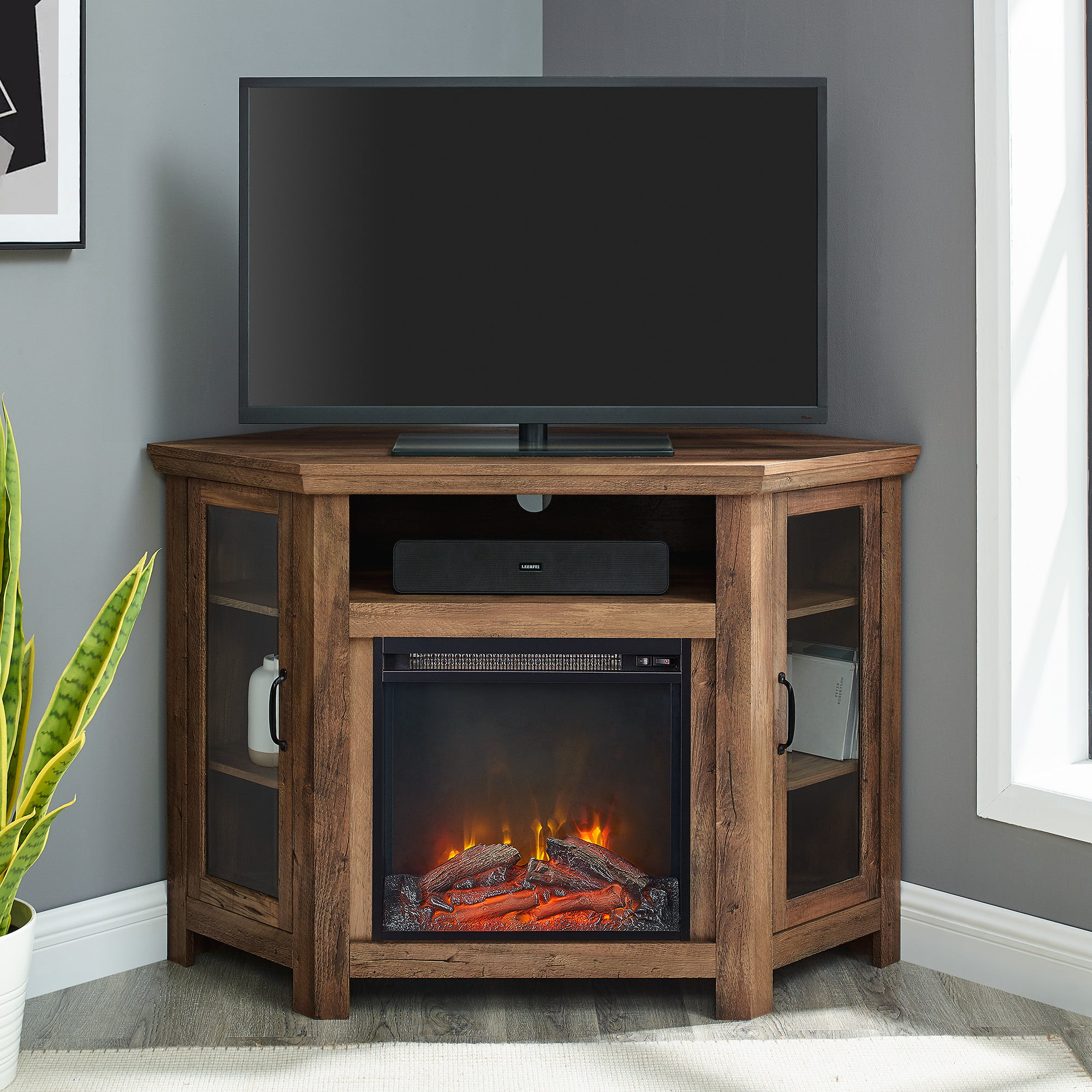 Walker Edison Rustic Oak Corner Fireplace TV Stand for TVs up to 50″