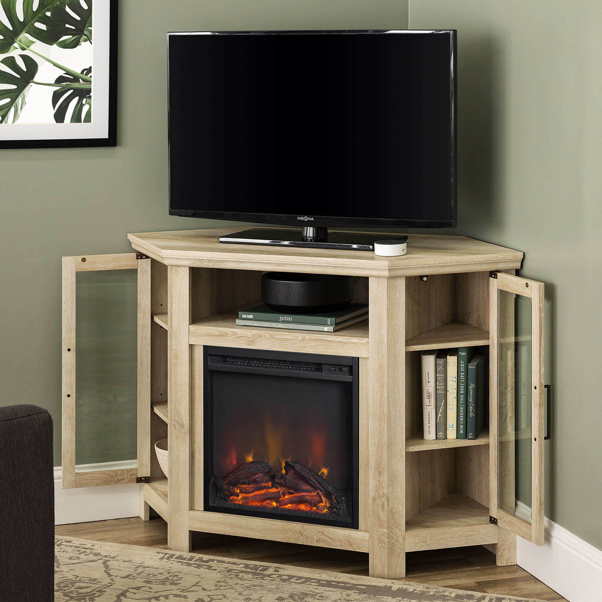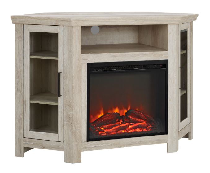 Walker Edison White Oak Corner Fireplace TV Stand for TVs up to 50″