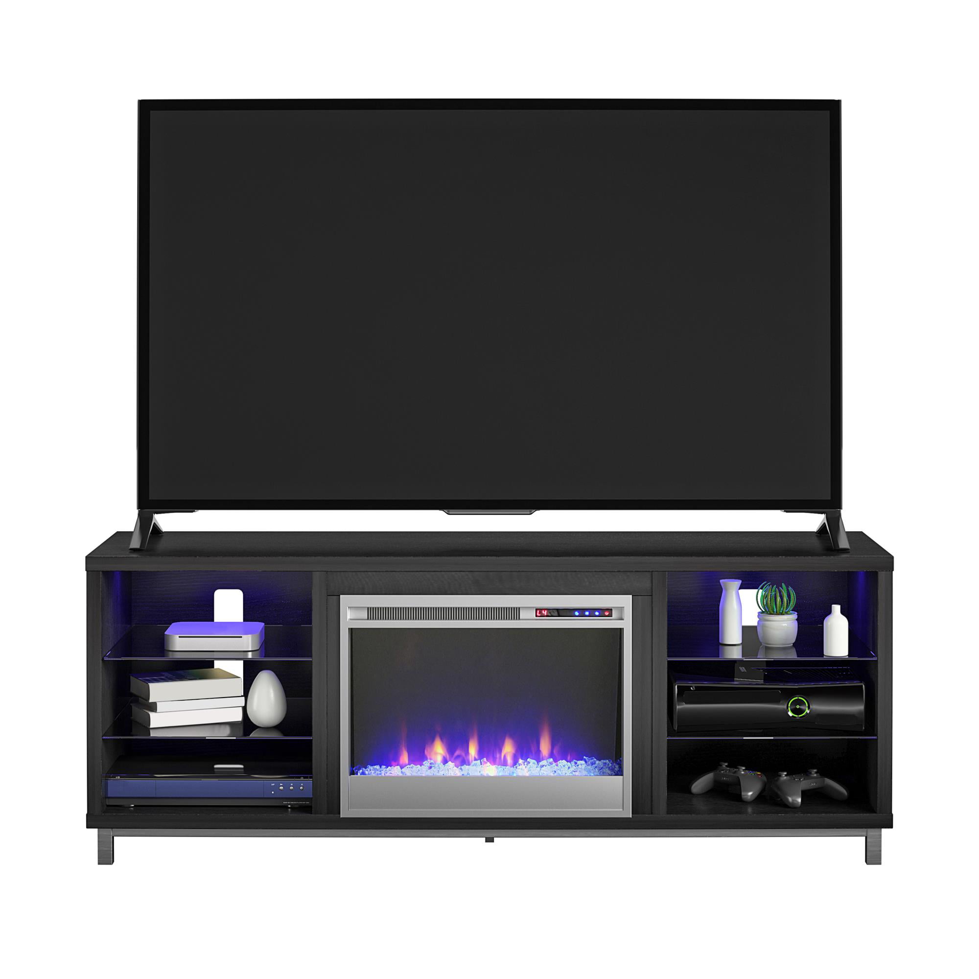 Ameriwood Home Lumina Fireplace TV Stand for TVs up to 70″. Black Oak
