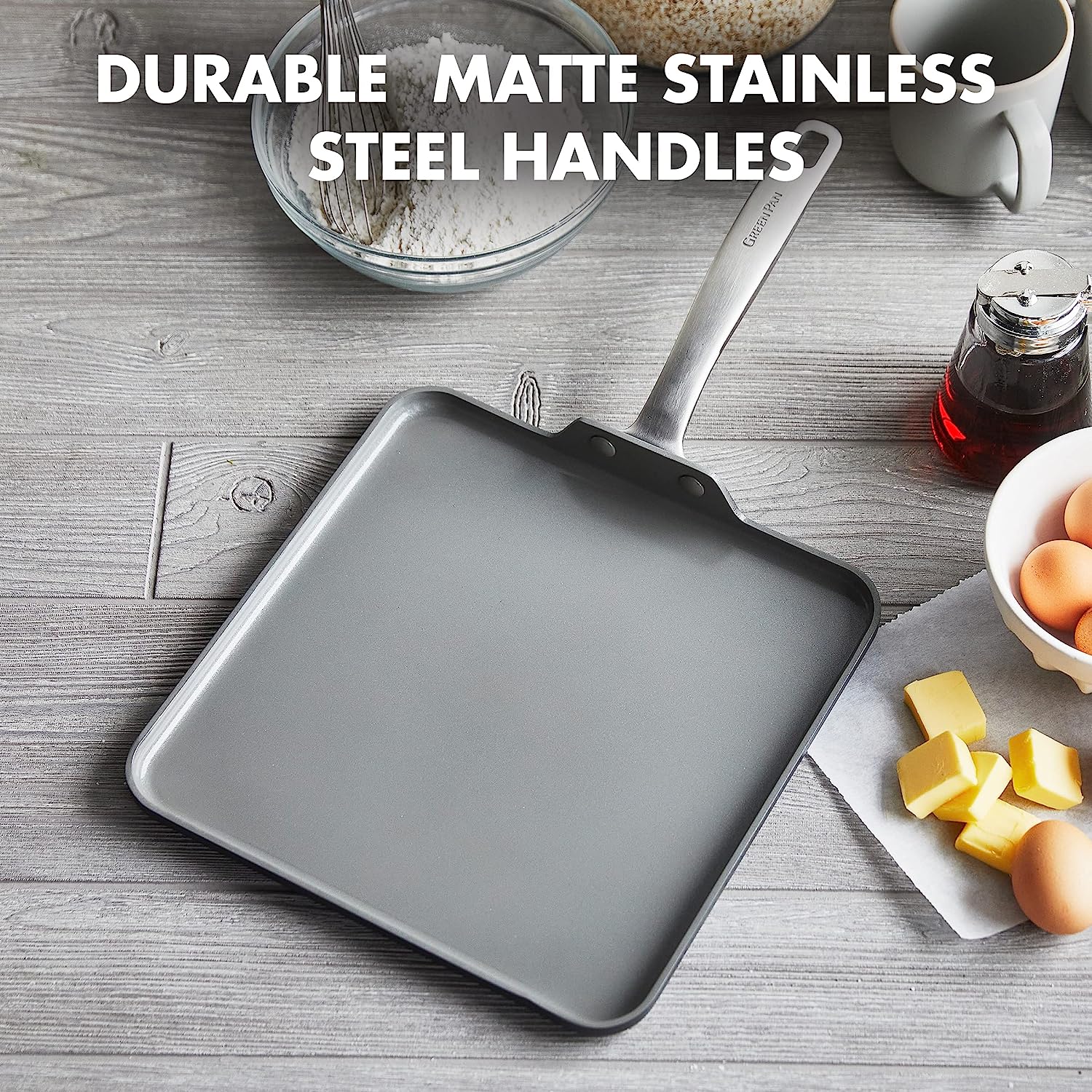 GreenPan Chatham Hard Anodized Healthy Ceramic Nonstick. 11″ Griddle Pan. PFAS-Free. Dishwasher Safe. Oven Safe. Gray