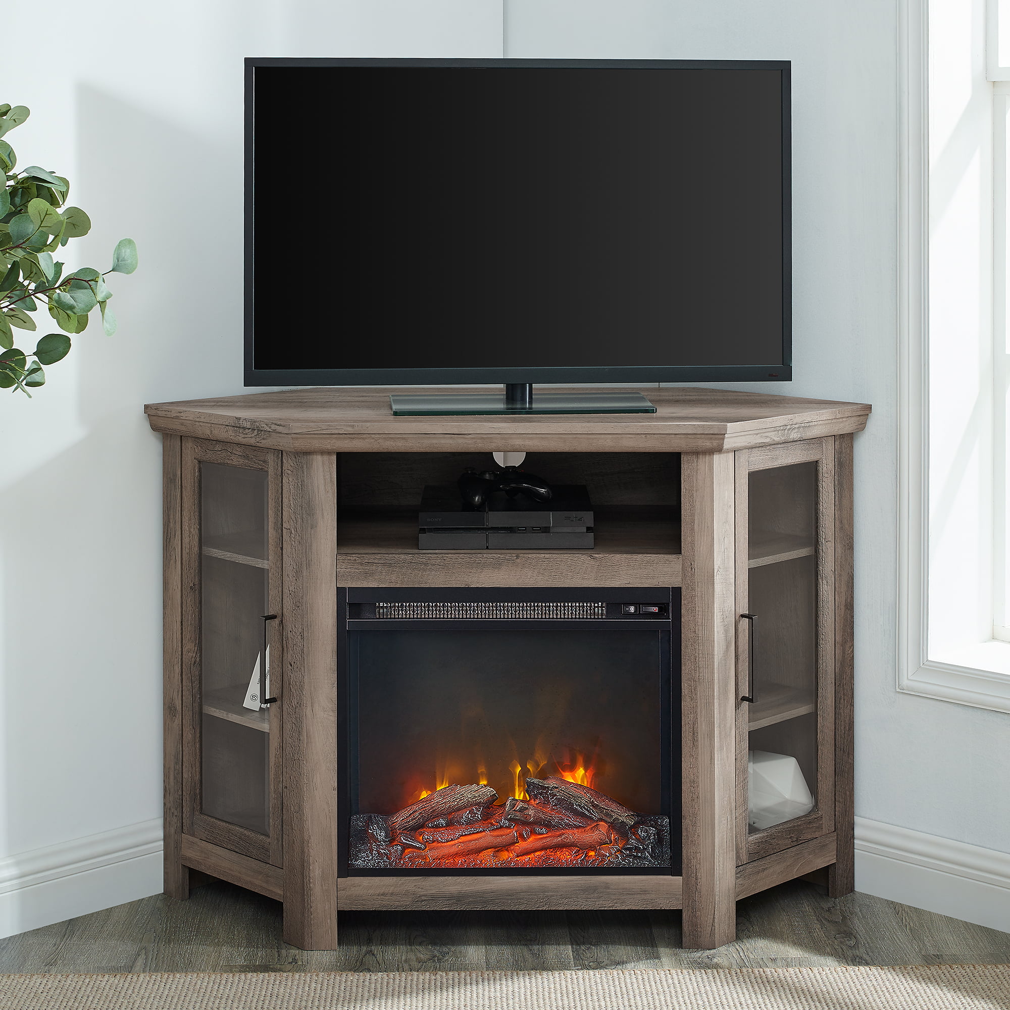 Walker Edison Corner Fireplace TV Stand for TVs up to 50″. Grey Wash