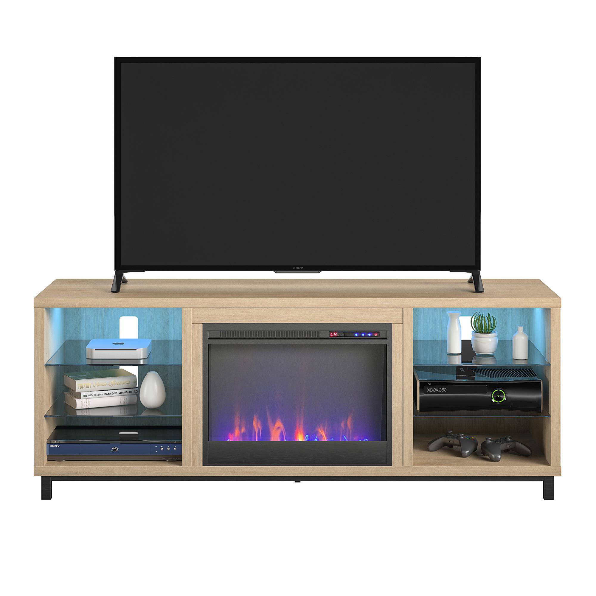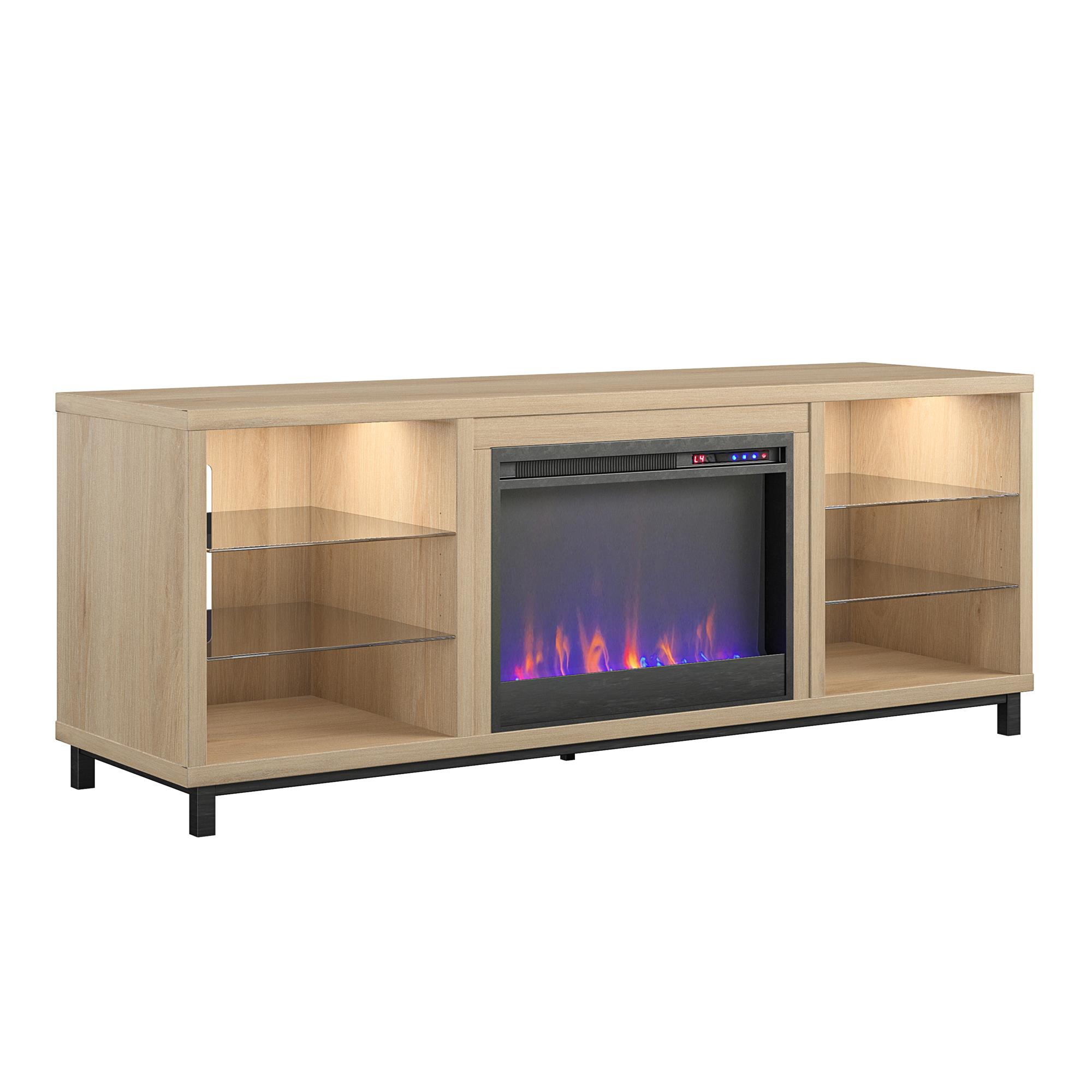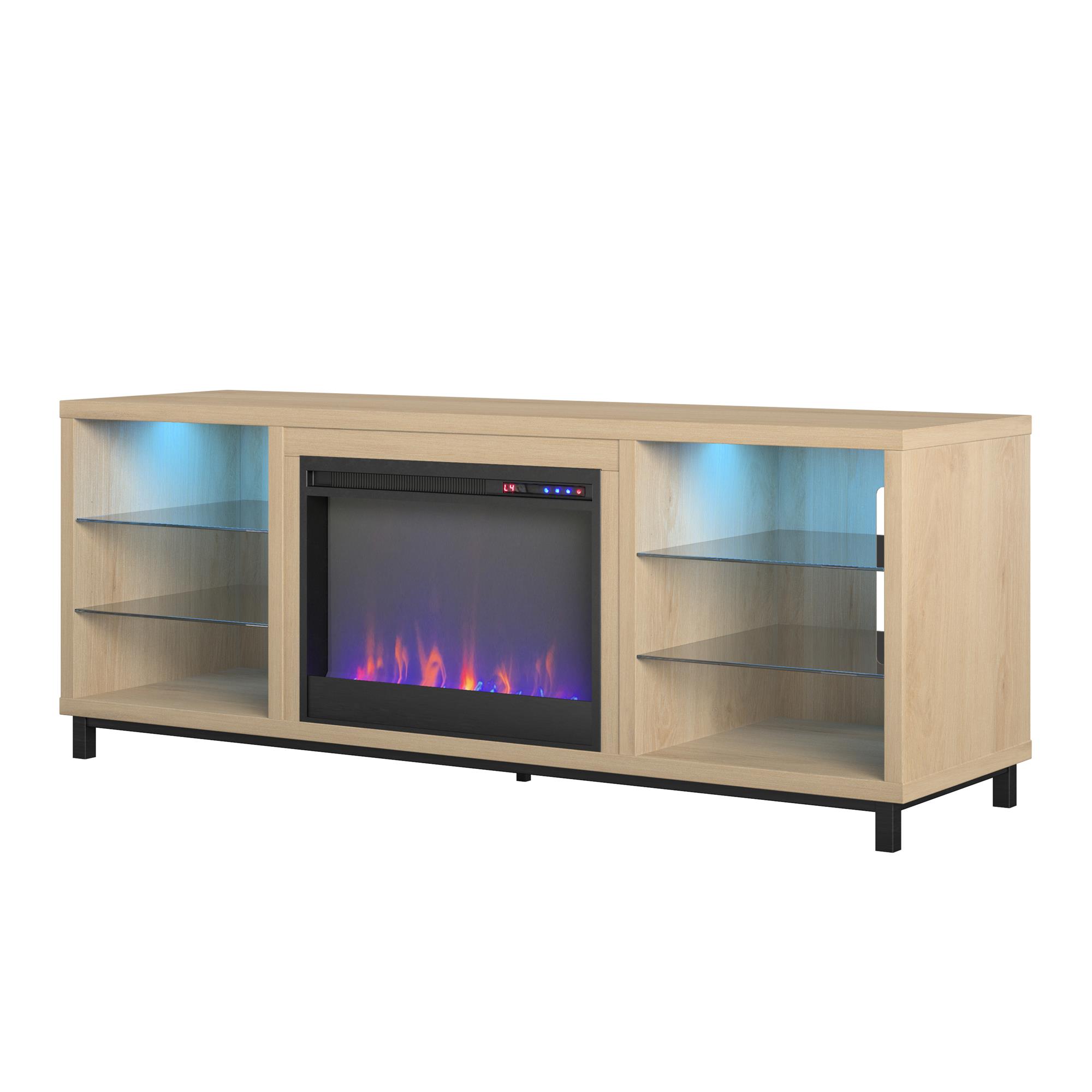 Ameriwood Home Lumina Deluxe Fireplace TV Stand for TVs up to 70″. Blonde Oak