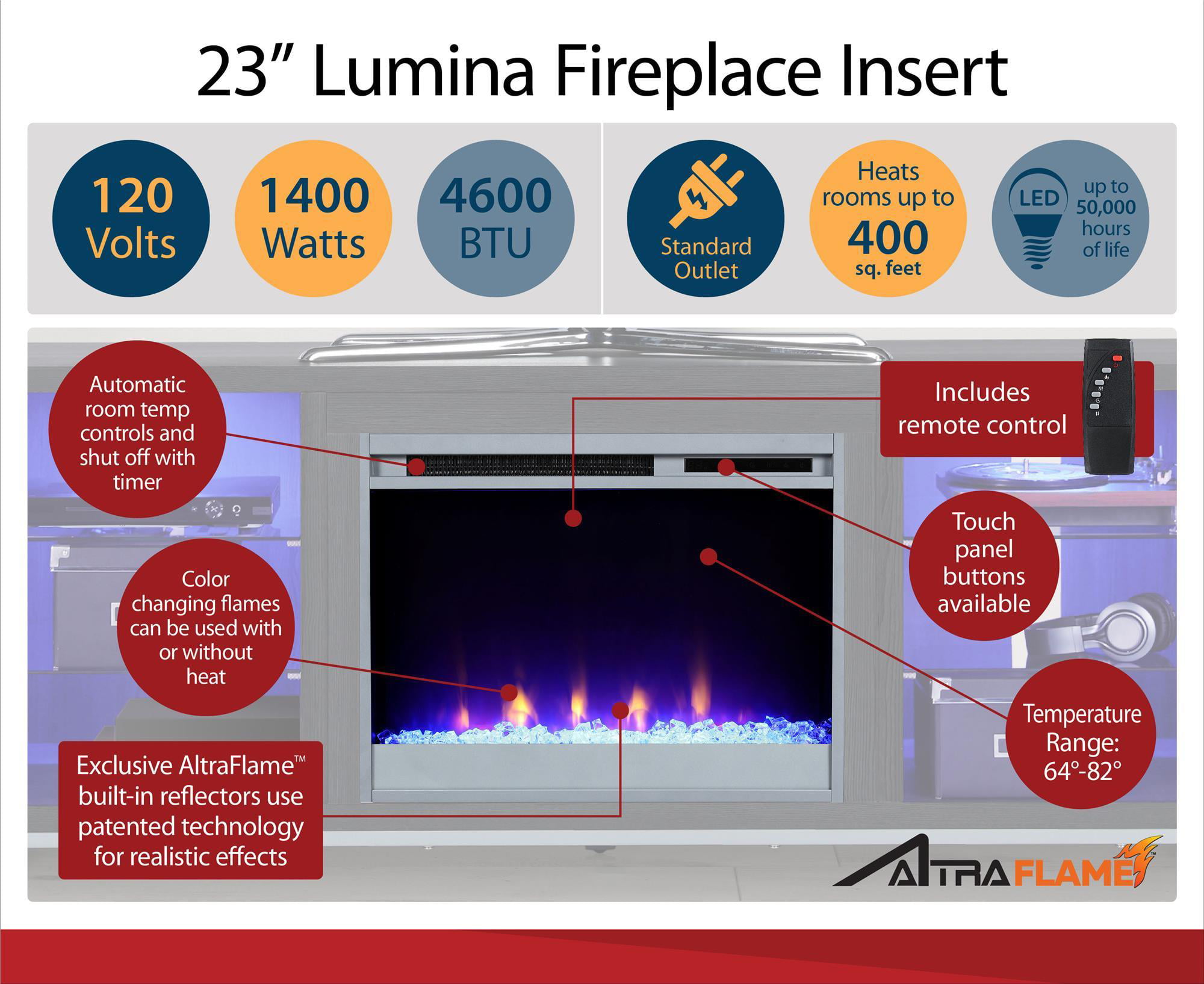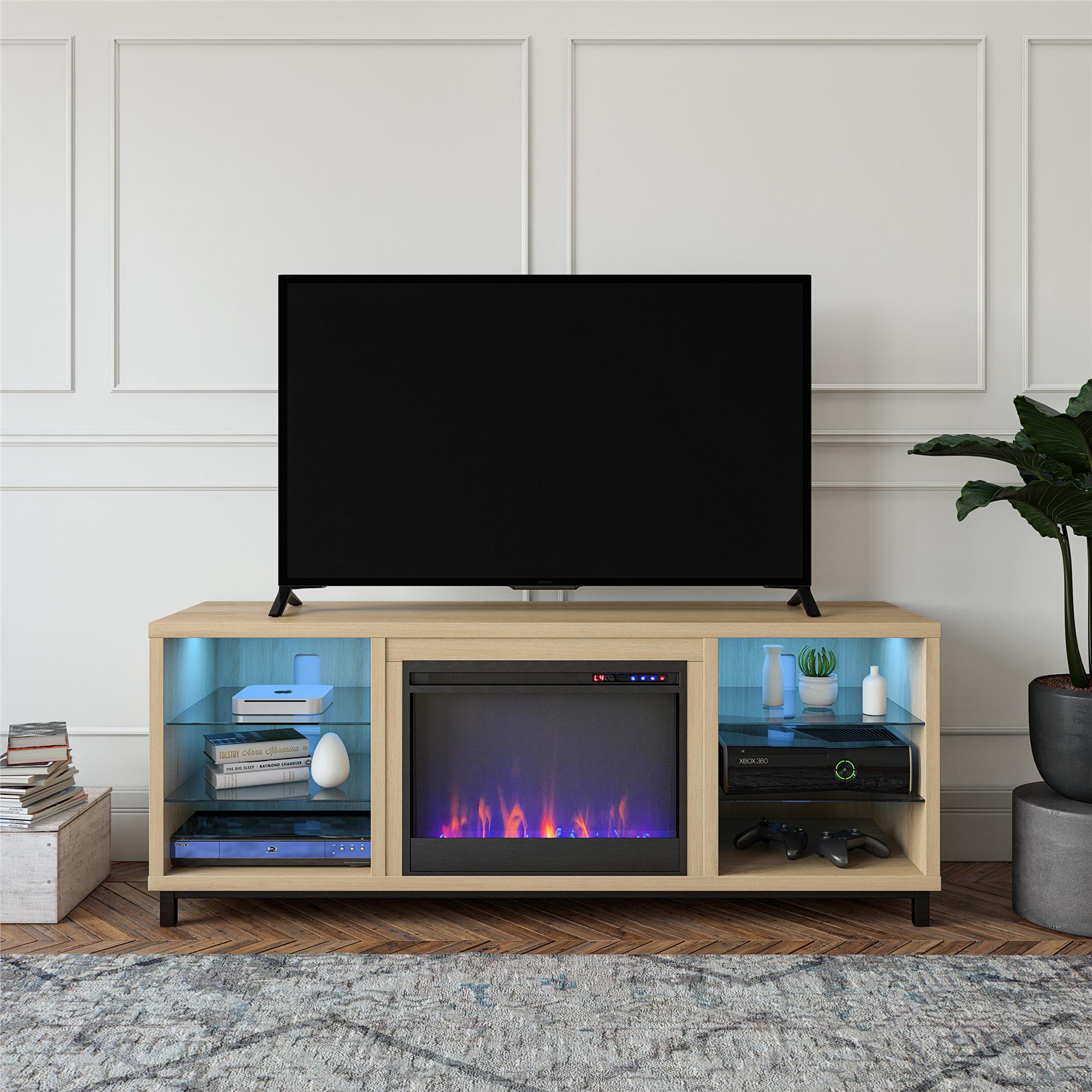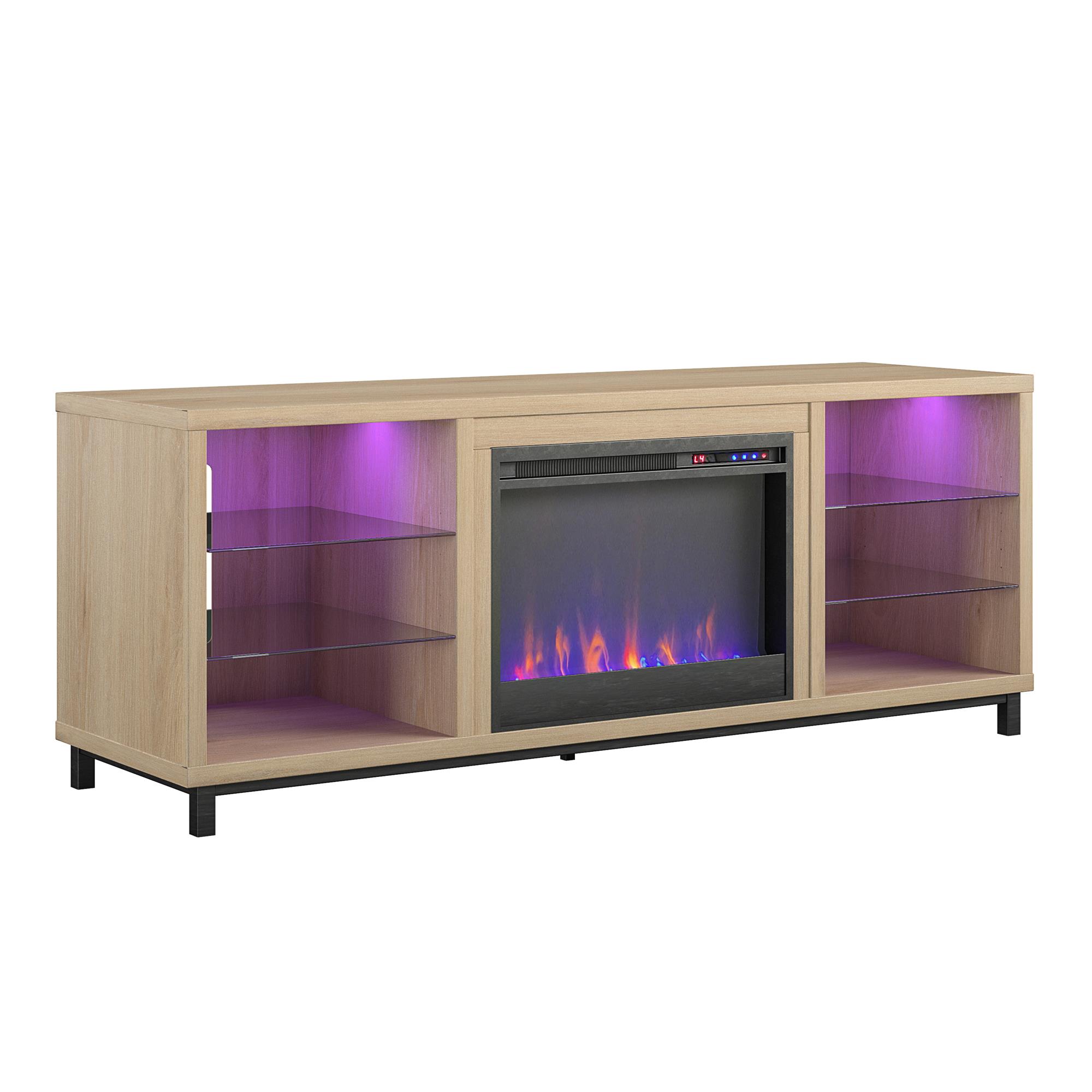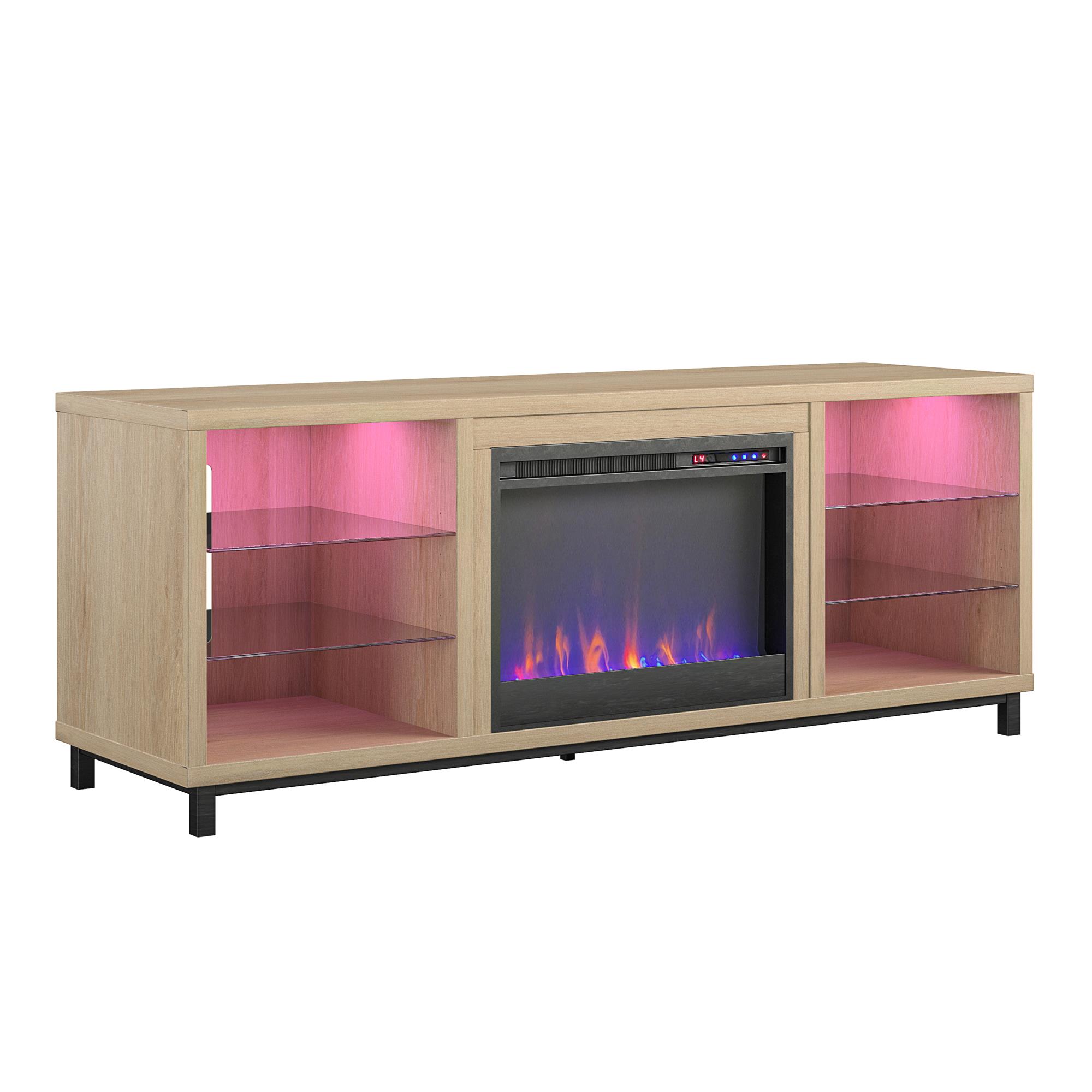 Ameriwood Home Lumina Deluxe Fireplace TV Stand for TVs up to 70″. Blonde Oak