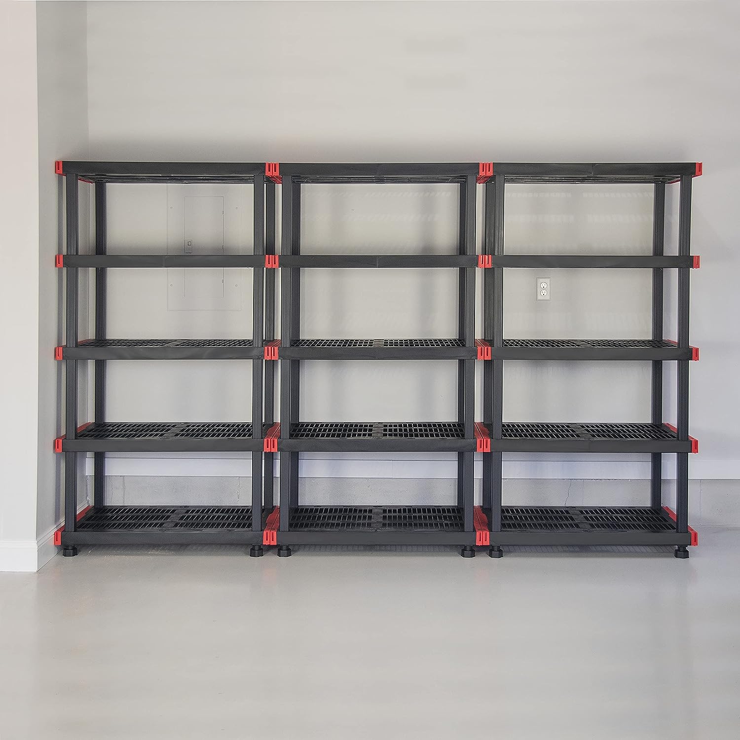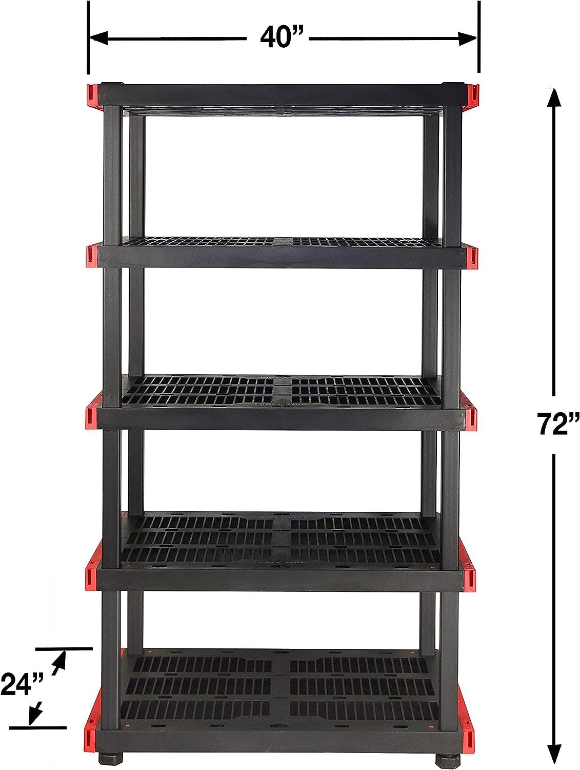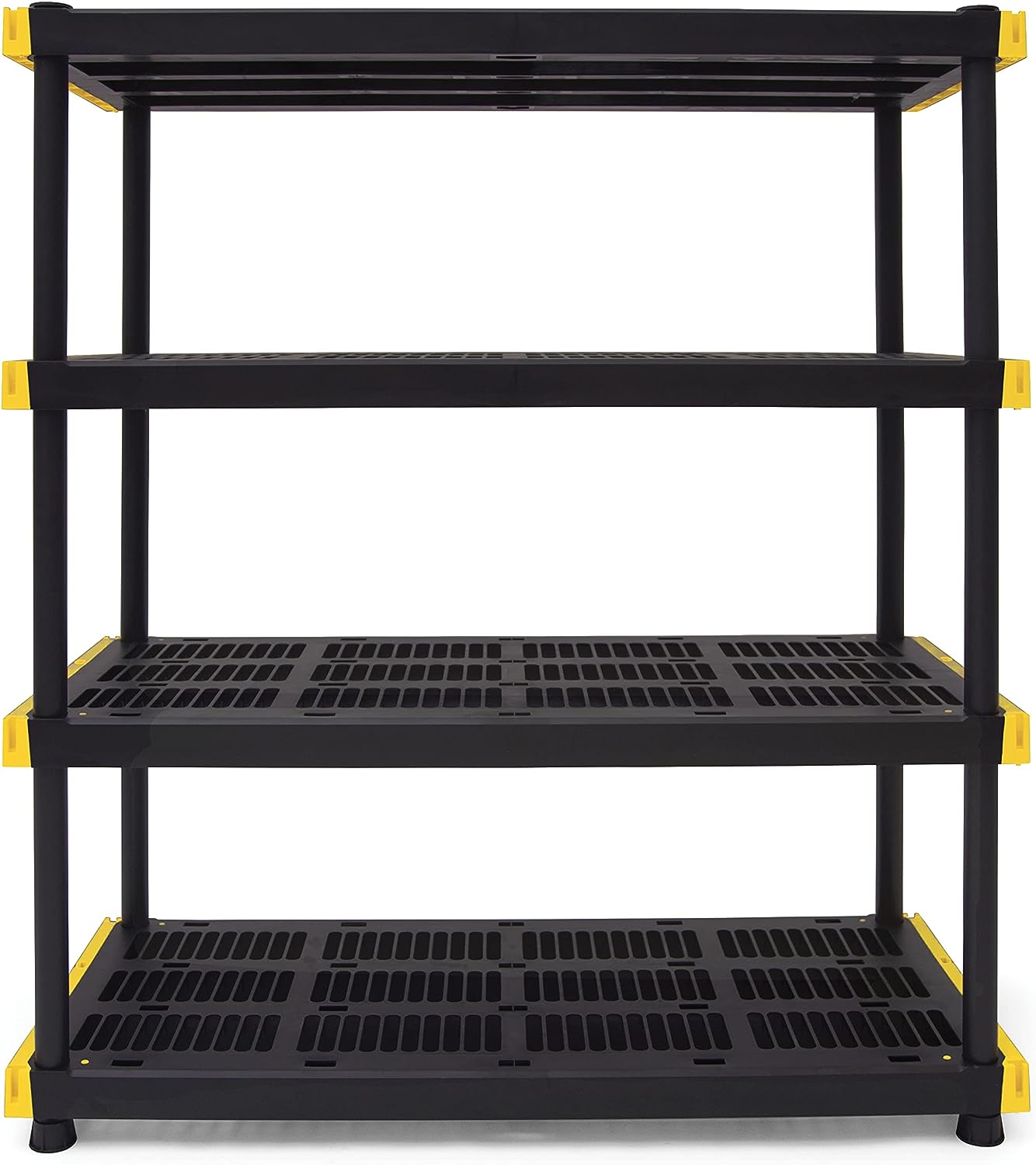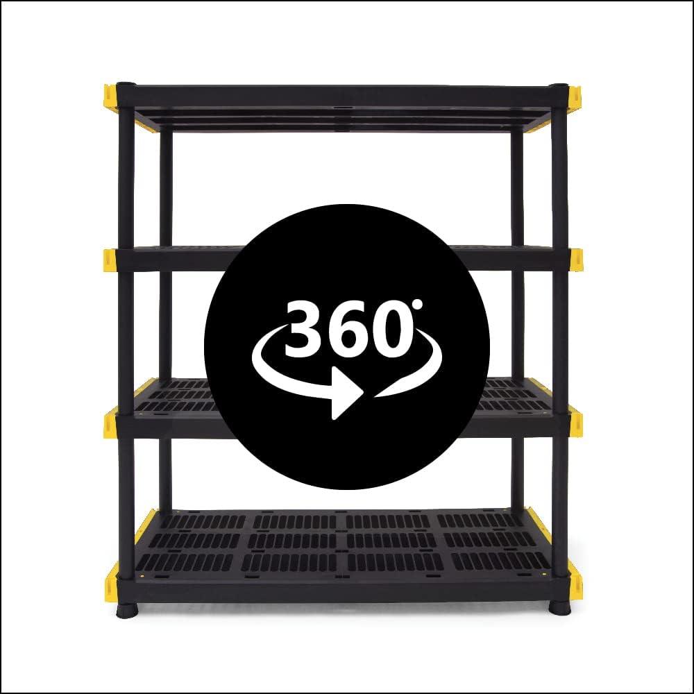 CX Black & Yellow. 4-Tier Heavy Duty Plastic Storage Shelving Unit. 200lbs/shelf (55H x 48W x 20D). for Indoor/Outdoor Organization. Modular Rack
