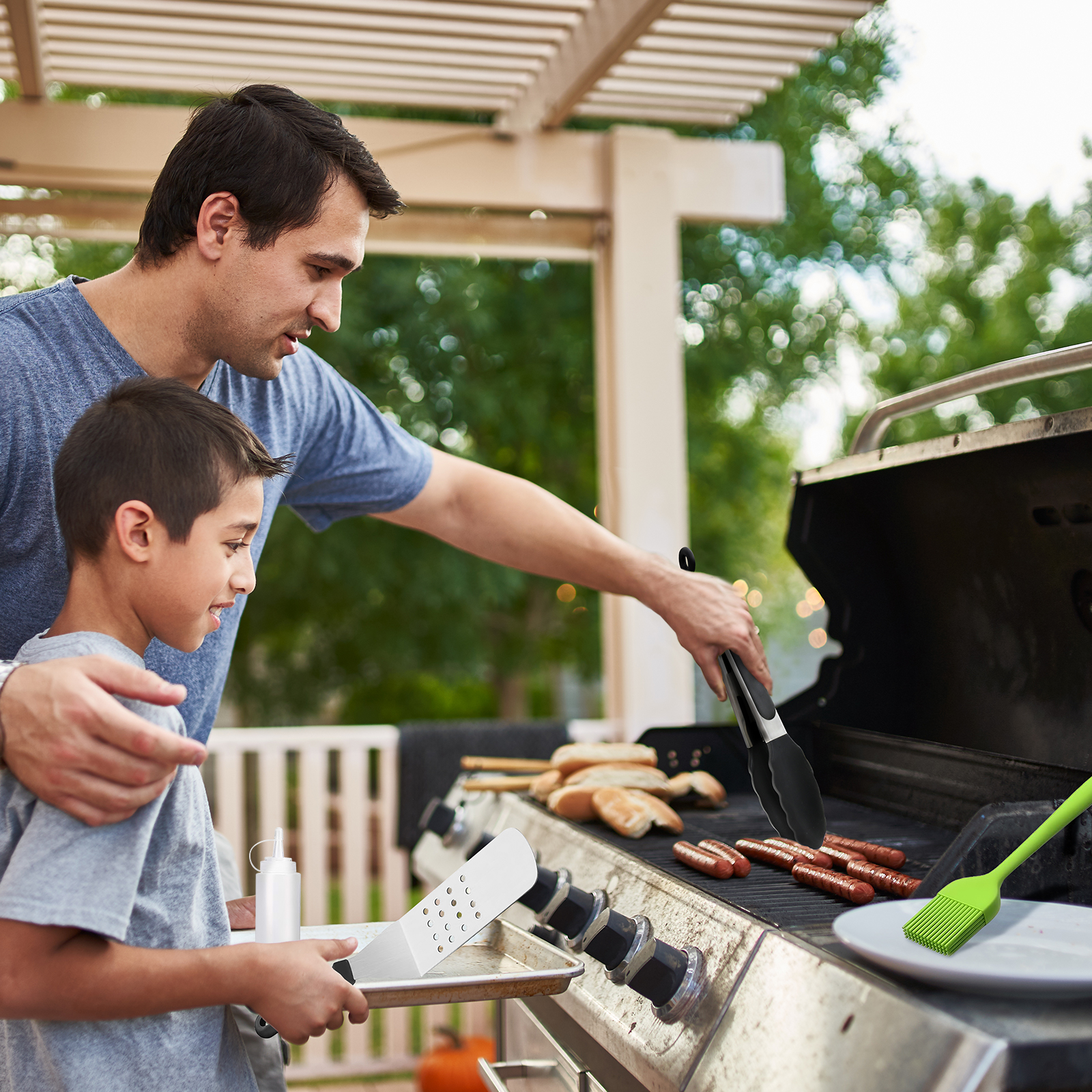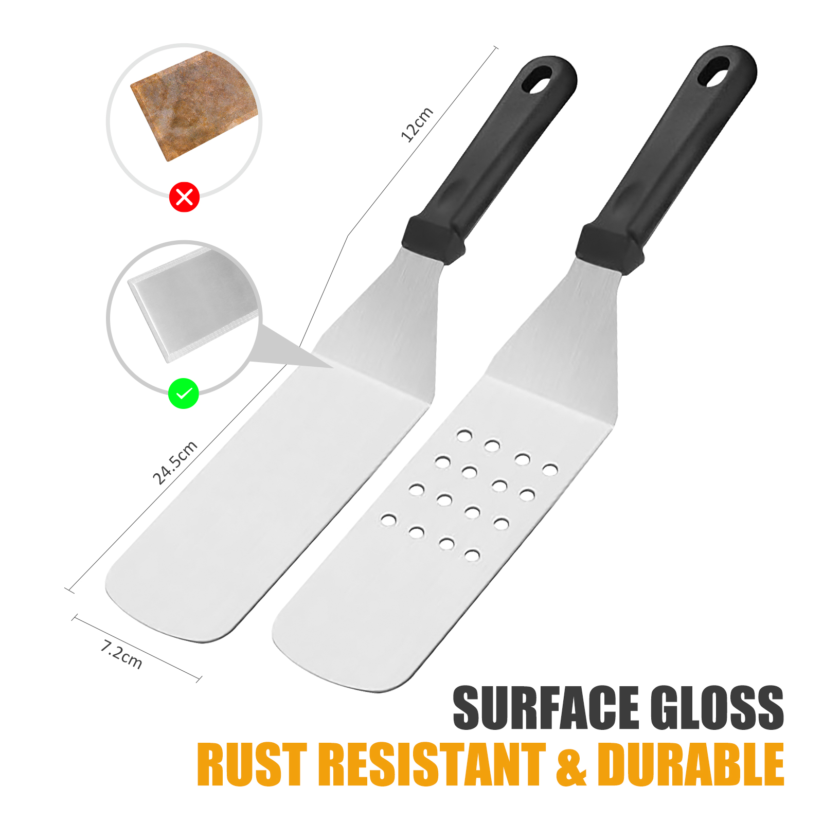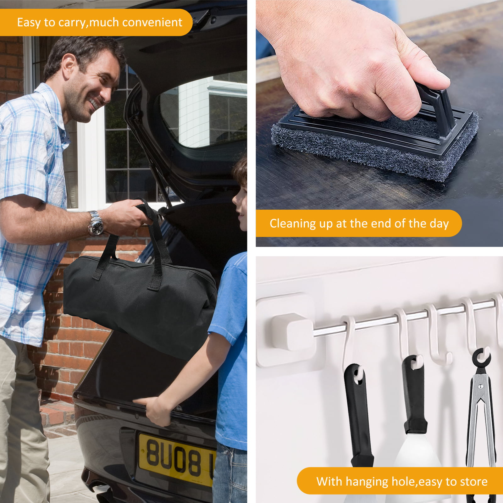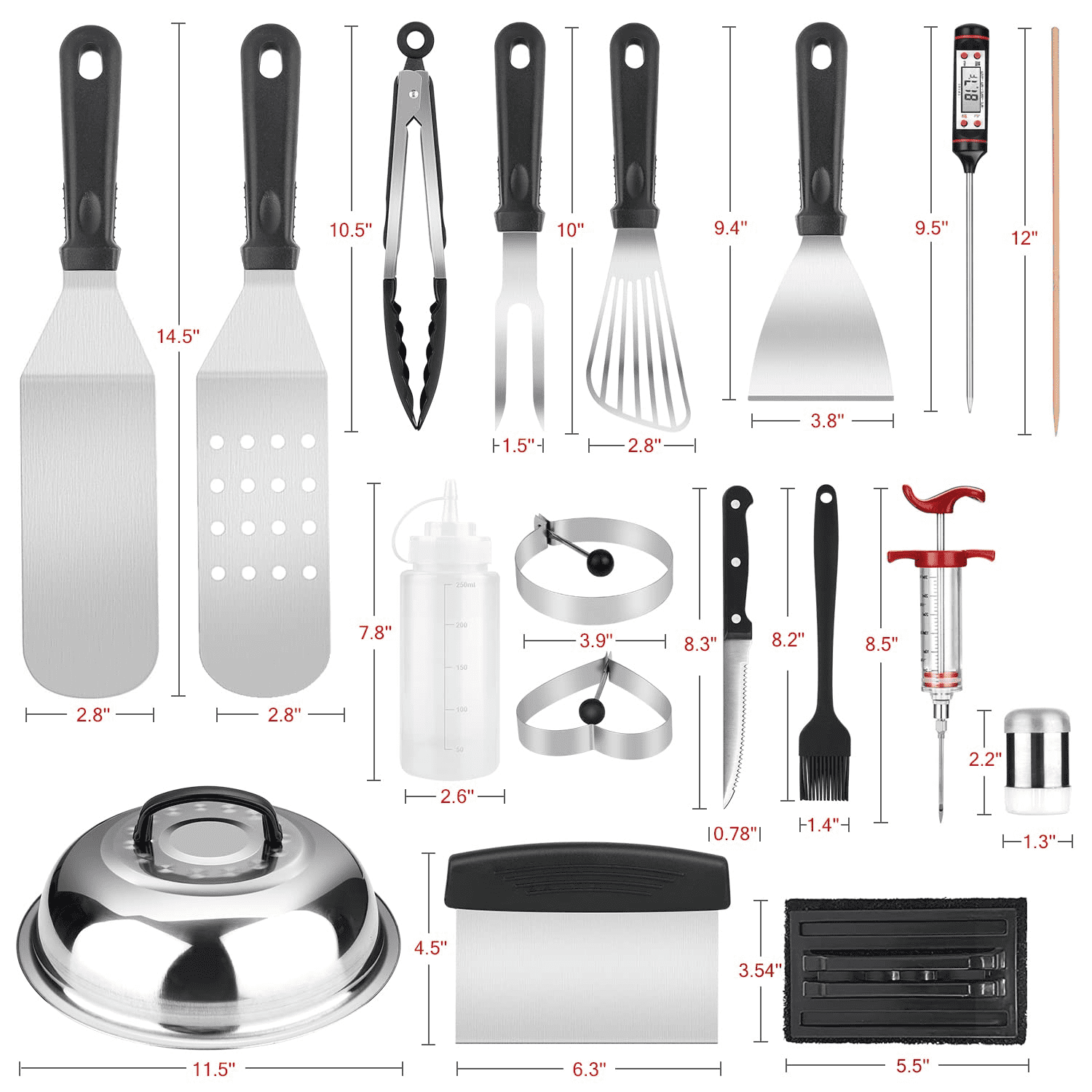 Hosaud BBQ Grill Tool Set. Stainless Steel Grip Barbecue Accessories for Outdoor Camping. Flat Top Griddle Accessories Kit with Spatula. Basting Cover. Scraper. Bottle. Tongs. Egg Rings & Carry Bag