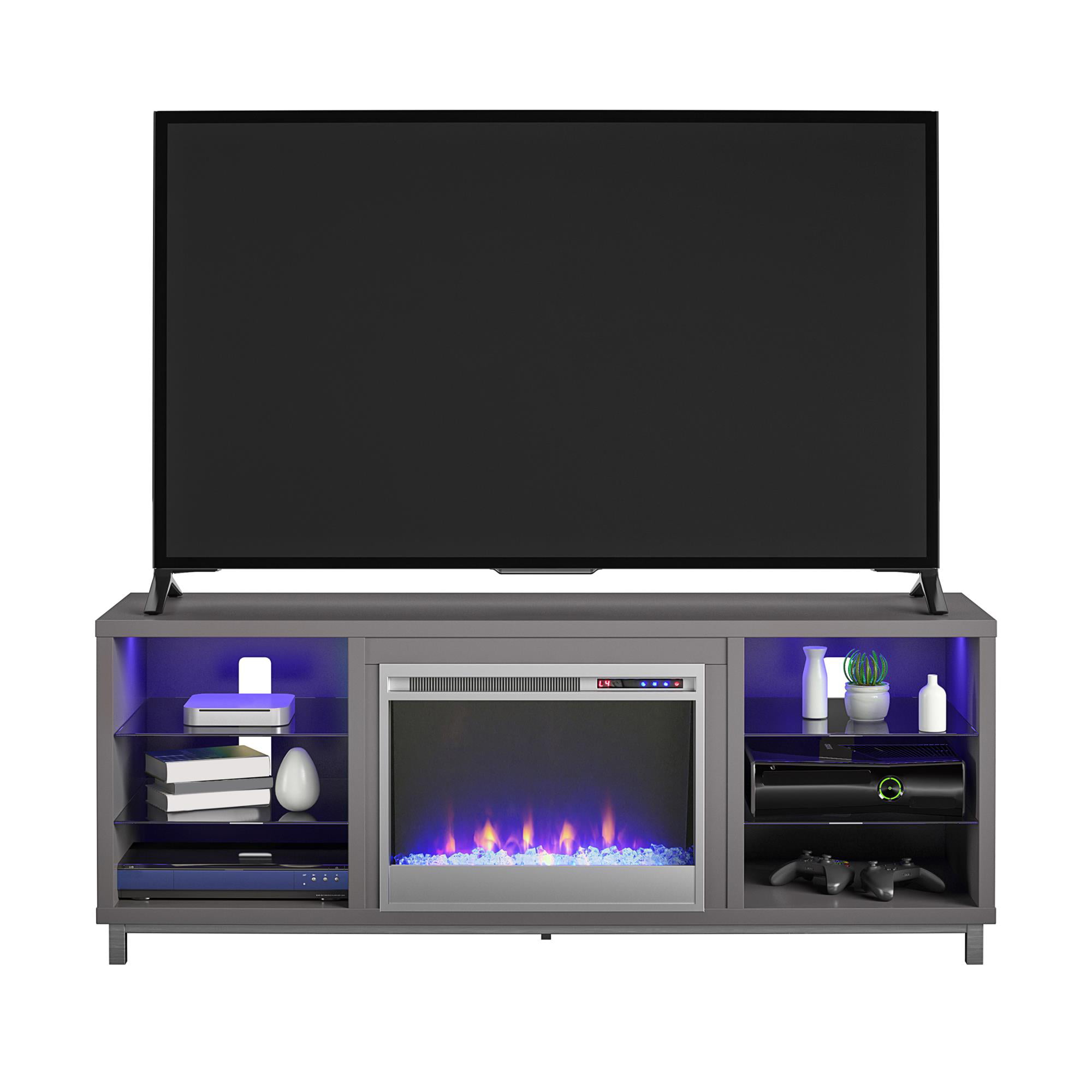 Ameriwood Home Lumina Fireplace TV Stand for TVs up to 70″. Graphite Gray