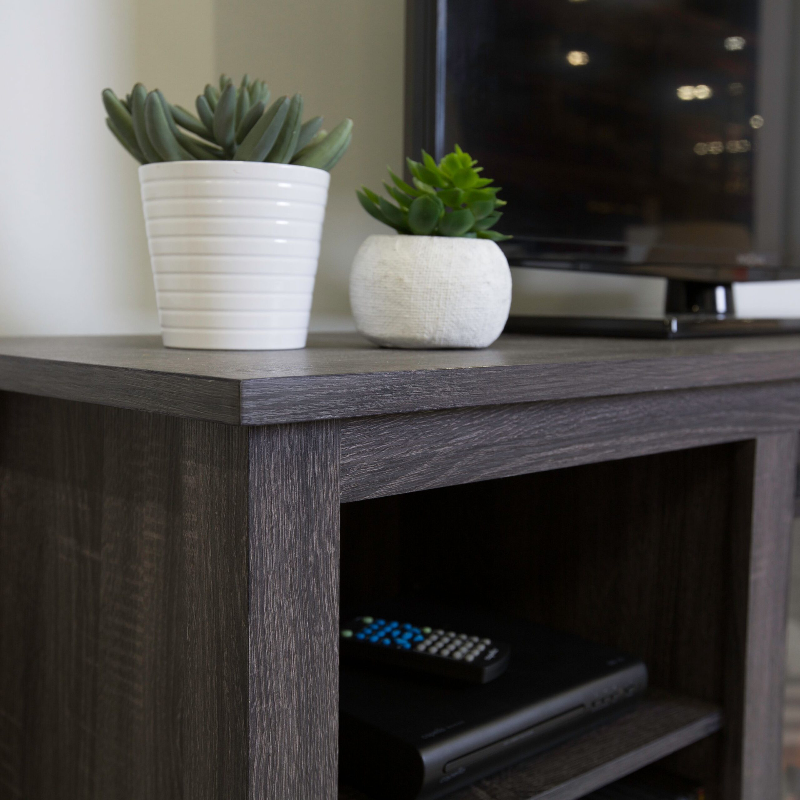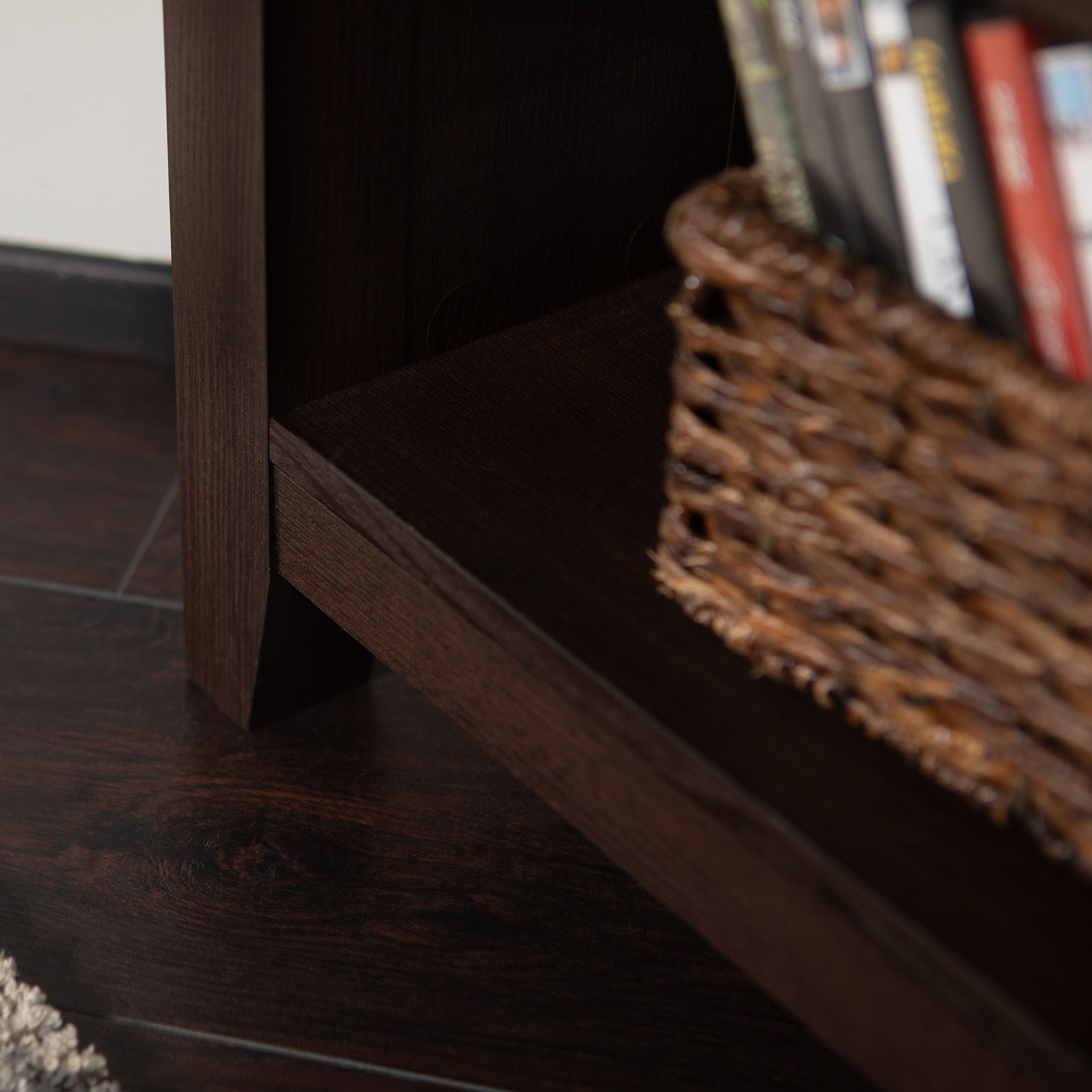 Woven Paths Farmhouse Corner TV Stand for TVs up to 65″. Espresso