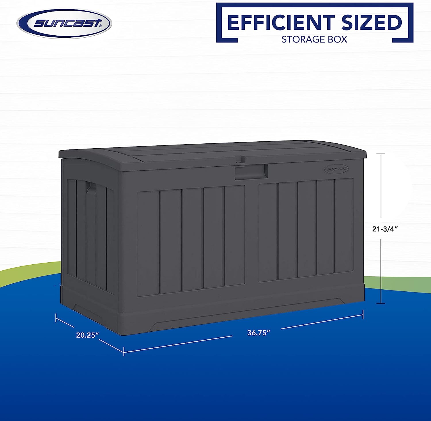 Suncast 50-Gallon Outdoor Resin Patio Deck Storage Box with Seat. Peppercorn