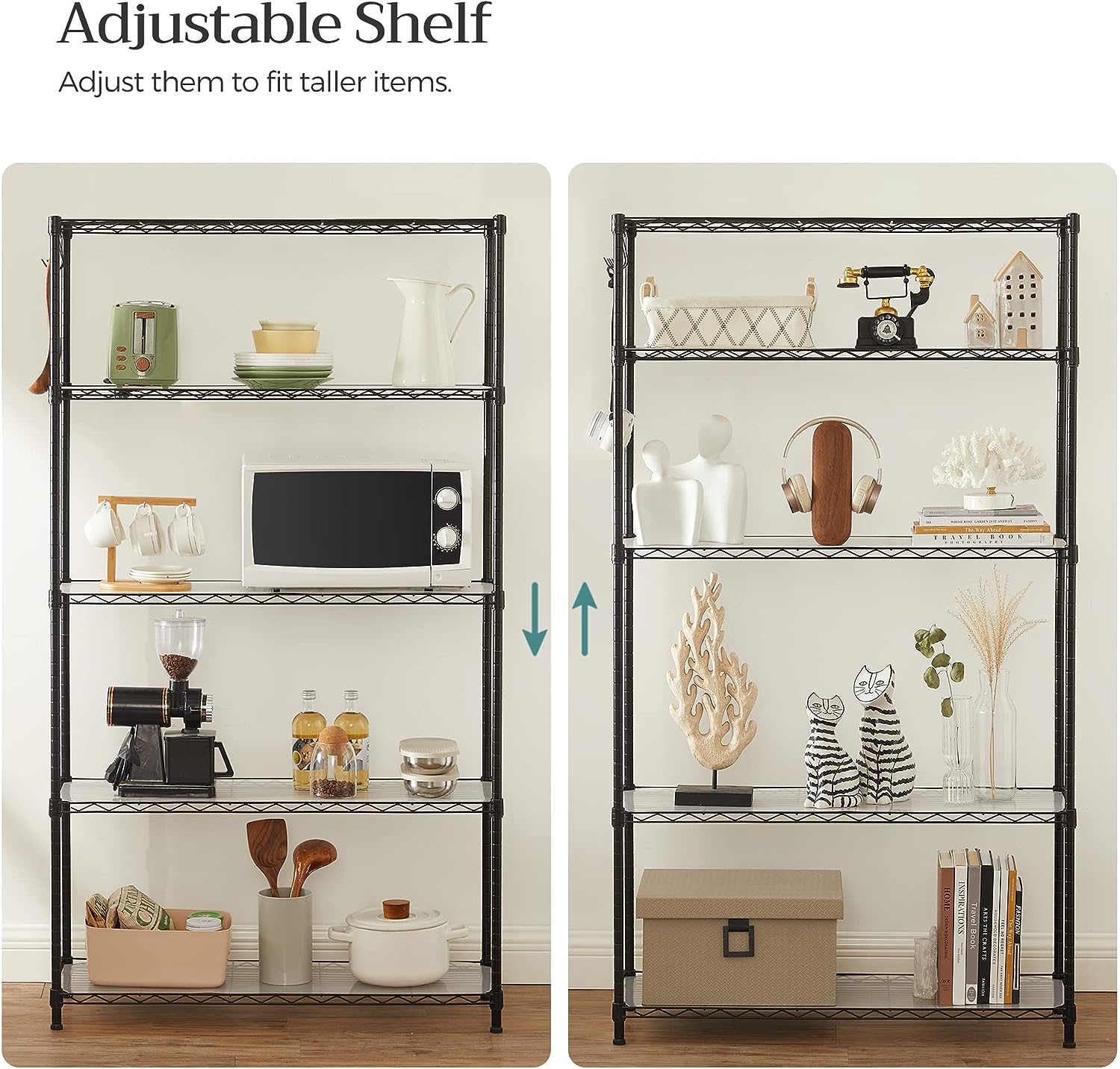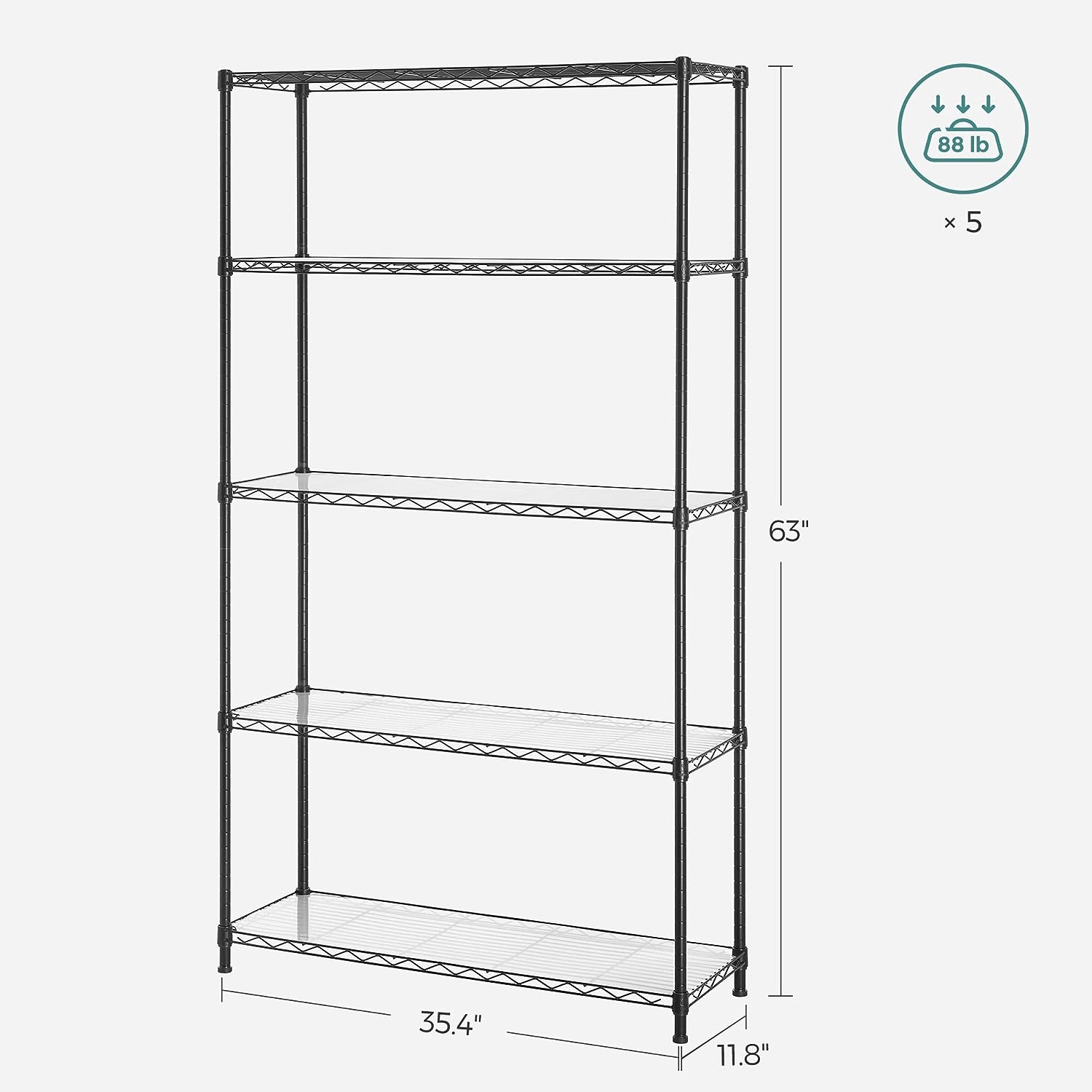 SONGMICS Garage Shelving. 5-Tier Wire Shelving Unit. Kitchen Storage Rack with Adjustable Shelves. Shelf Liners. 8 Hooks. Total Max. Load 440 lb. for Living Room. Garage. Black ULGR095B01