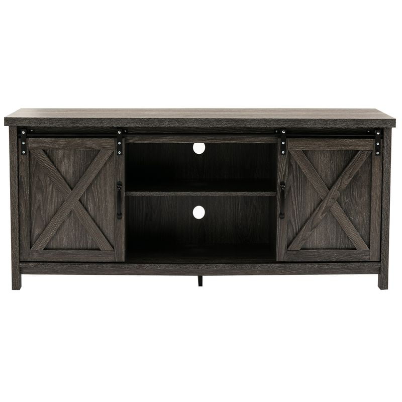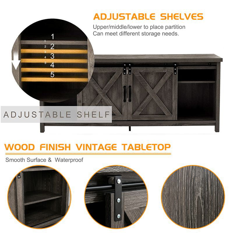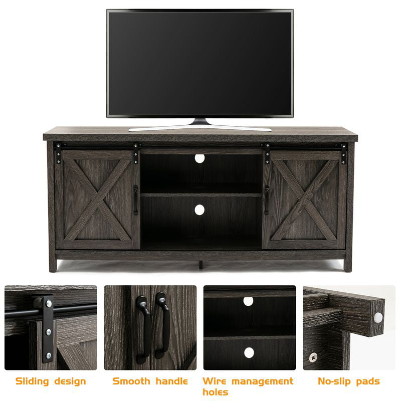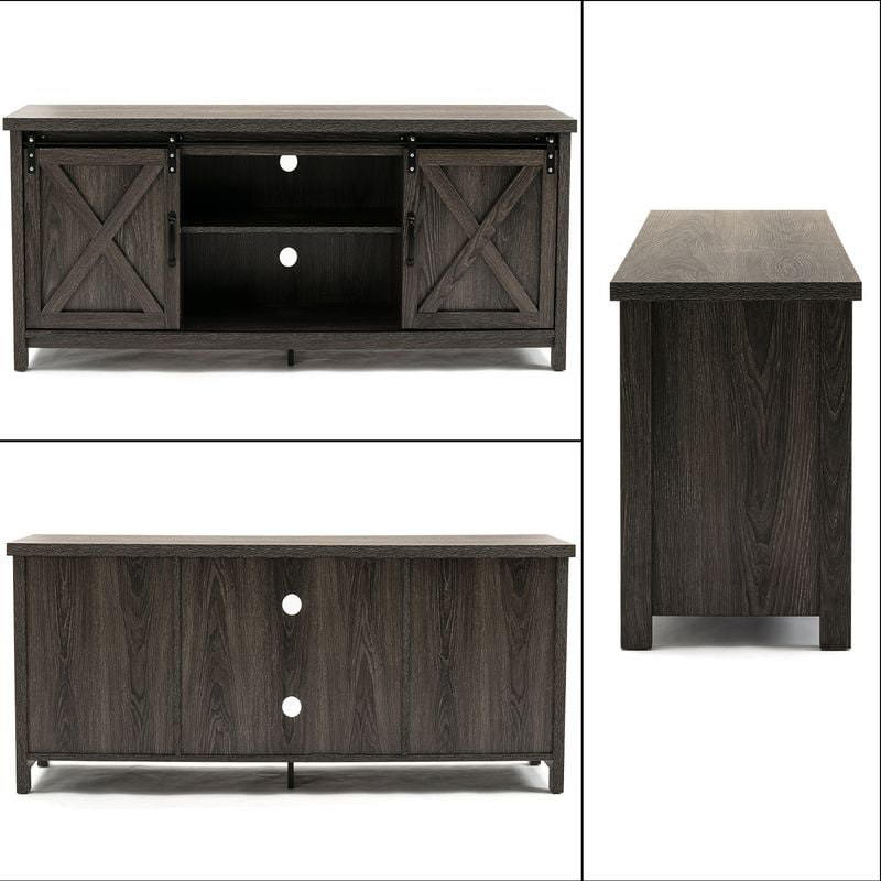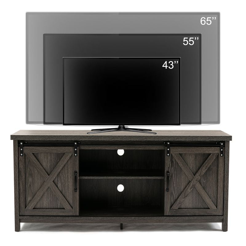 Yaoping 58″ Farmhouse Sliding Barn Door TV Stand for TVs up to 65″ Television Cabinet(Dark gray). Wood. Metal