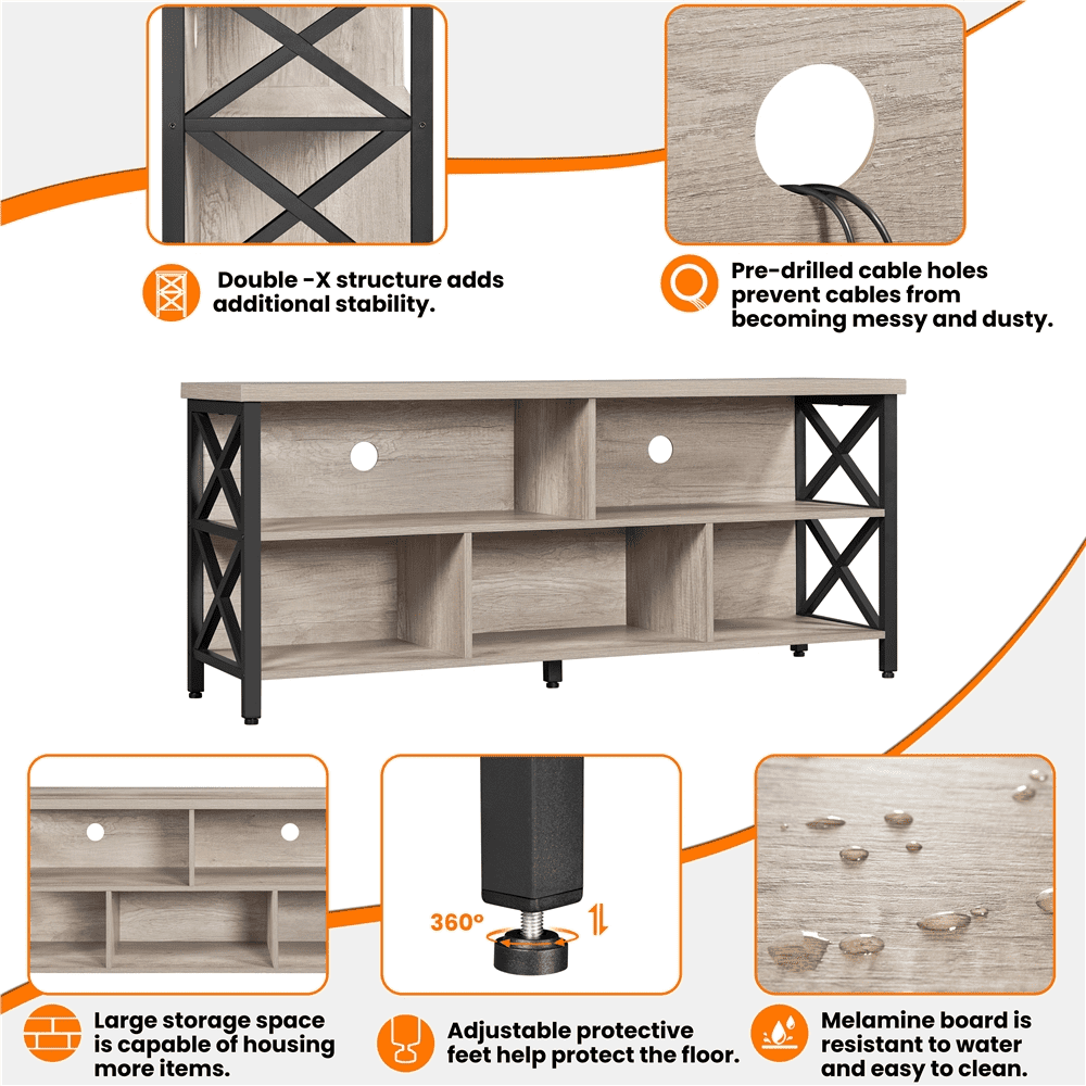 SmileMart Modern Industrial TV Stand for TVs up to 65 Inch with Storage. Gray