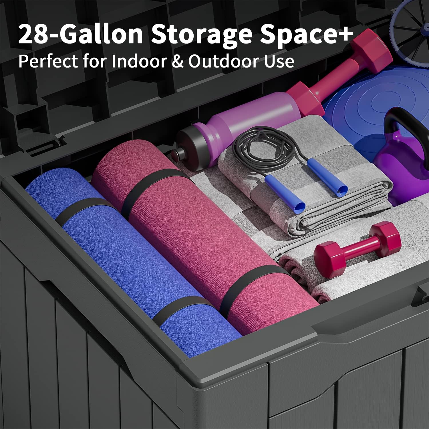 Greesum 31 Gallon Resin Deck Box Large Outdoor Storage for Patio Furniture. Garden Tools. Pool Supplies. Weatherproof and UV Resistant. Lockable. Dark Grey