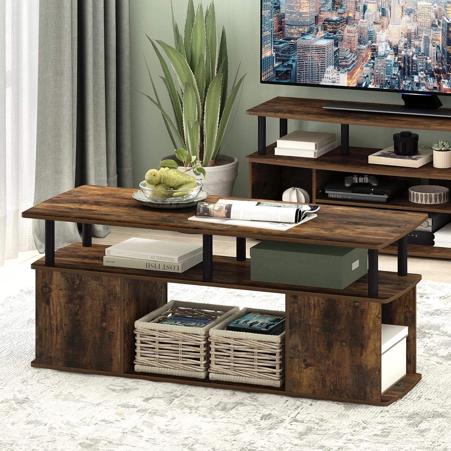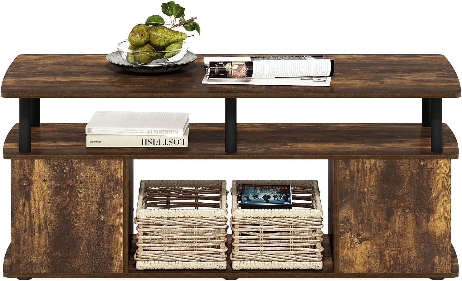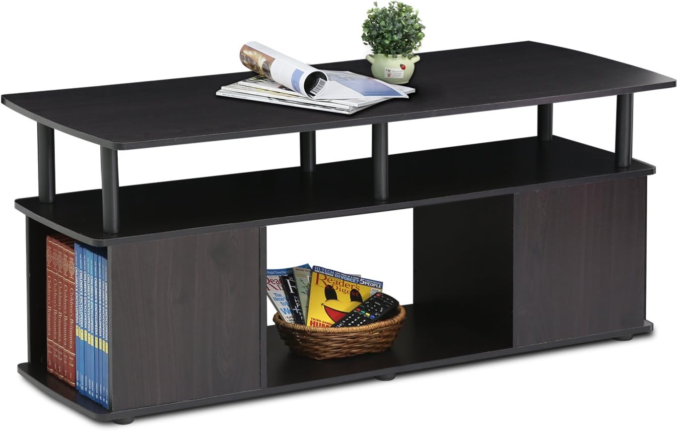 Furinno JAYA Utility Design Coffee Table / TV Stand for TV up to 55 Inch with Open Storage. Blackwood