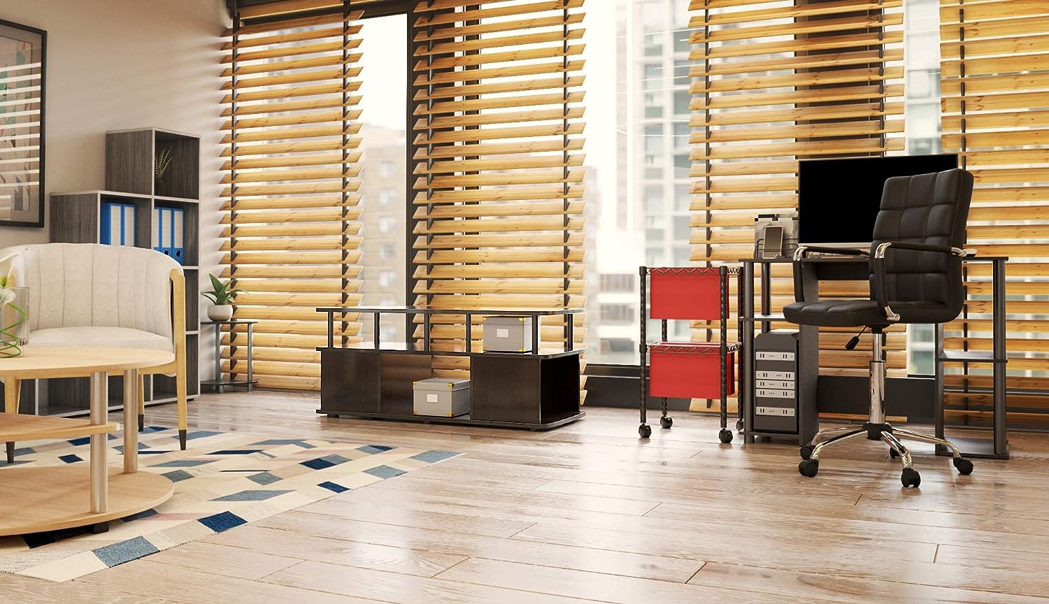 Woven Paths Modern Farmhouse Corner TV Stand for TVs up to 48″. Espresso
