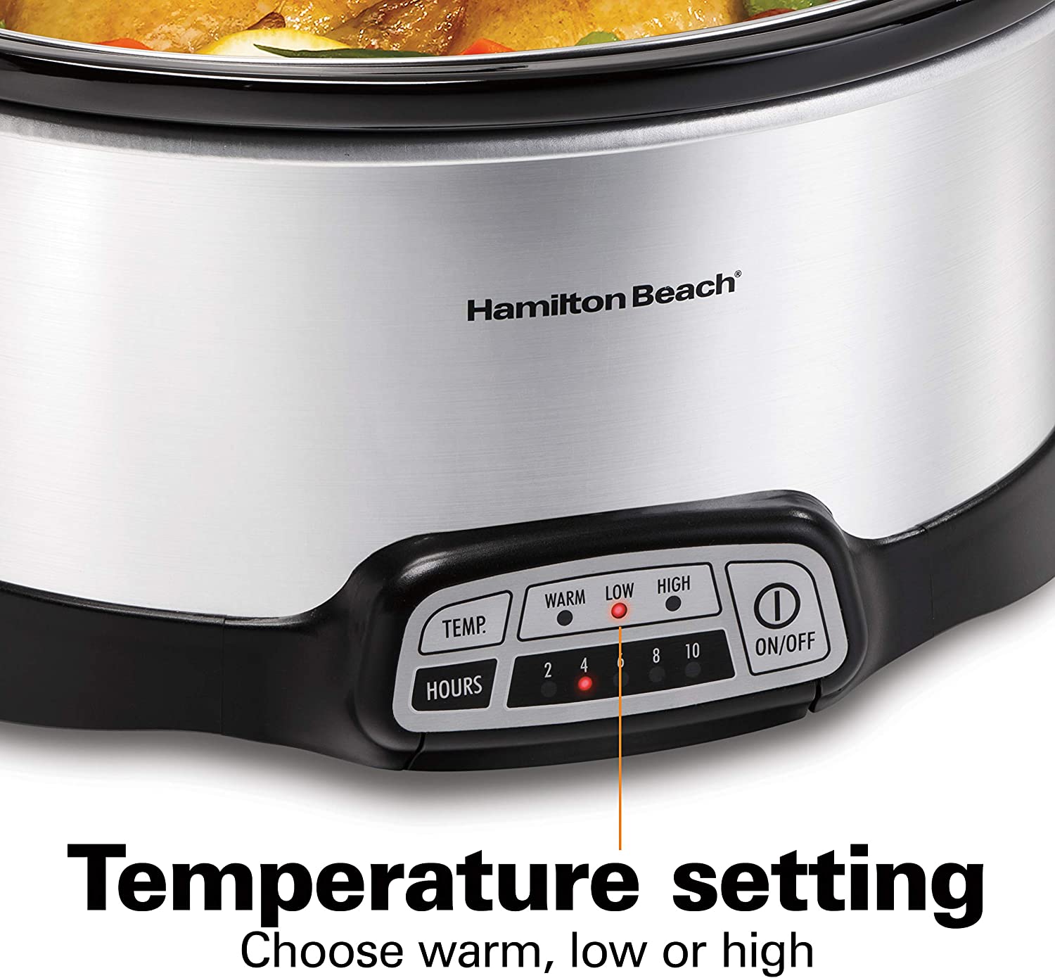 Hamilton Beach Programmable Slow Cooker with Flexible Easy Programming. 5 Cooking Times. Dishwasher-Safe Crock. Lid. 7 Quart. Silver