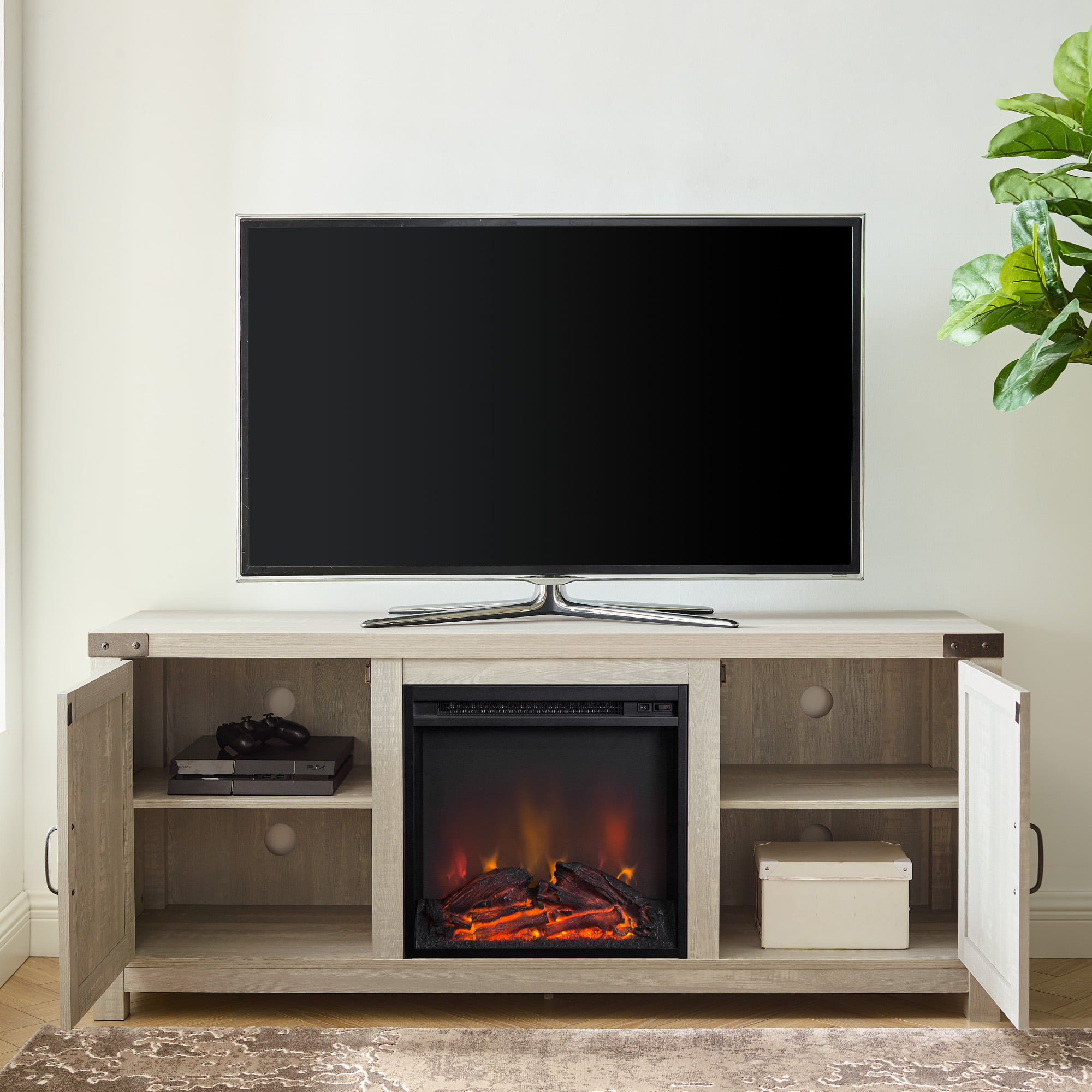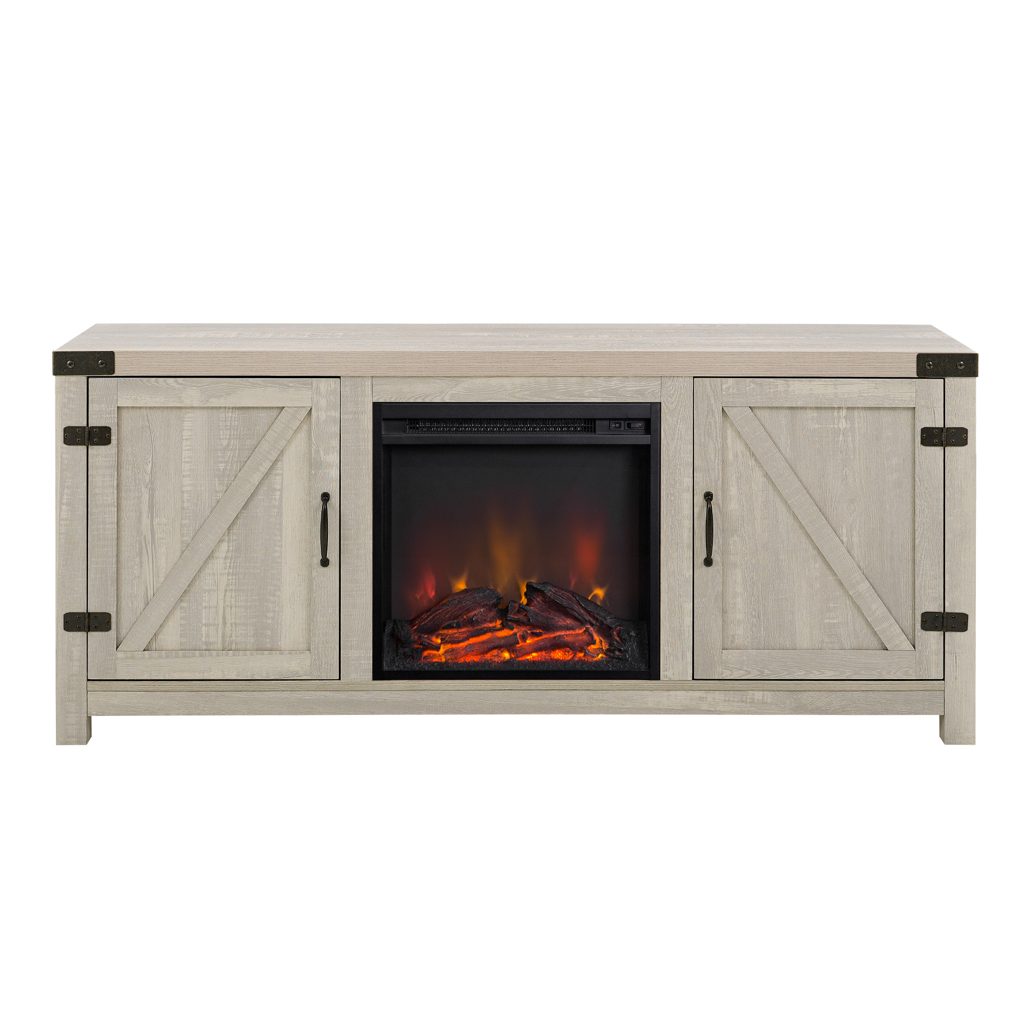 Woven Paths Modern Farmhouse Fireplace TV Stand for TVs up to 65″. White Oak