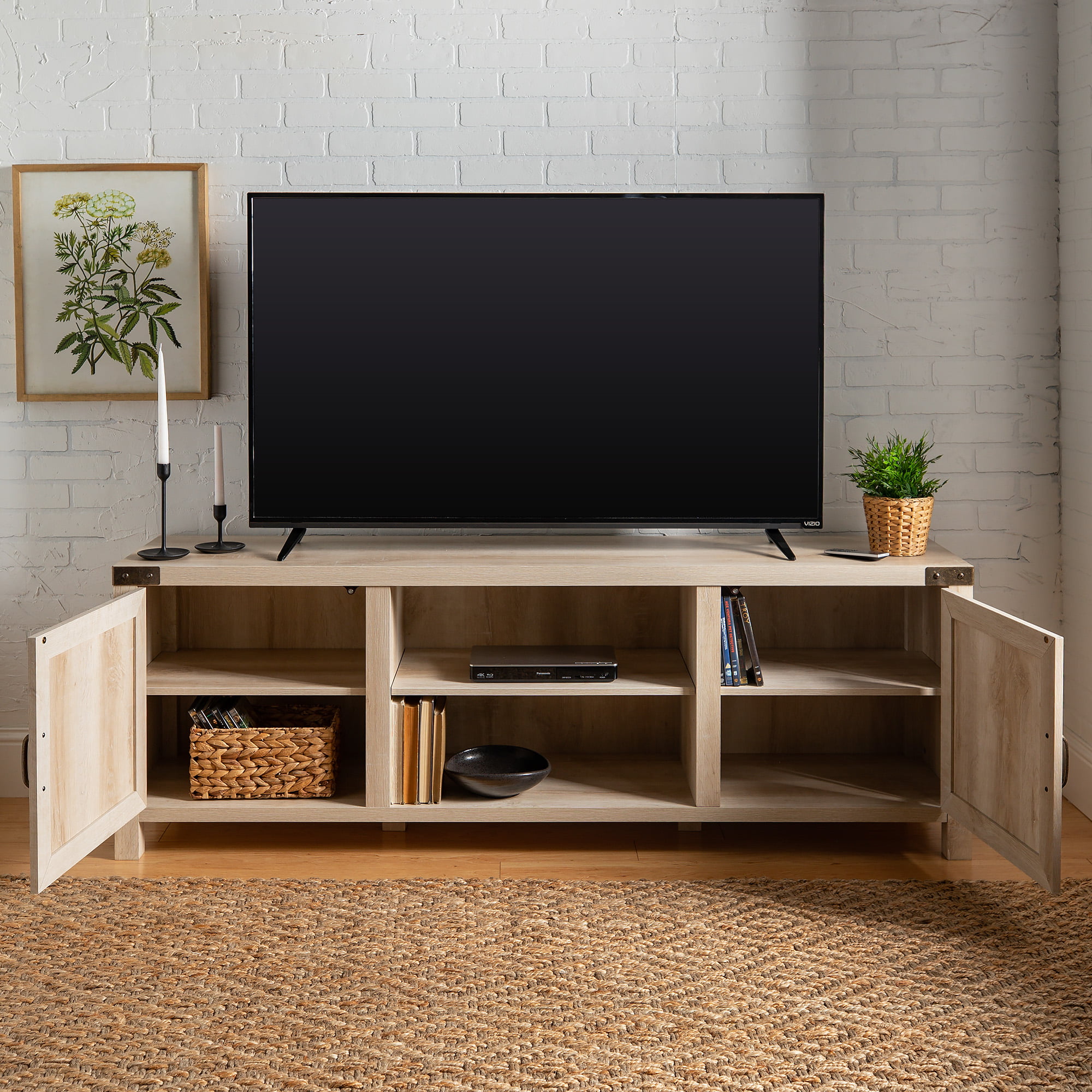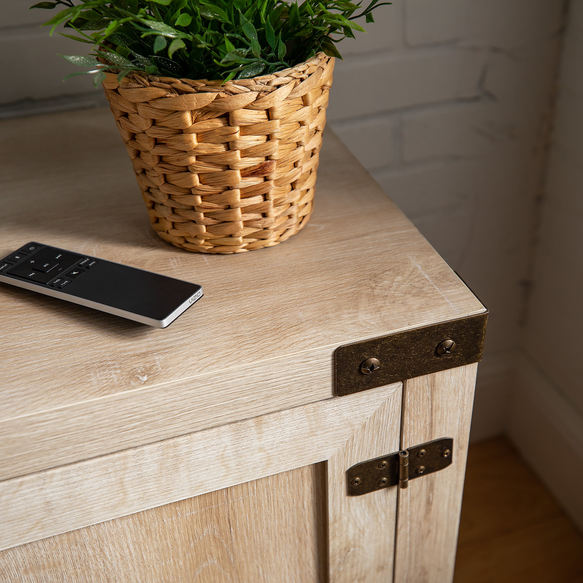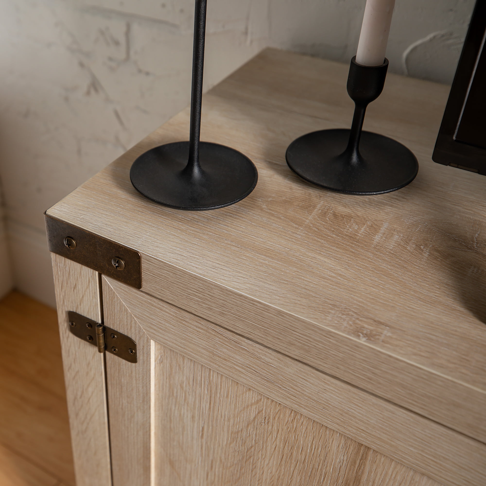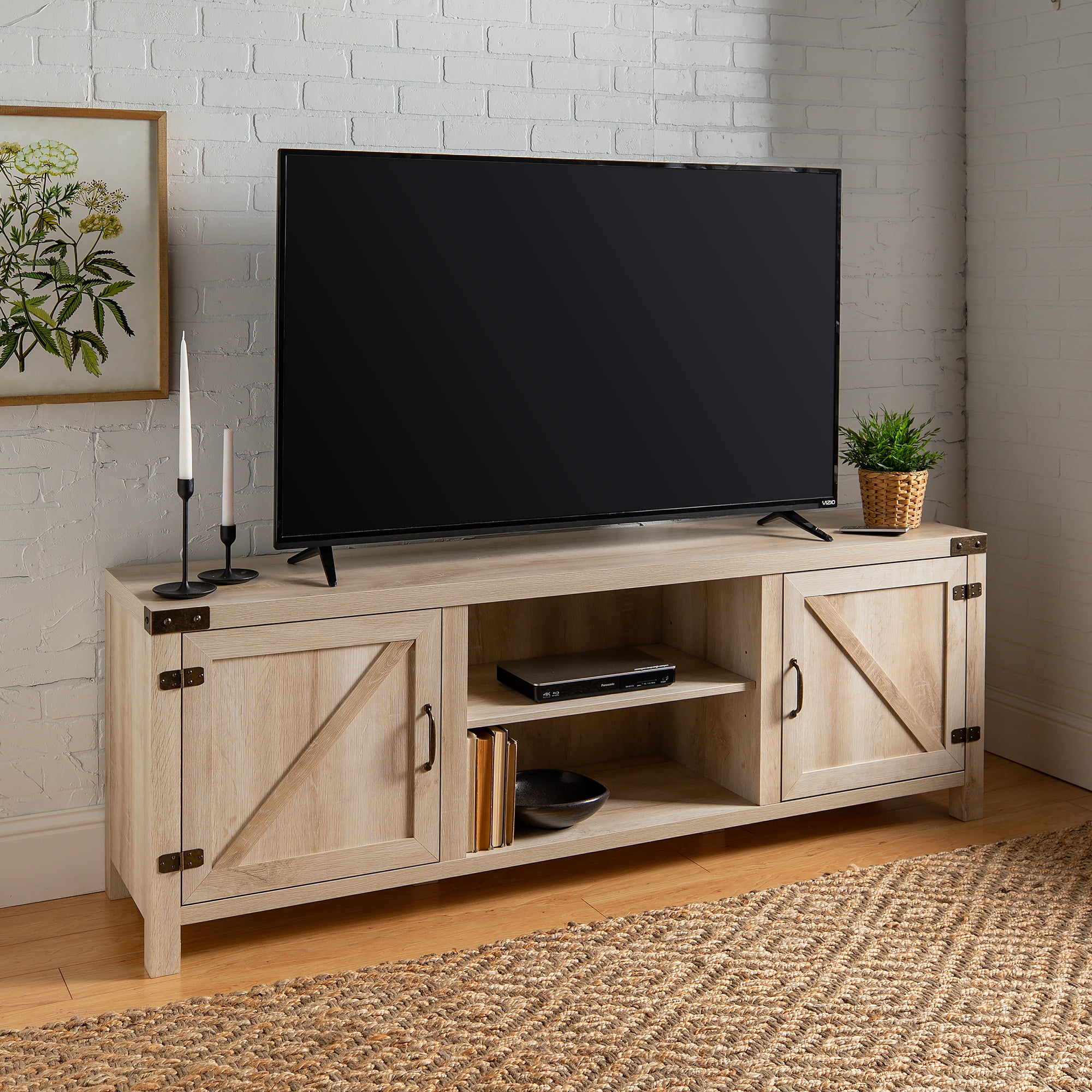 Woven Paths Farmhouse Barn Door TV Stand for TVs up to 80″. White Oak