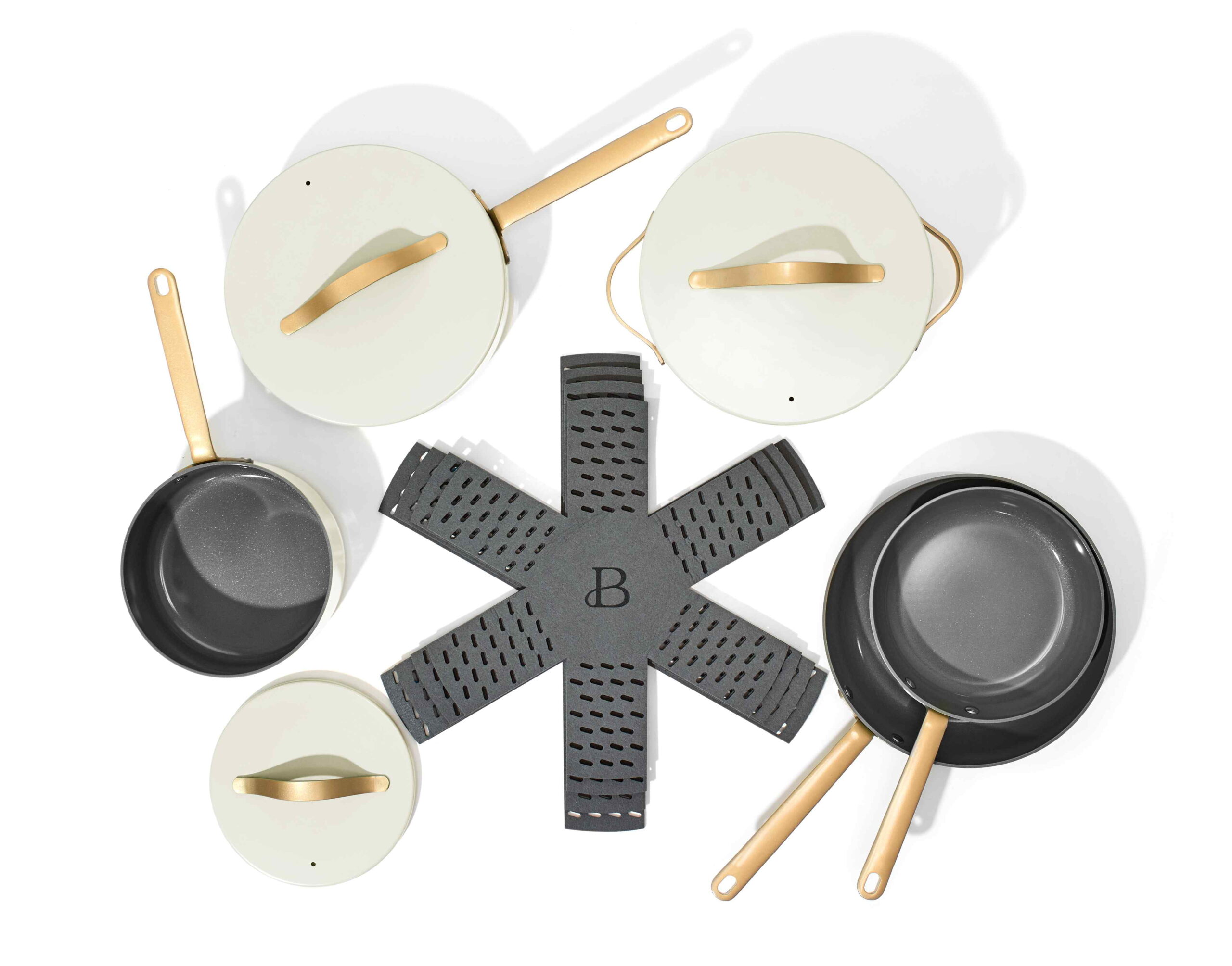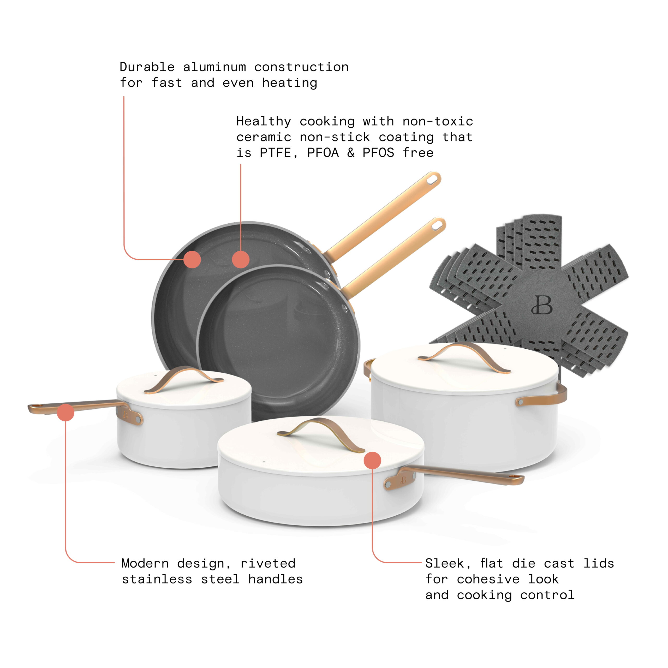 Beautiful 12pc Ceramic Non-Stick Cookware Set. White Icing. by Drew Barrymore