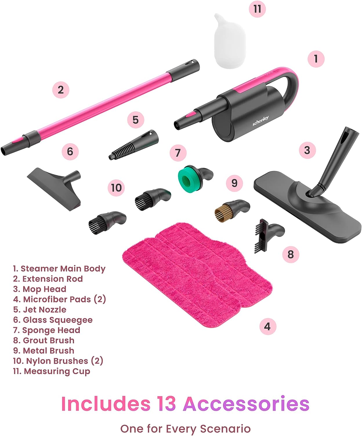 Schenley Steam Mop Cleaner with Detachable Handheld Steamer for Cleaning Hardwood/Laminate Floor. Tiles and Grout. with 7-in-1 Multi-purpose Accessories and Washable Microfiber Pads