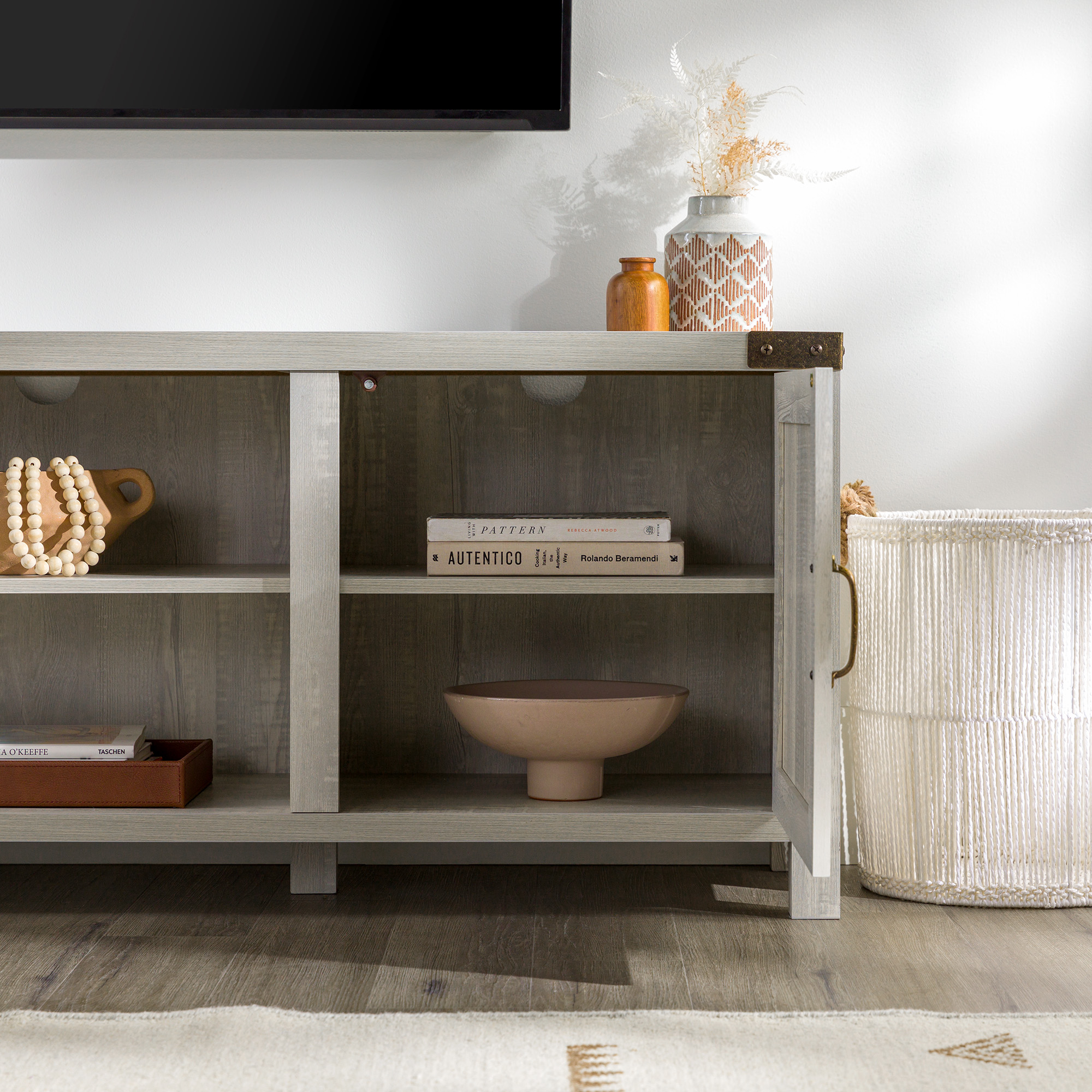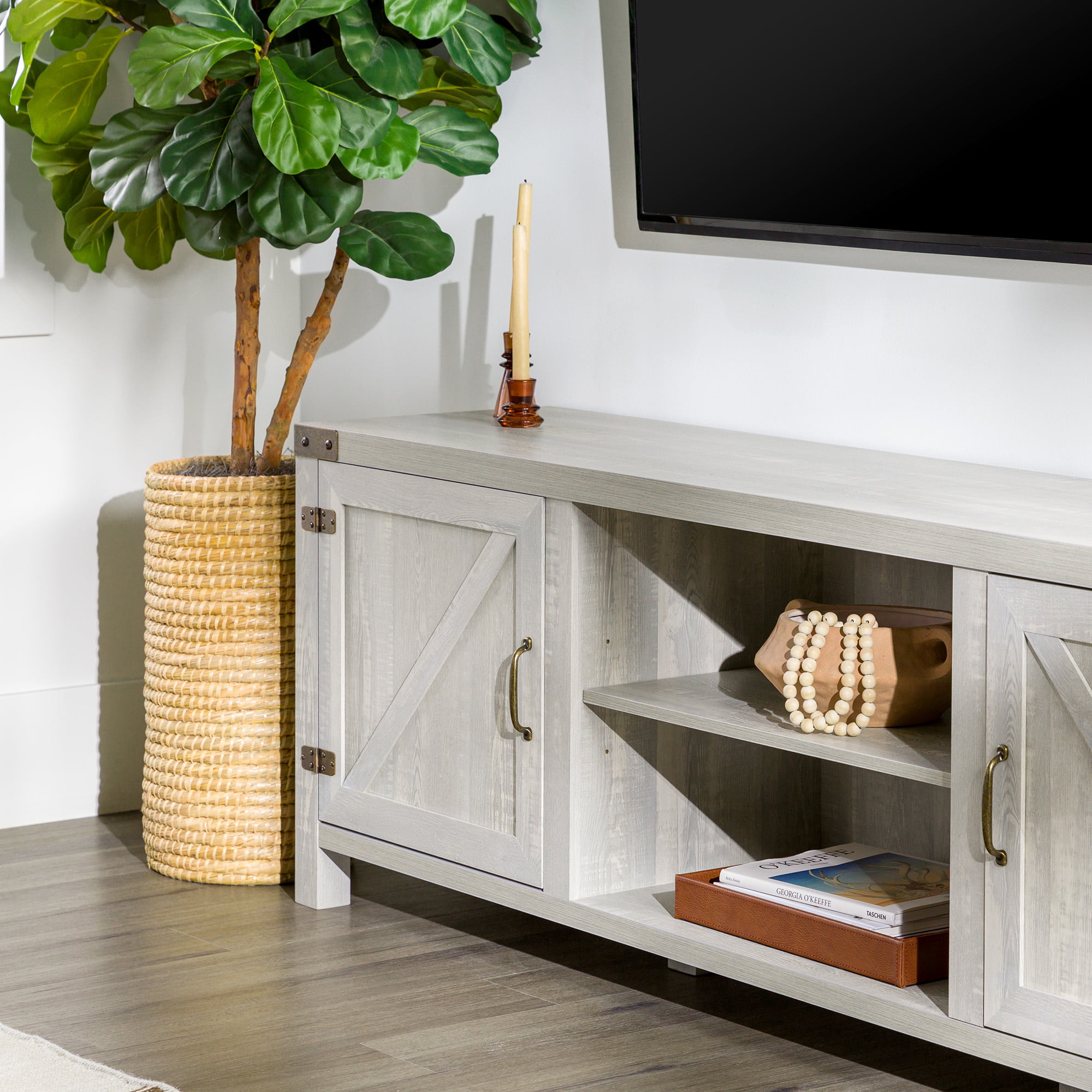 Woven Paths Farmhouse Barn Door TV Stand for TVs up to 80″. Stone Grey