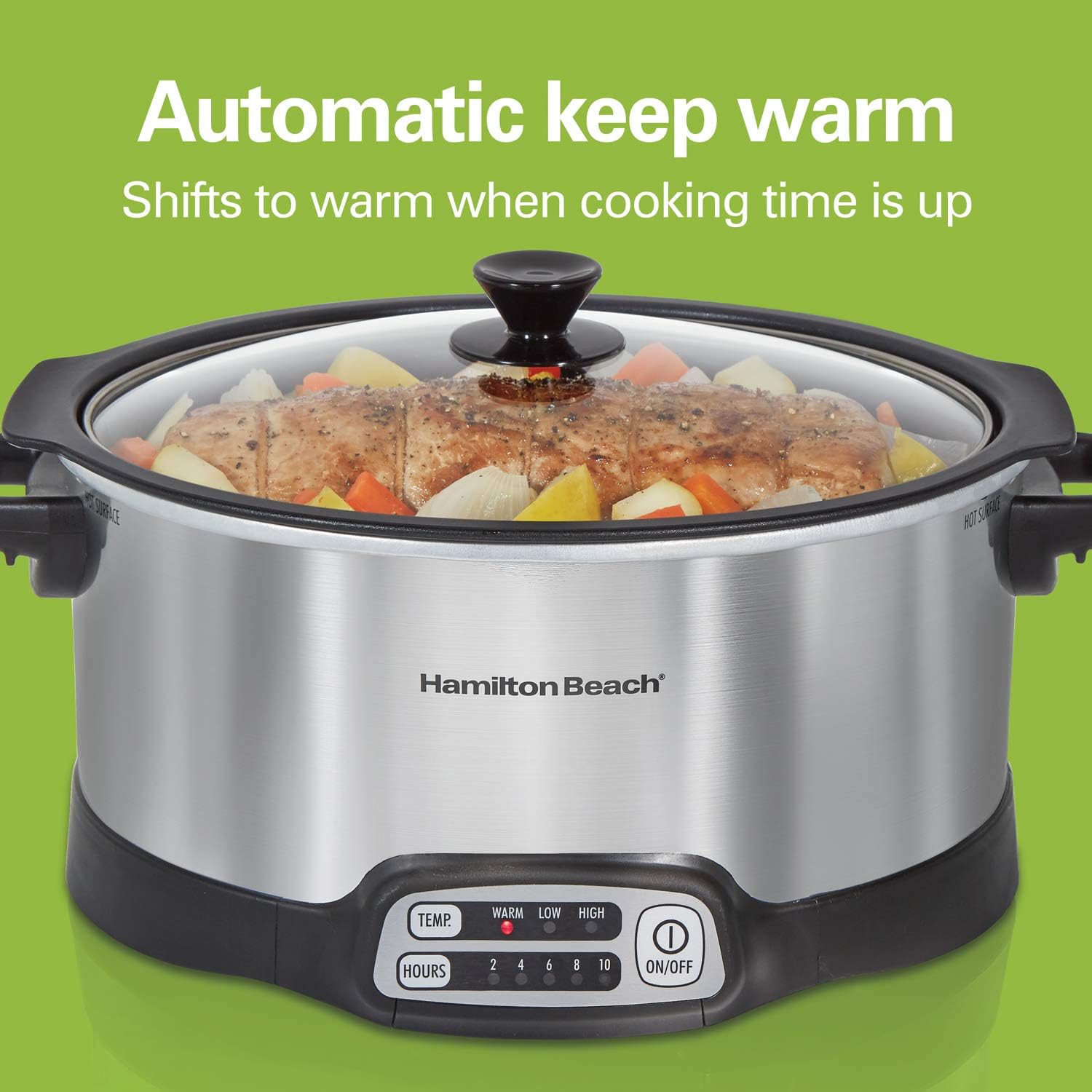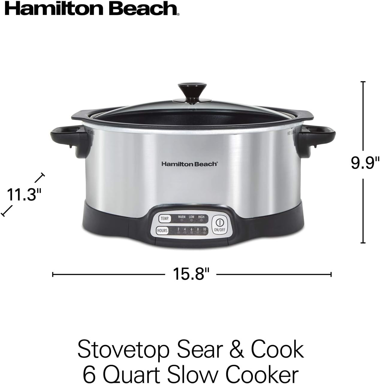 Hamilton Beach 33662 Programmable Slow Cooker with 6 Quart Stovetop-Safe Sear & Cook Crock. Silver