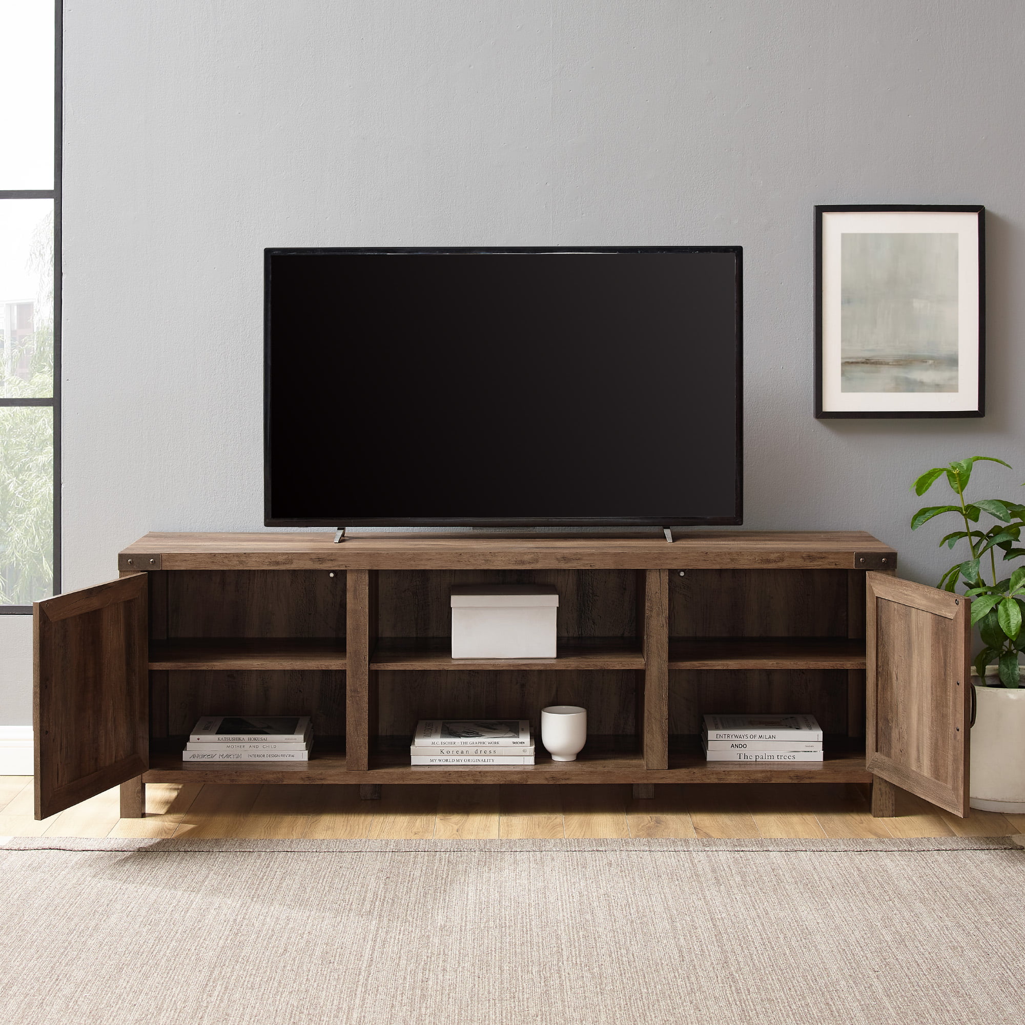 Woven Paths Farmhouse Barn Door TV Stand for TVs up to 80″. Reclaimed Barnwood
