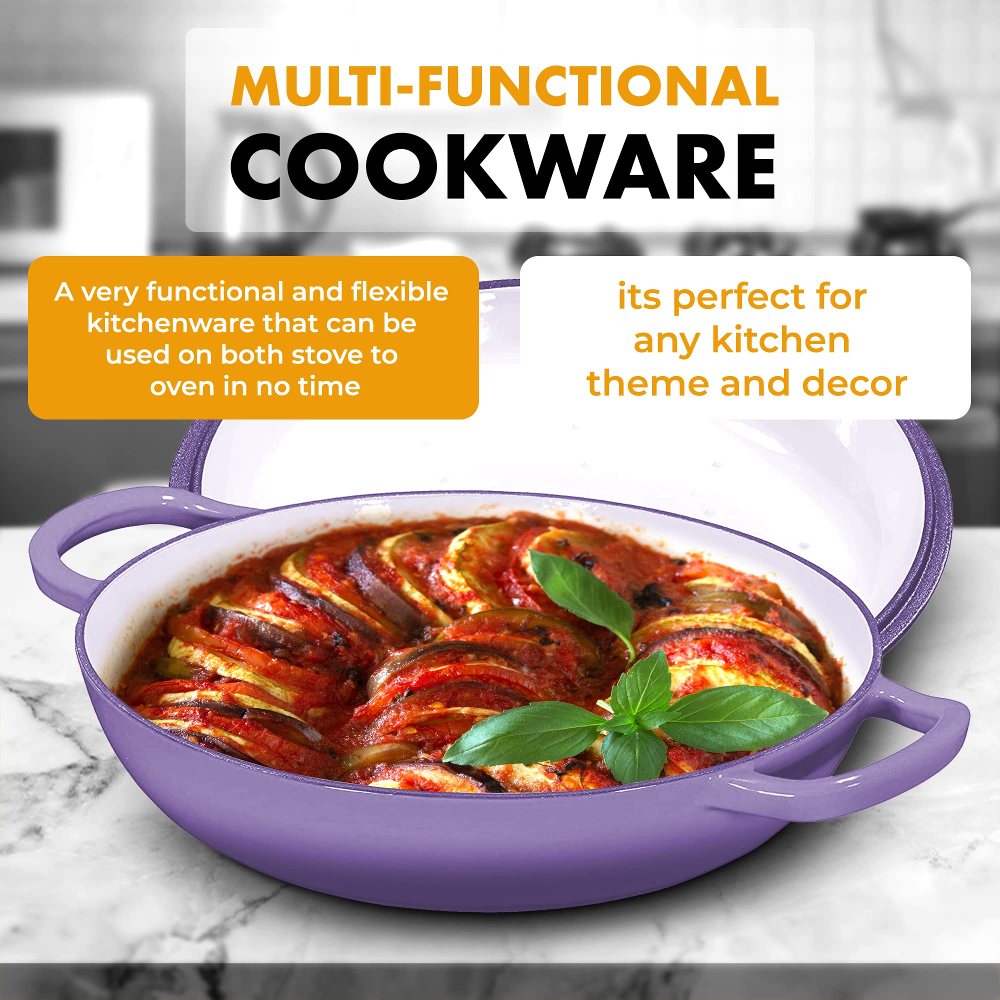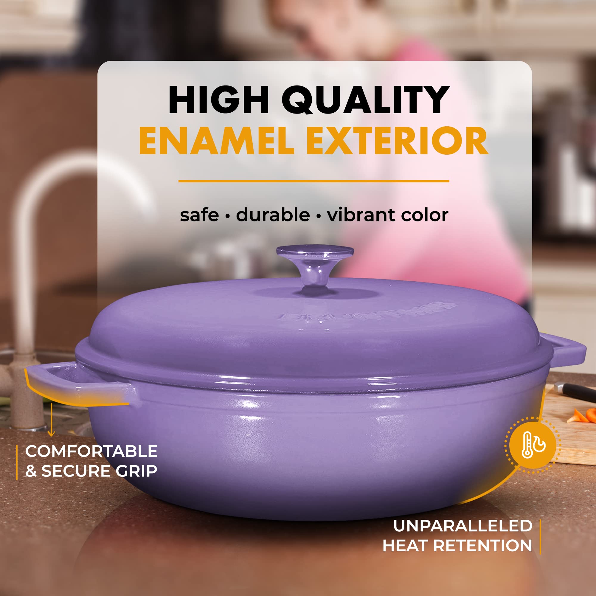 Bruntmor Enameled Cast Iron Dutch Oven with Lid and Stainless Steel Knob - 4.5-Quart