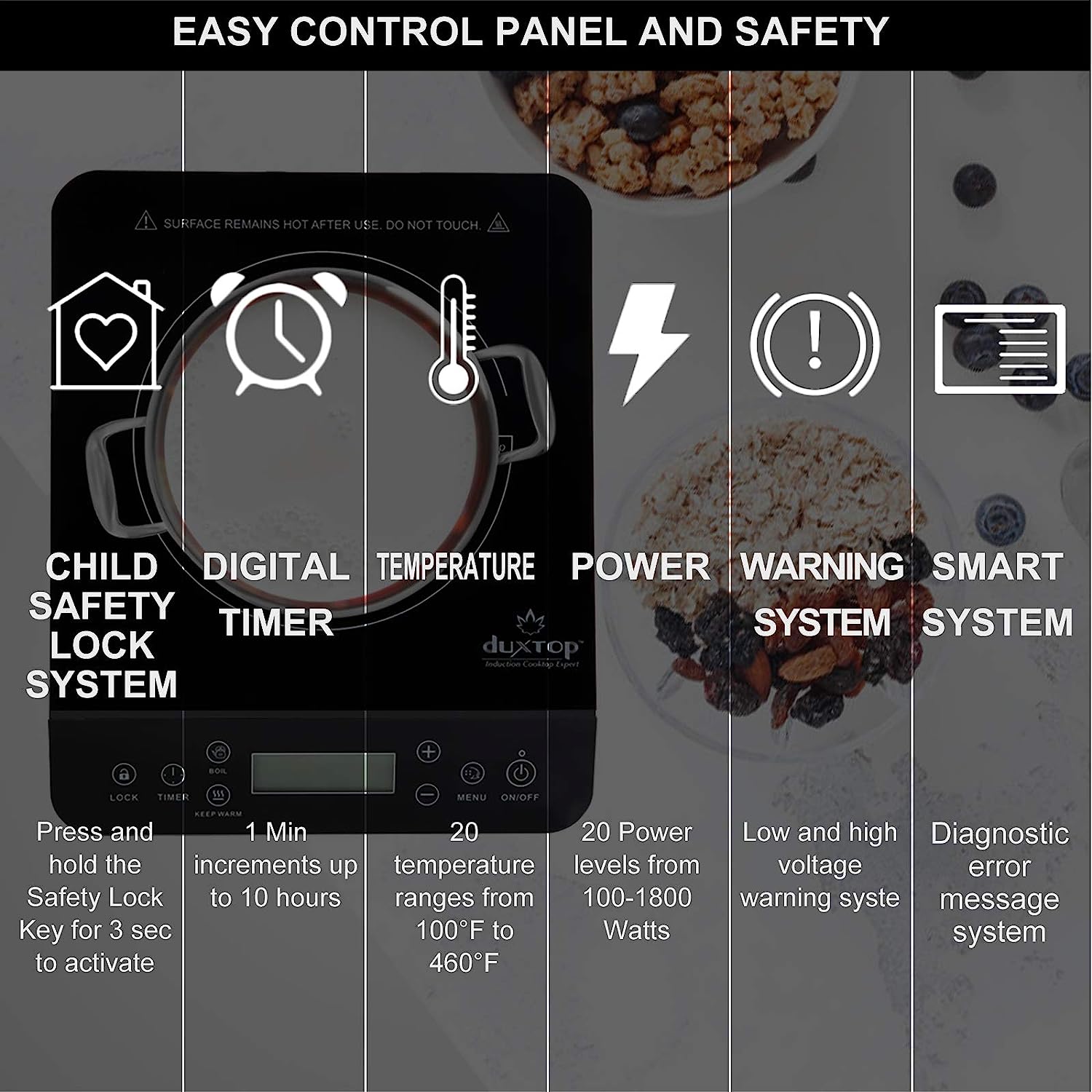 Duxtop Portable Induction Cooktop. Countertop Burner Induction Hot Plate with LCD Sensor Touch 1800 Watts. Black 9610LS BT-200DZ