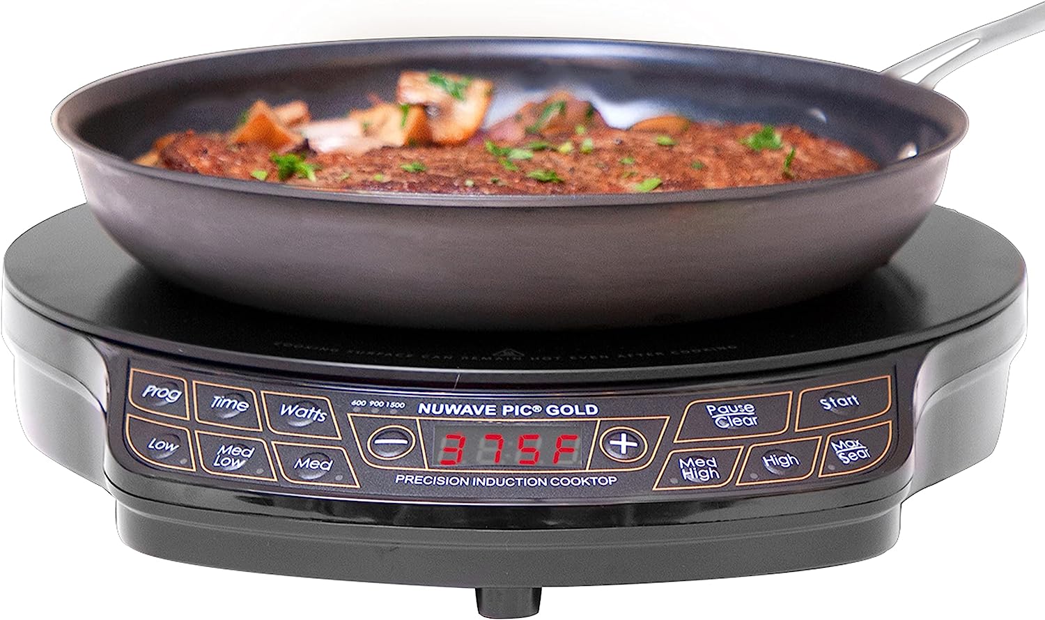 Nuwave Gold Precision Induction Cooktop. Portable. Powerful Large 8 Heating Coil. 12 Shatter-Proof. Heat-Resistant Ceramic Glass Surface. 10.5 Duralon Healthy Ceramic Non-Stick Fry Pan Included