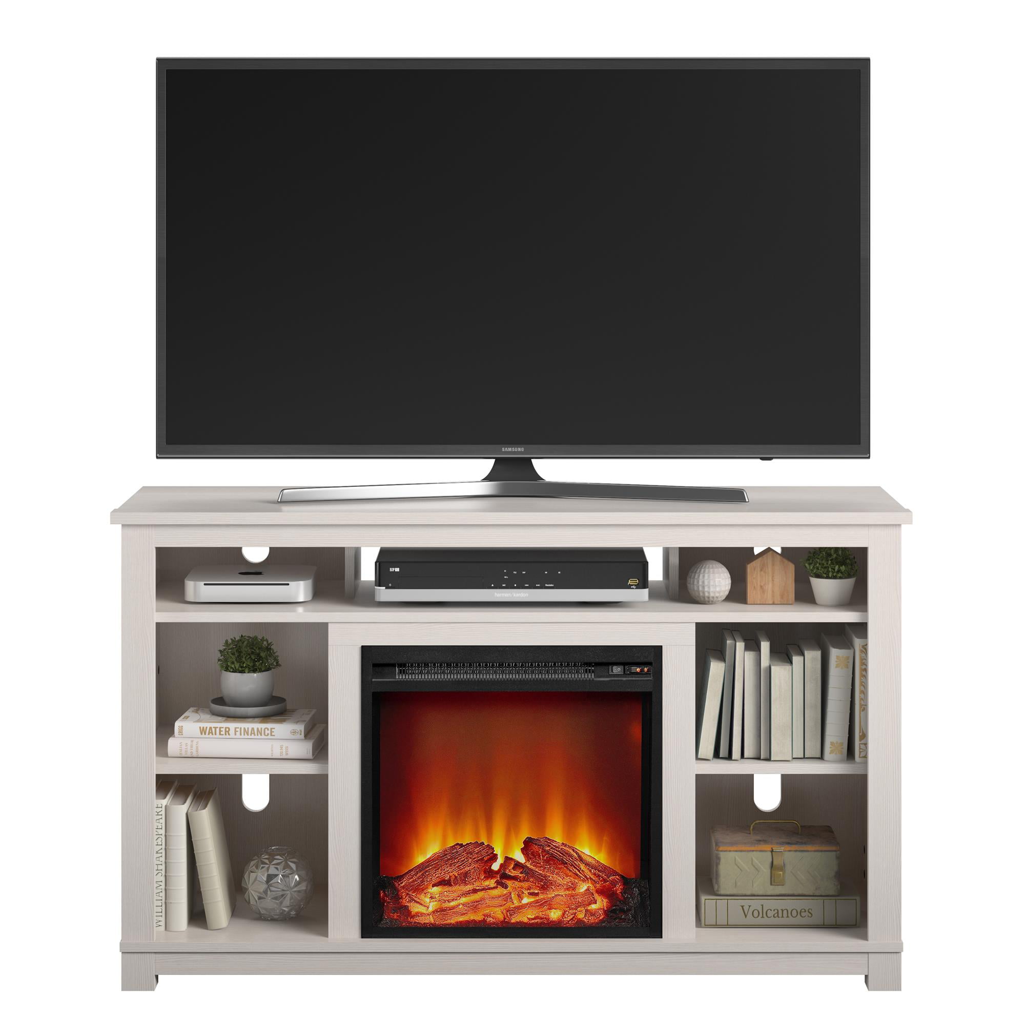 Ameriwood Home Kahle Fireplace TV Stand for TVs up to 55″. Ivory Pine