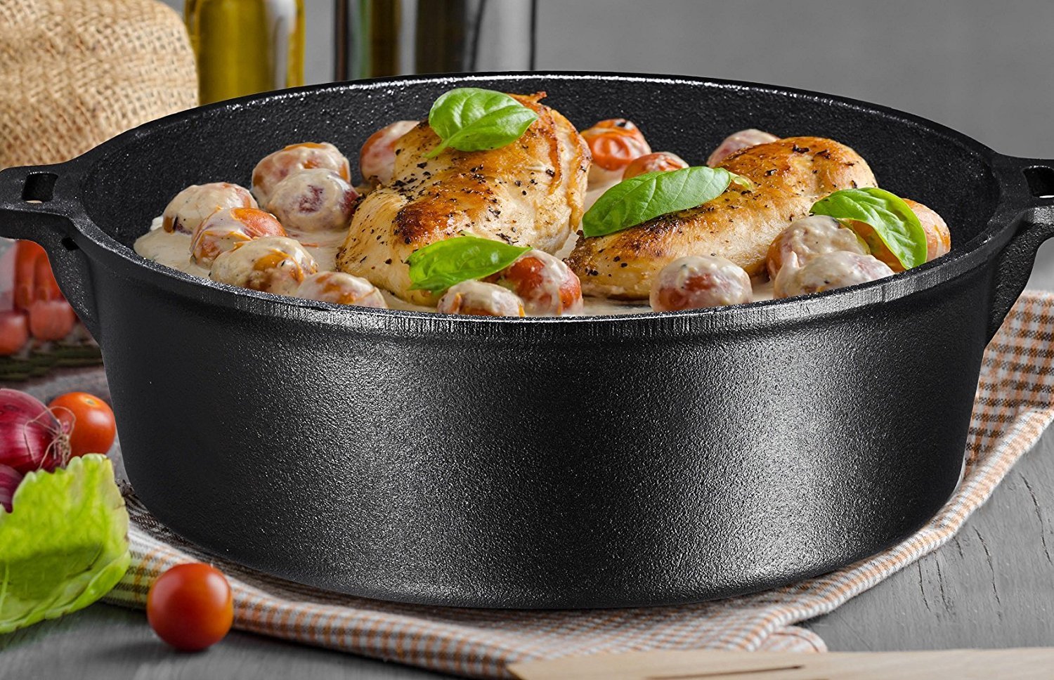 Bruntmor Cast Iron Dutch Oven with Flanged Lid Iron Cover. 6Qtz