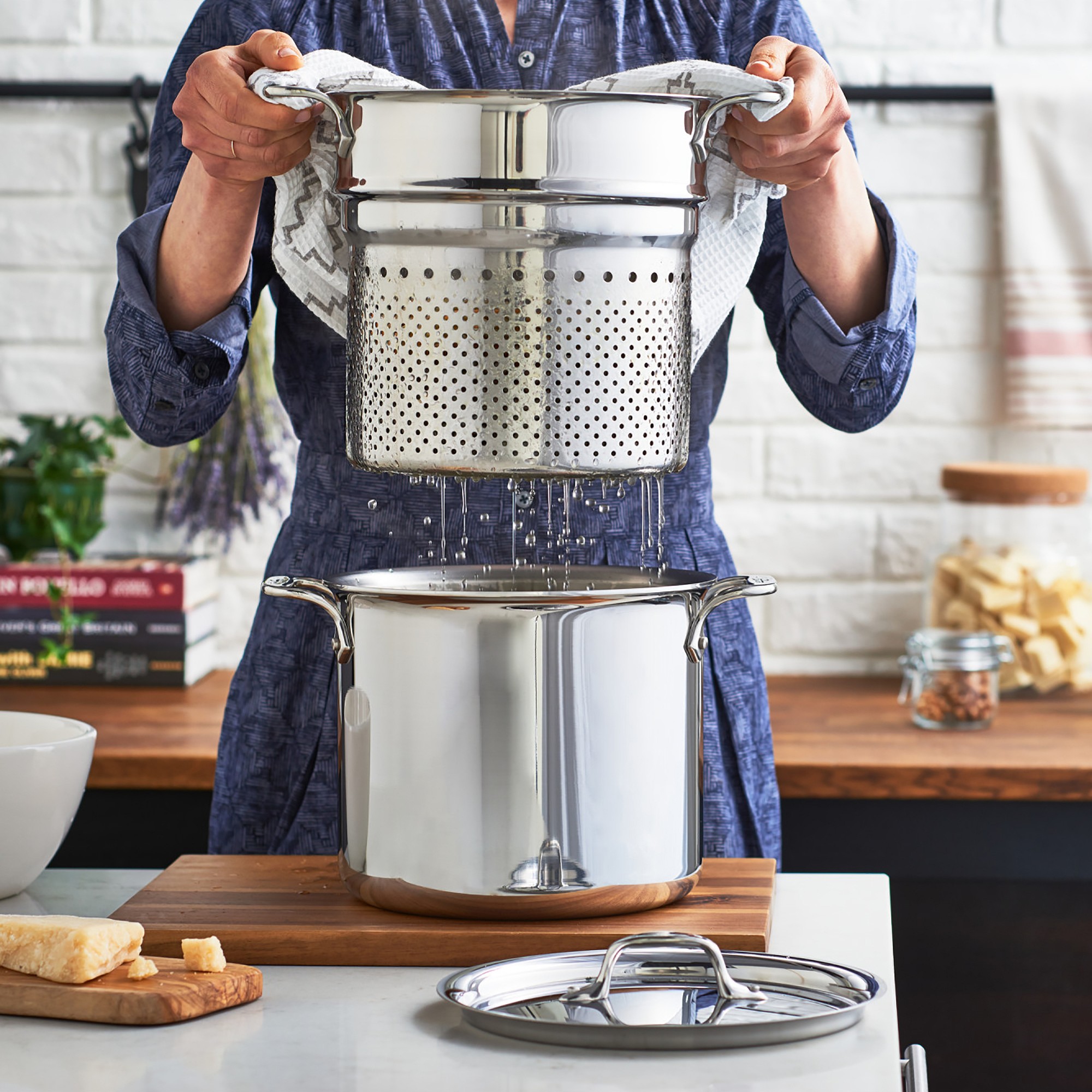 All-Clad D3 Tri-Ply Stainless-Steel Pasta Pentola with Lid and Insert. 7-Qt.