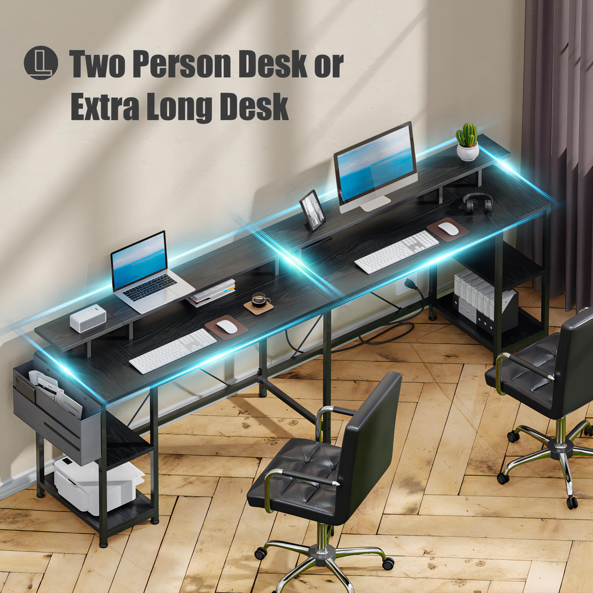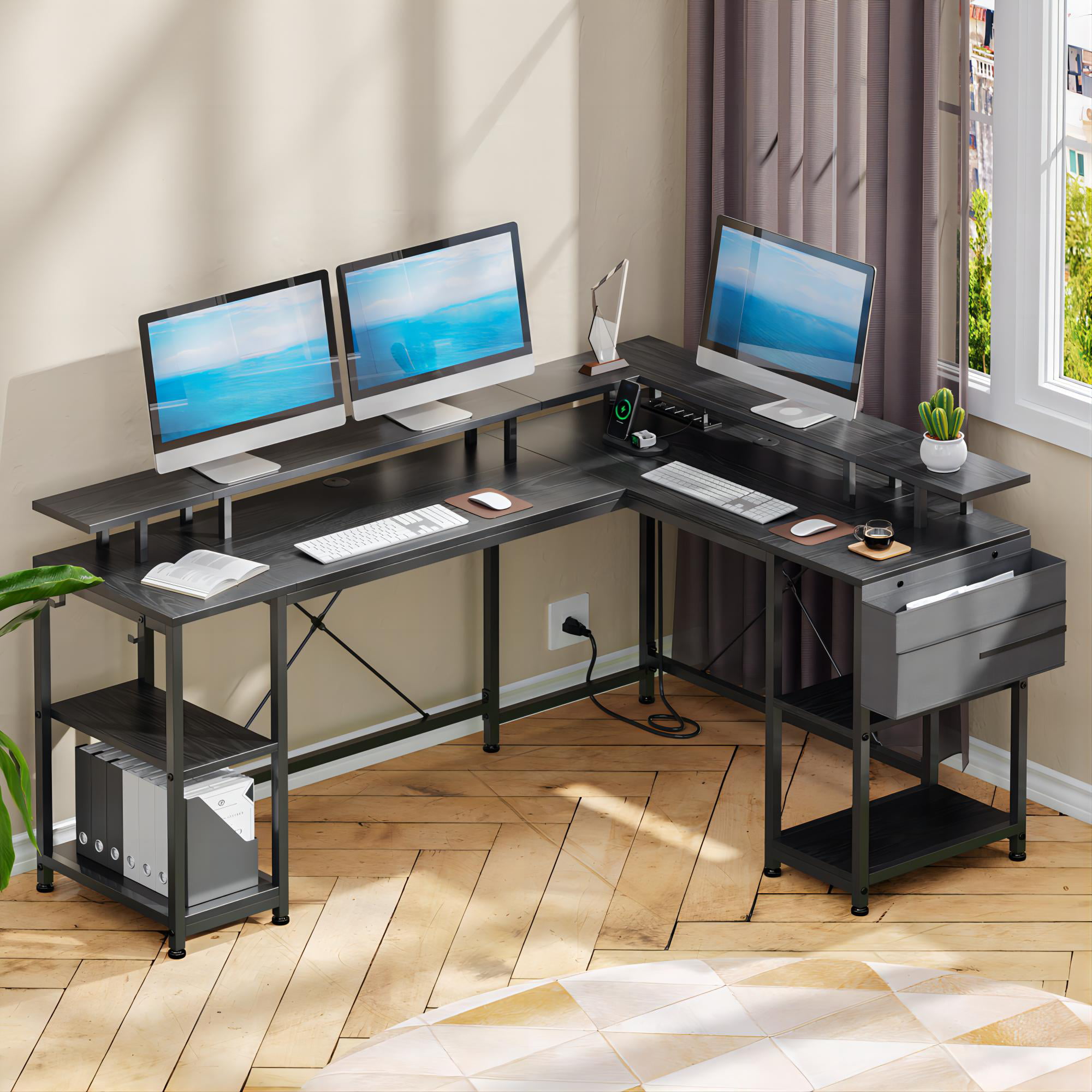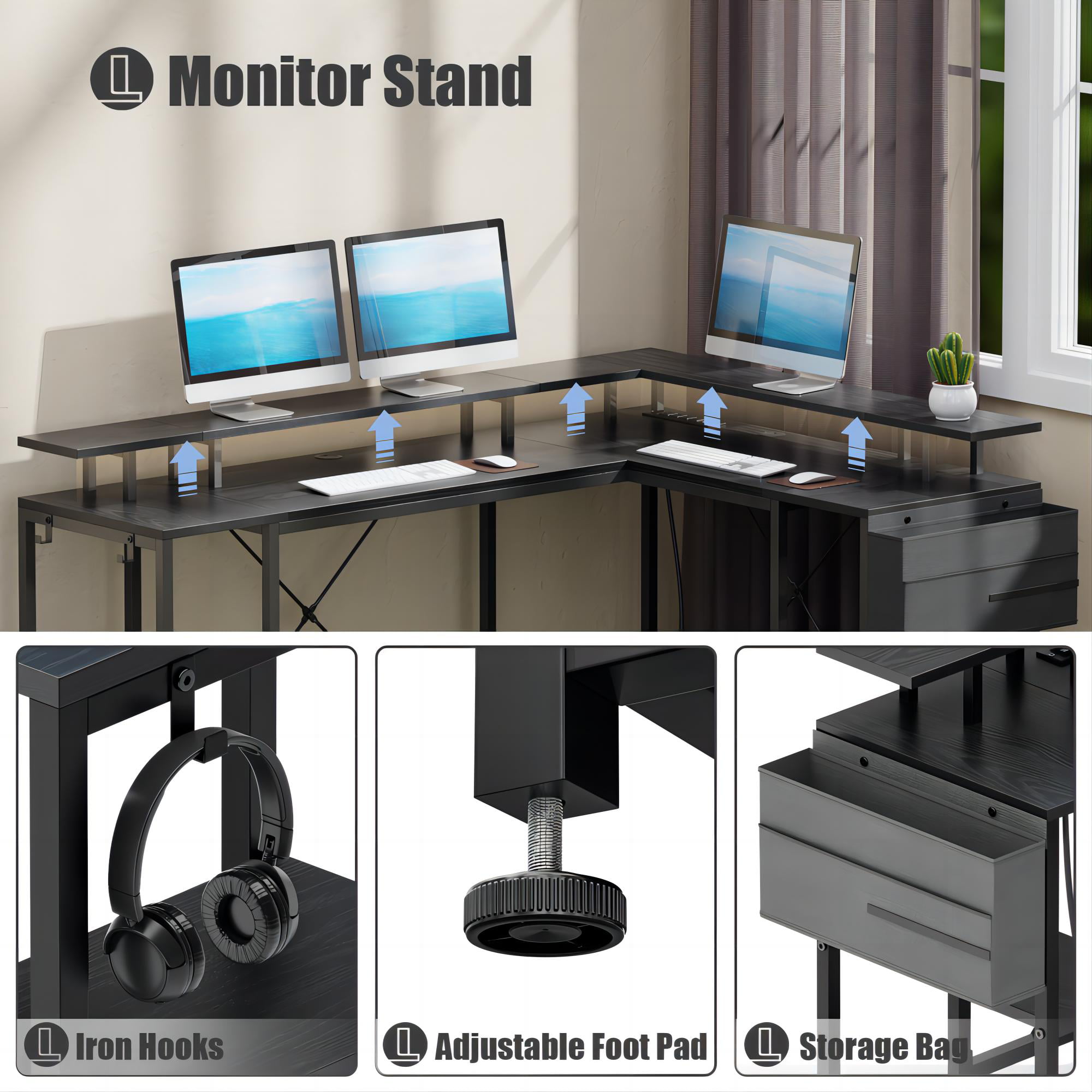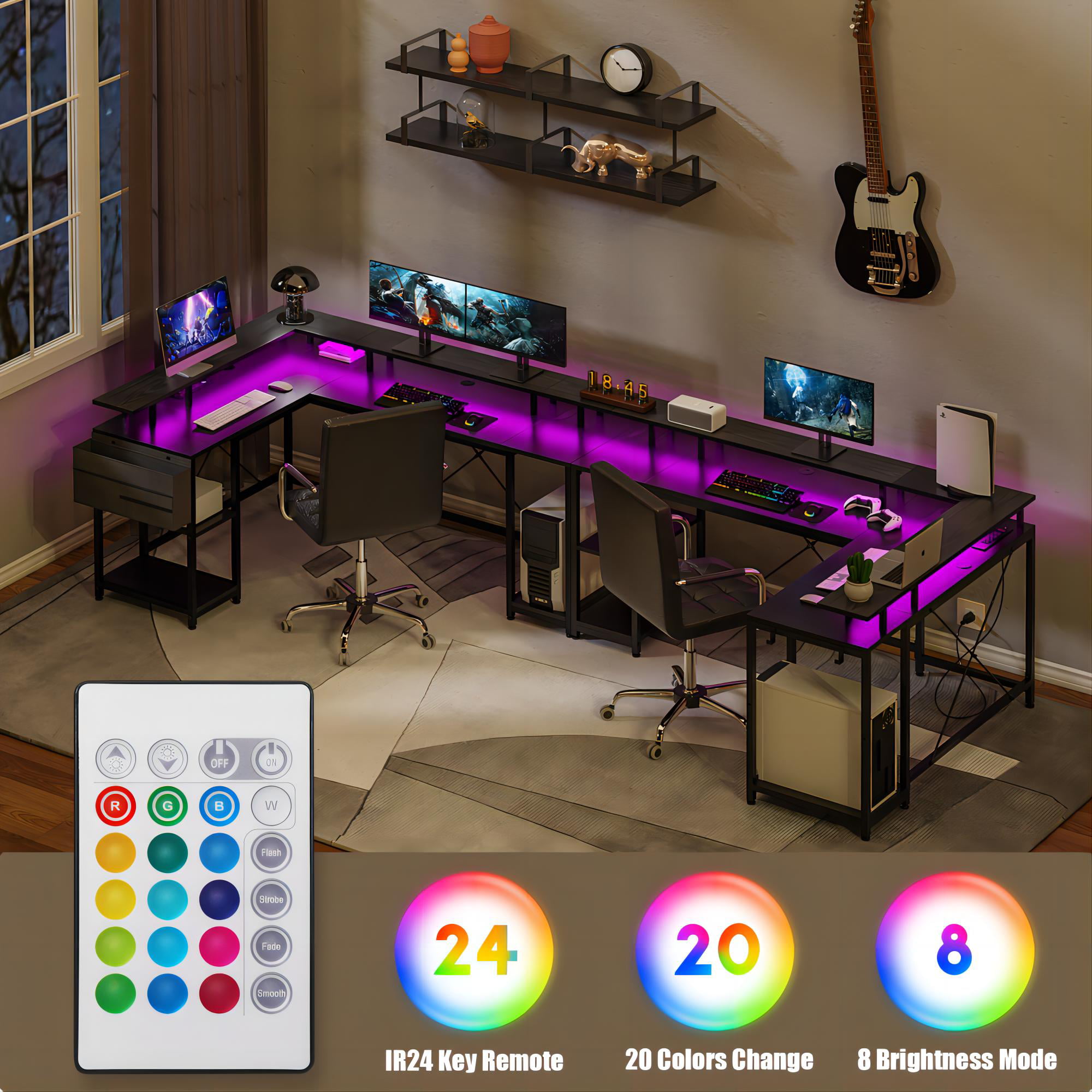 Lulive L Shaped Desk with LED Light and Power Outlet. 95″ Reversible Corner Computer Desk with Monitor Stand and Storage Shelf. Modern L- Shaped Gaming Desk. Black
