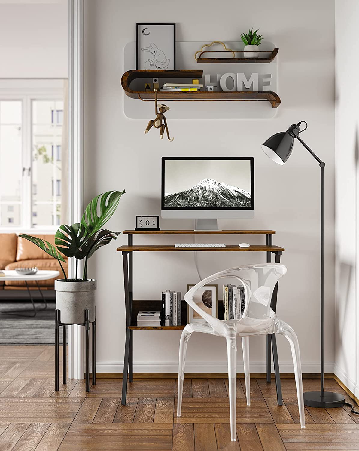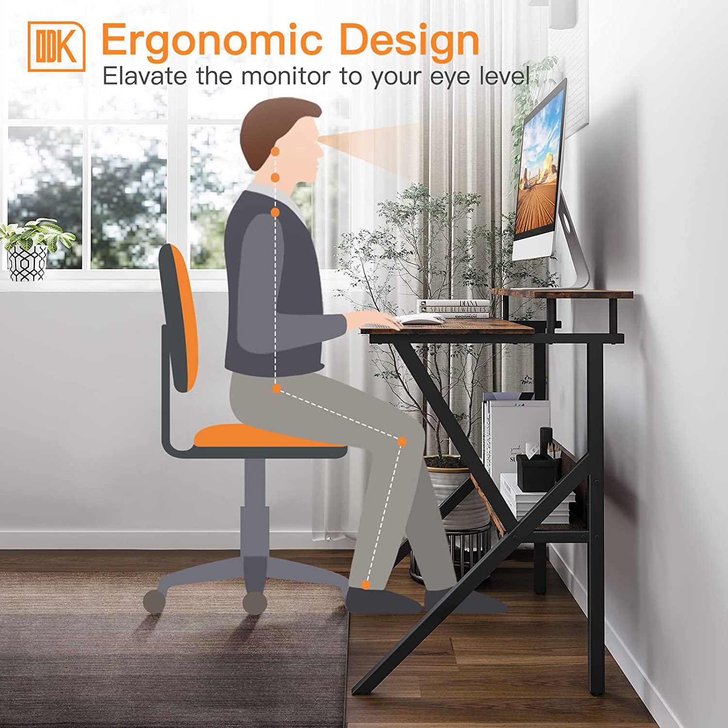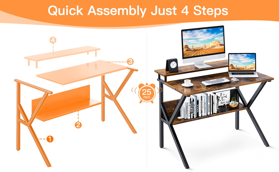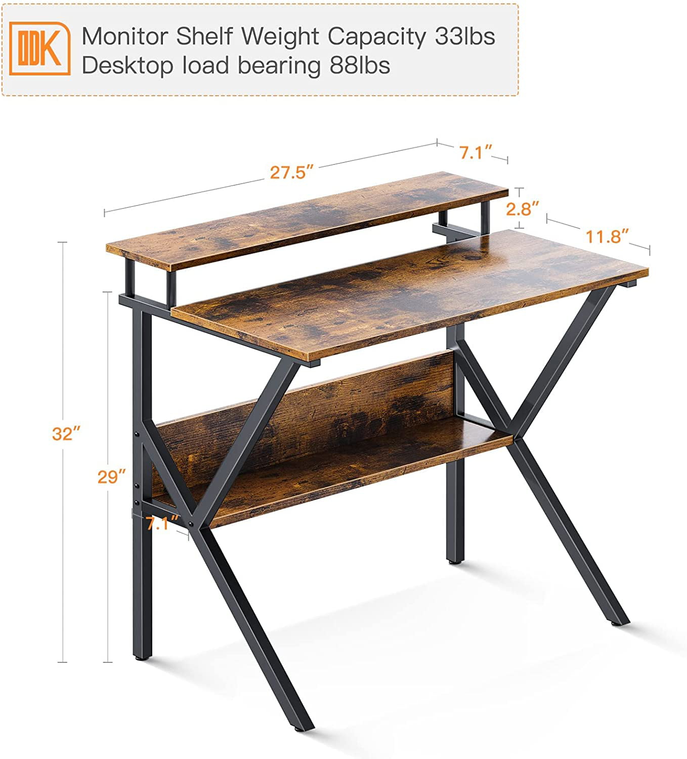 ODK Home Small Computer Desk. 27.5″ Desk for Small Spaces with Storage. Compact Table with Monitor & Storage Shelves for Home Office. Modern Style Laptop Desk. Vintage