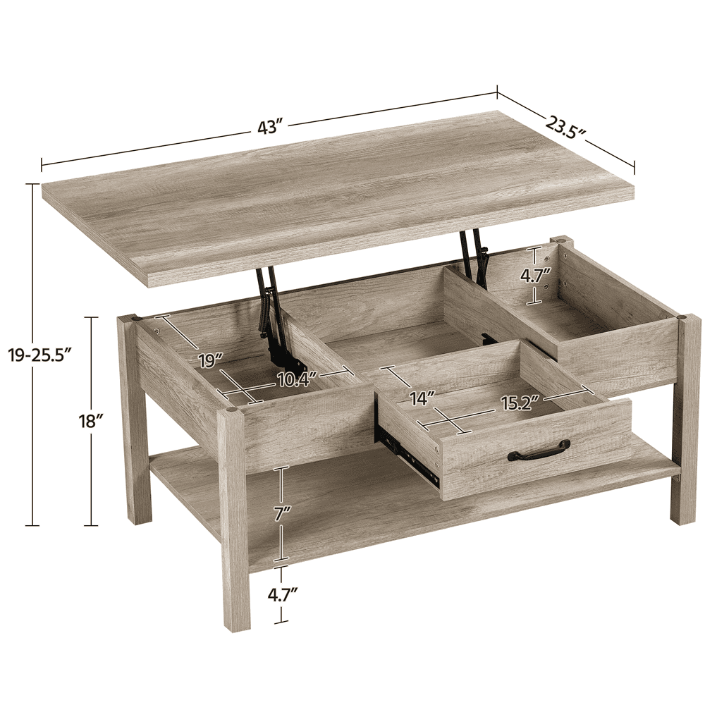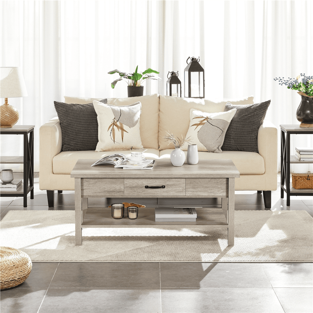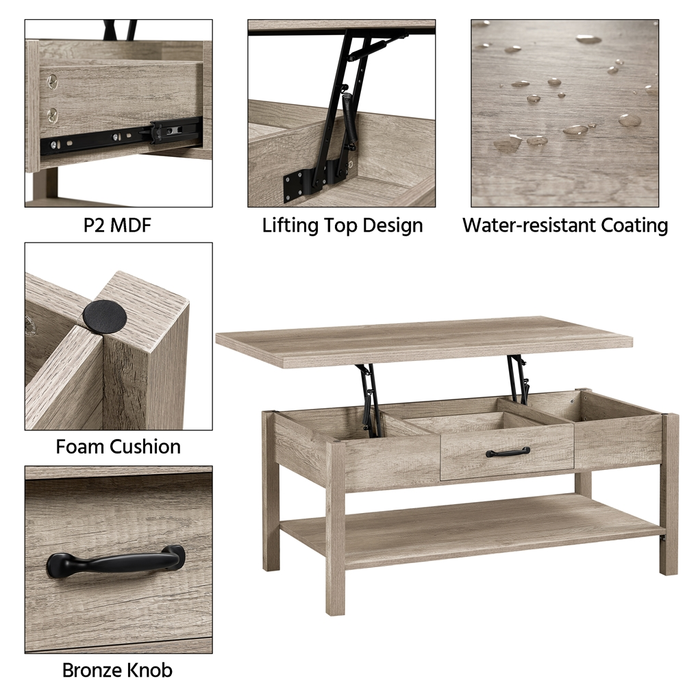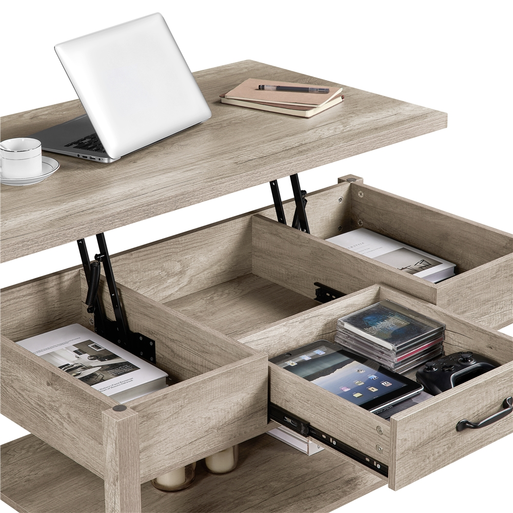 SMILE MART Lift Top Coffee Table with Hidden Compartments & Drawer for Living Room. Gray
