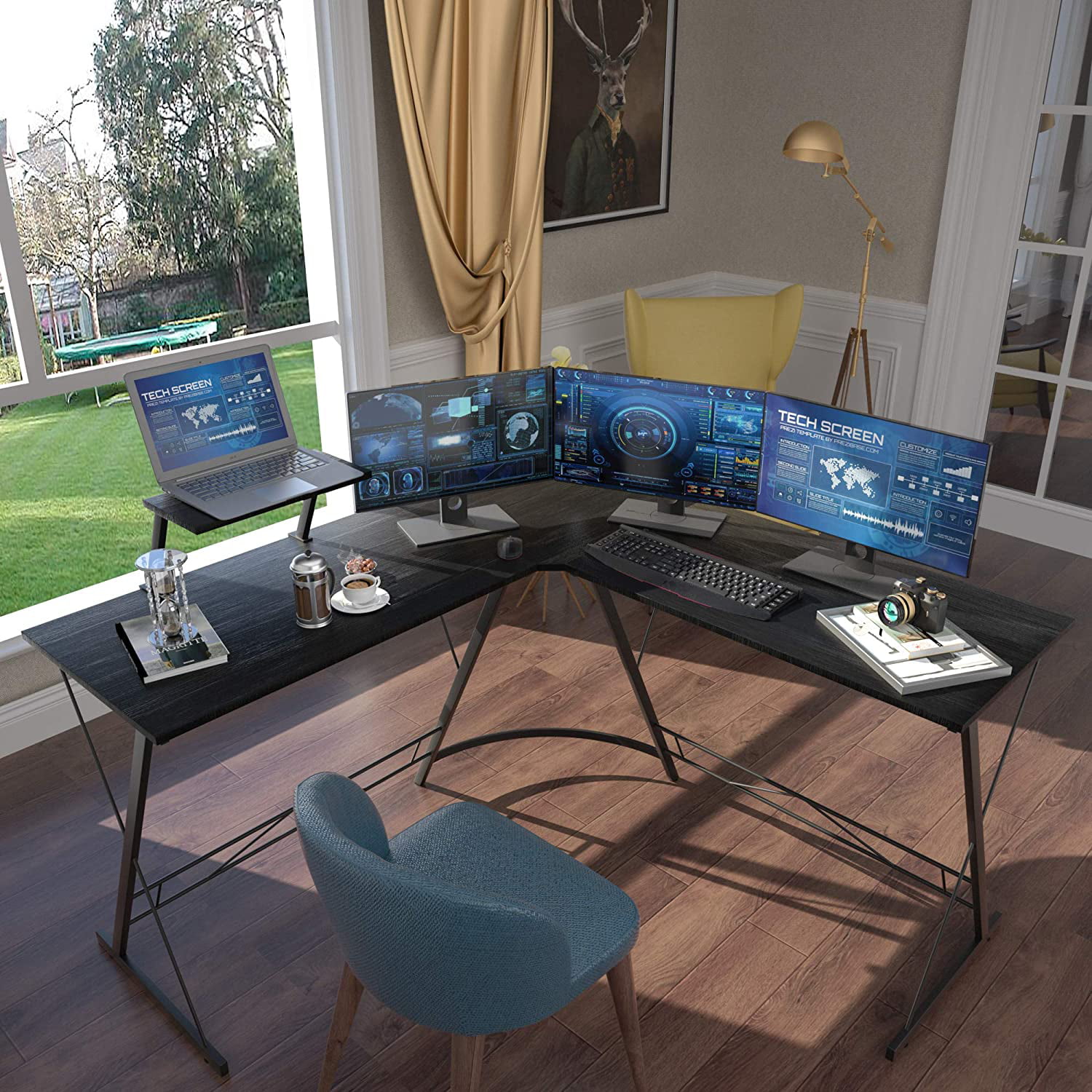 Casaottima 51″ L Shaped Gaming Desk. Computer Desk with Monitor Stand Desk Workstation. Natural Black
