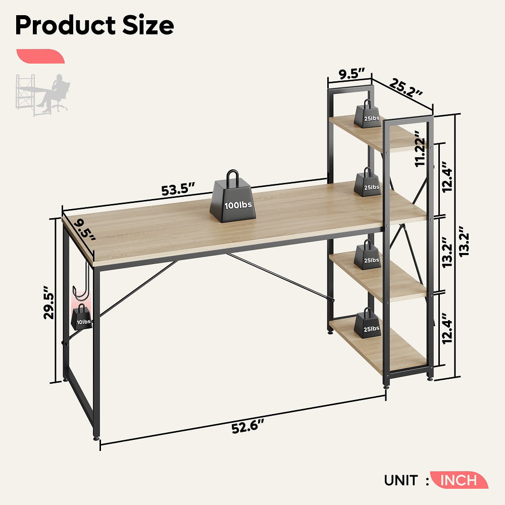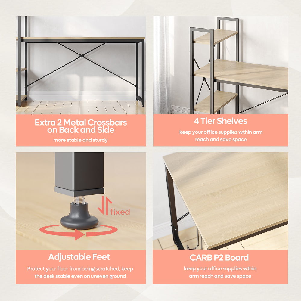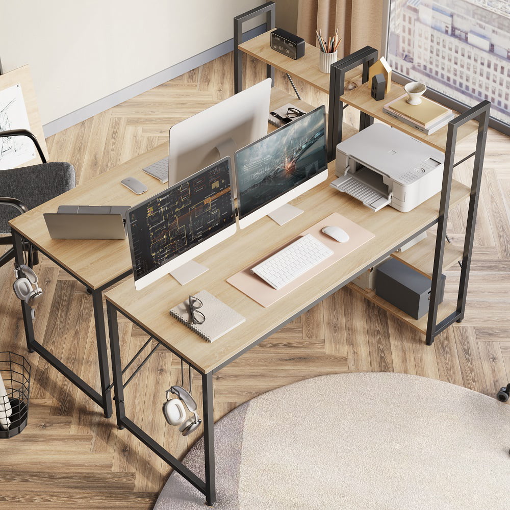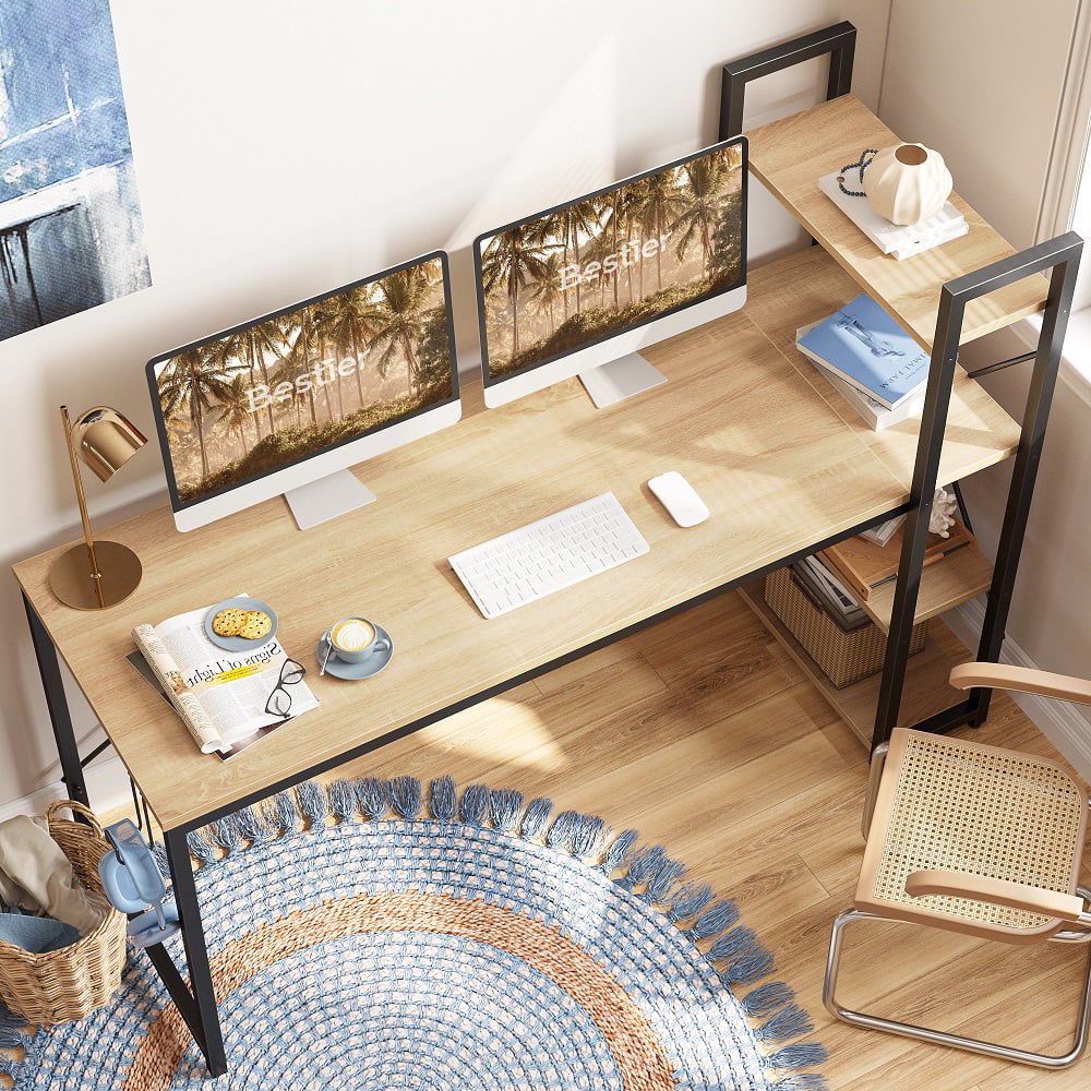 Bestier 63 inch Computer Desk with Storage Shelves&Headphone Hook Oak