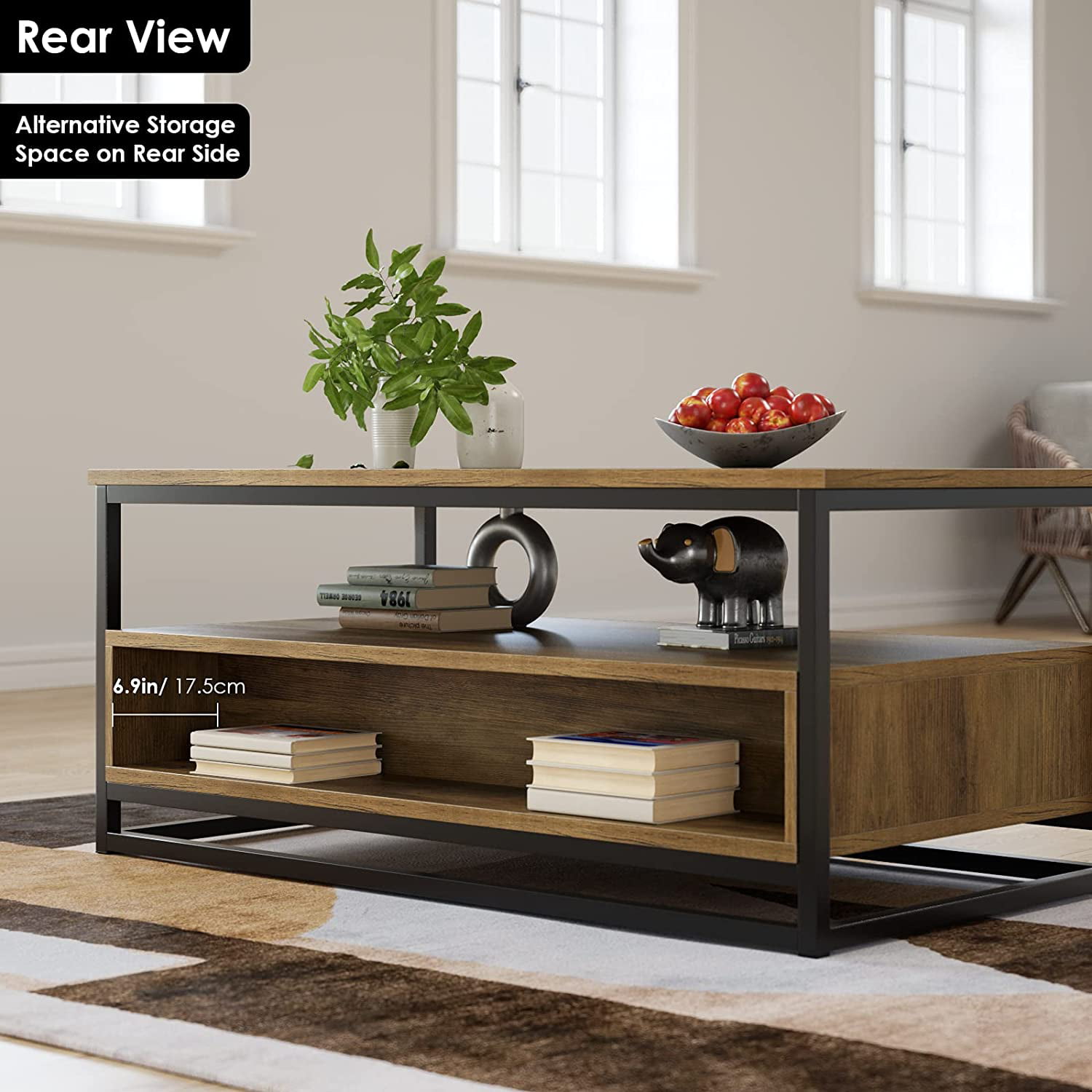 Homfa Coffee Table with Storage for Living Room. 43″ Wooden Center Table with Drawers. Low Frame Cocktail Table with 1 Shelf and 2 Drawers. Rustic Brown