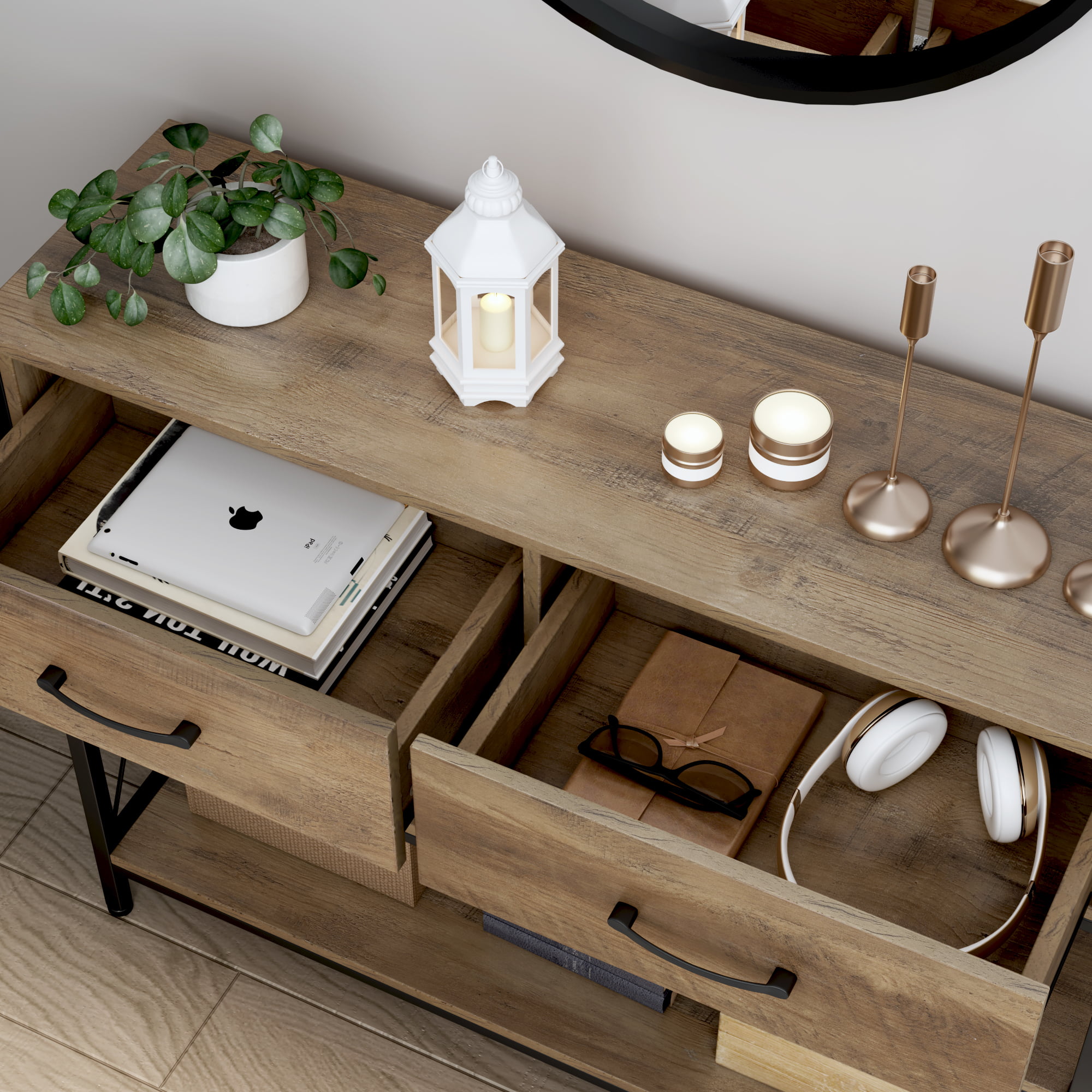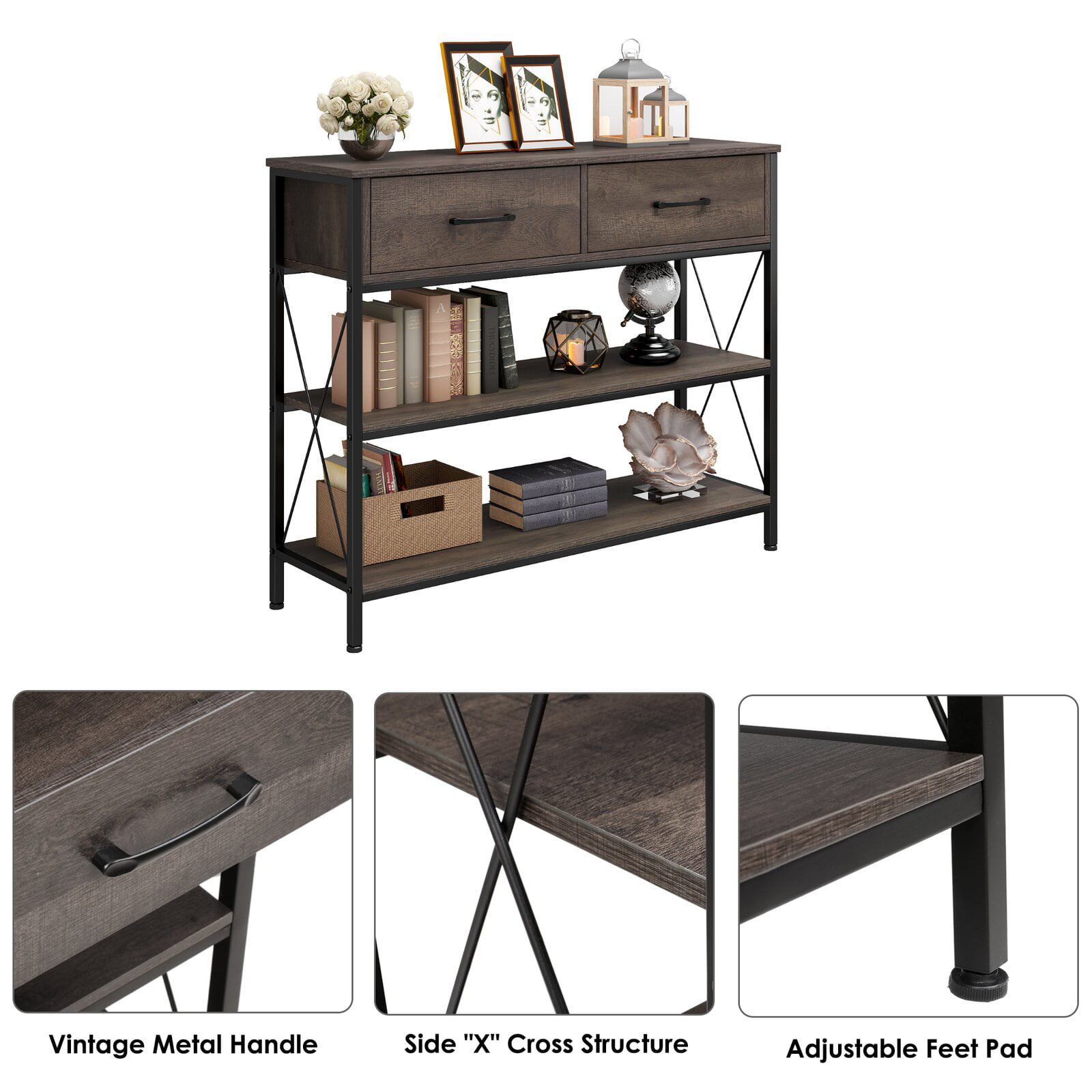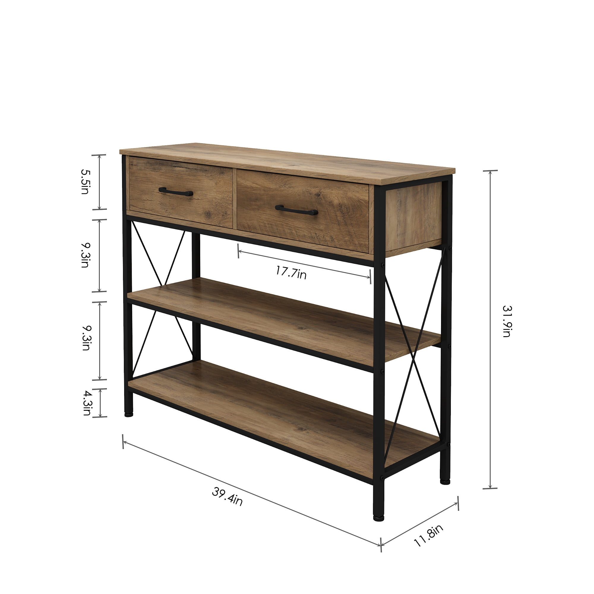 Homfa Console Table with Drawers. Rustic Hallway Table with Storage Shelves. Narrow Sofa Entryway Table for Living Room. Rustic Brown